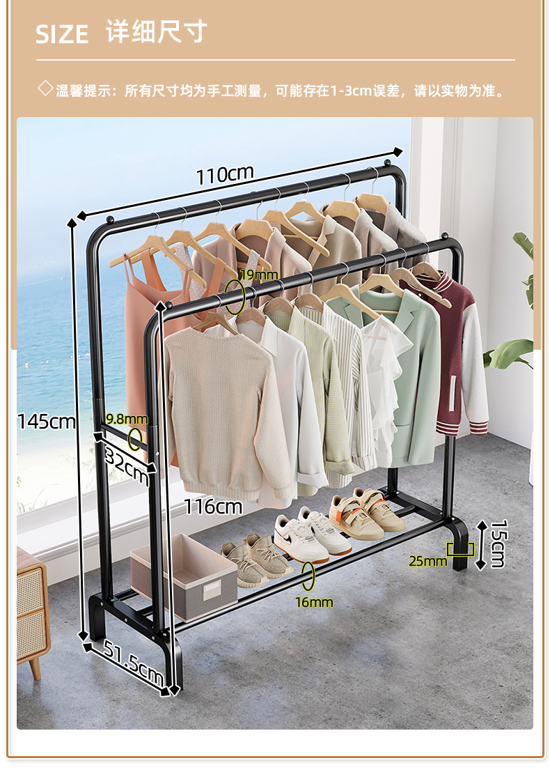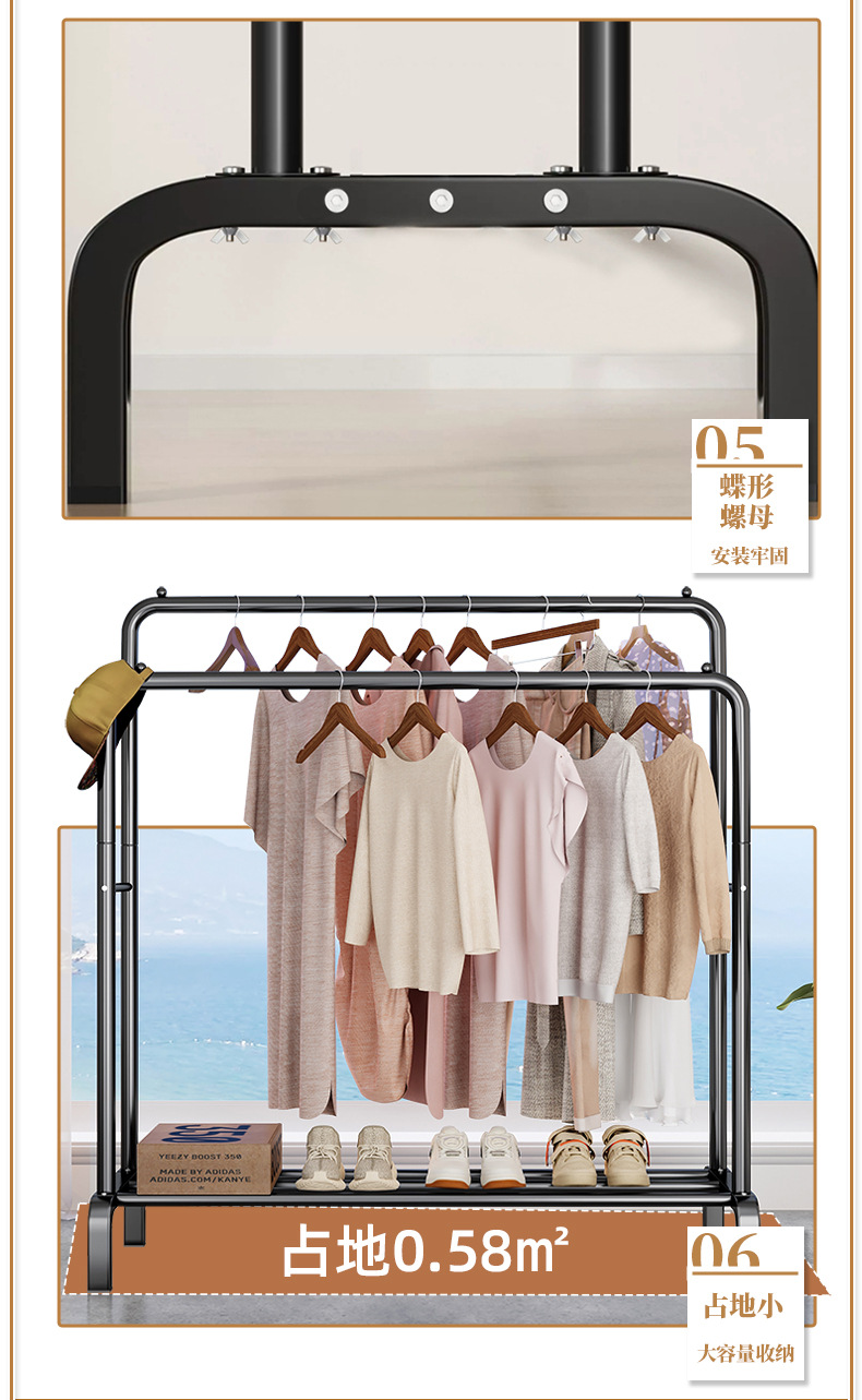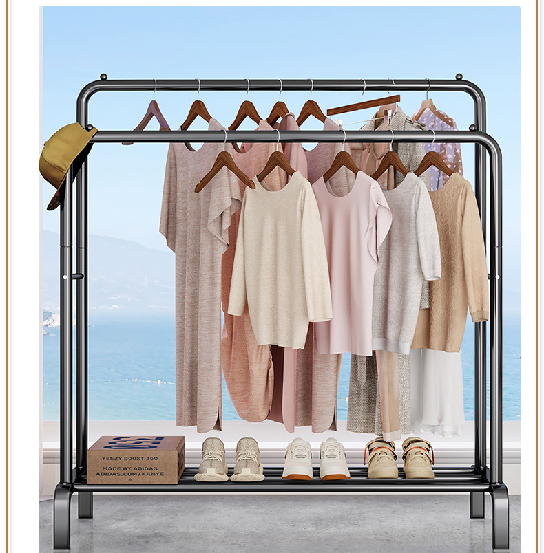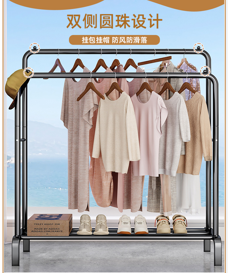 Colgante de suelo de tendedero estante de ropa balcón del dormitorio doméstico estante de ropa multifuncional estante de ropa del dormitorio tendedero