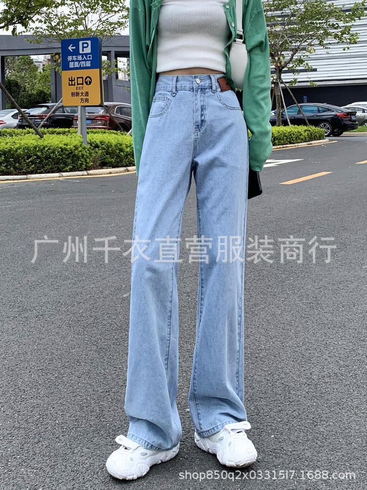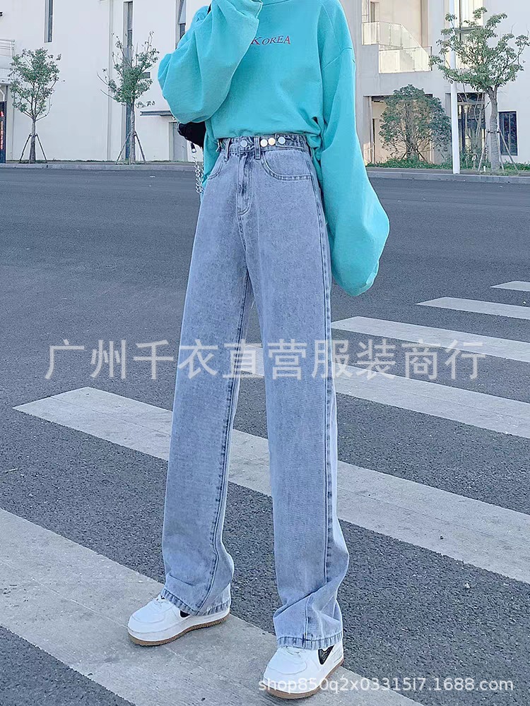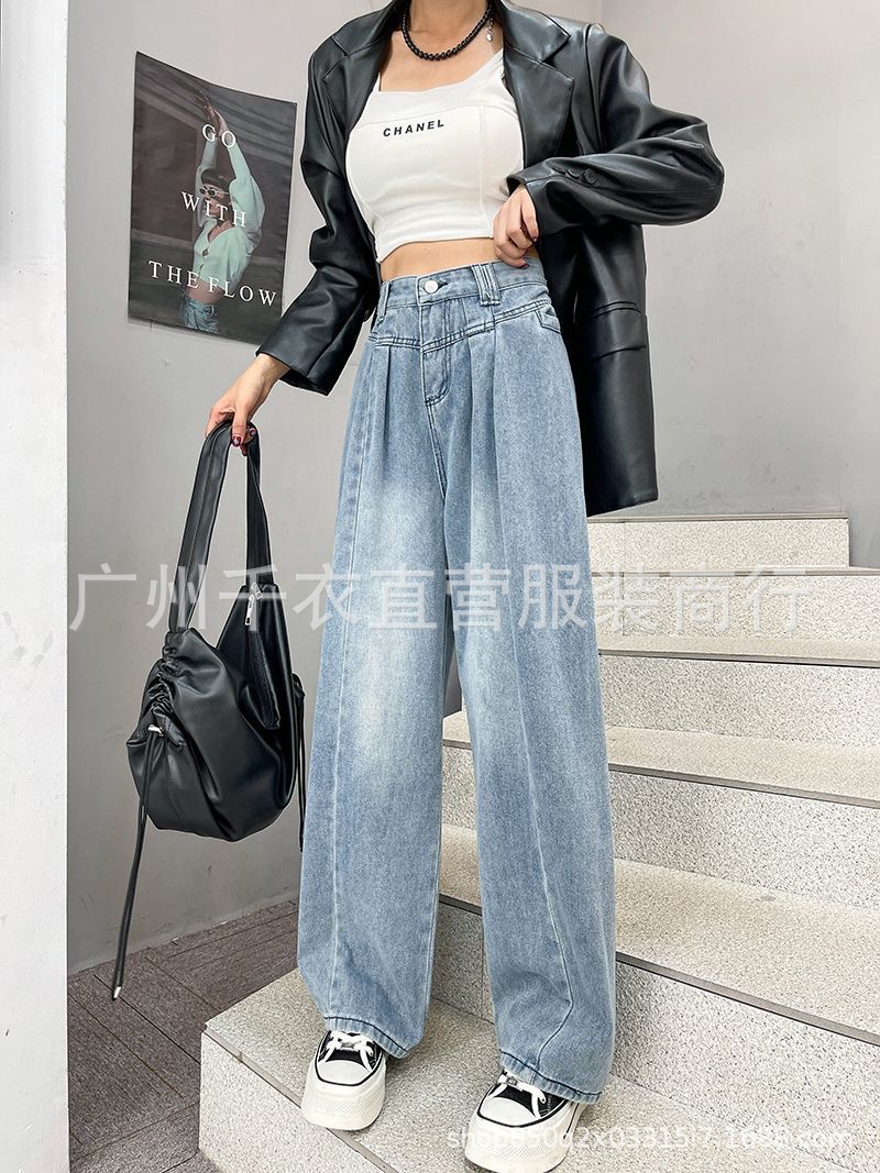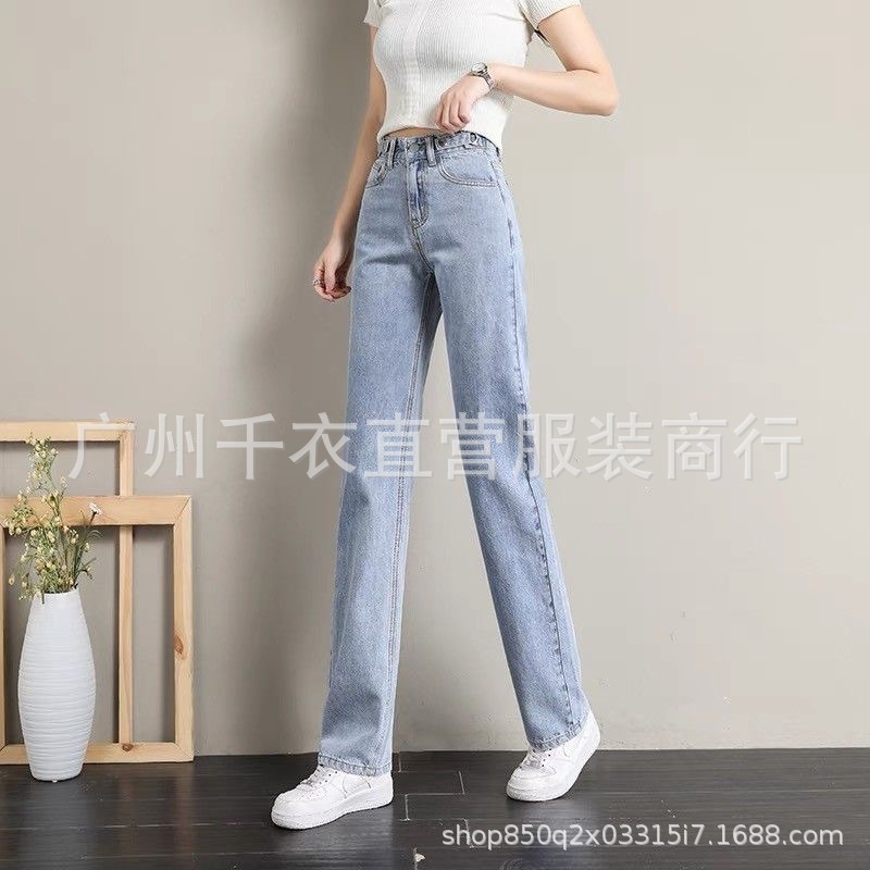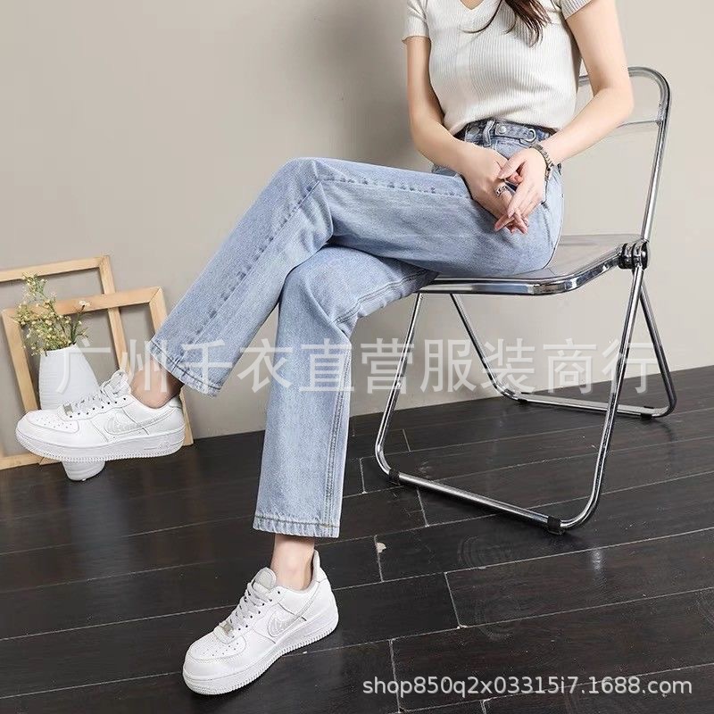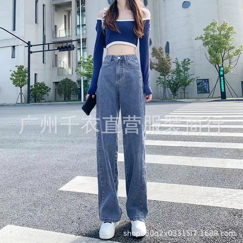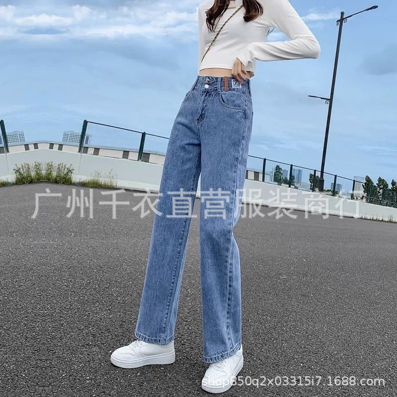 Fábrica Al por mayor de ropa de mujer, jeans, comercio exterior, versión coreana de ocio, tubo recto, piernas anchas, pantalones vaqueros, puestos de transmisión en vivo para mujeres