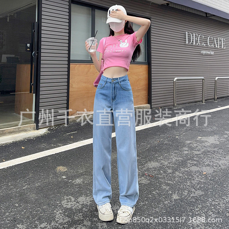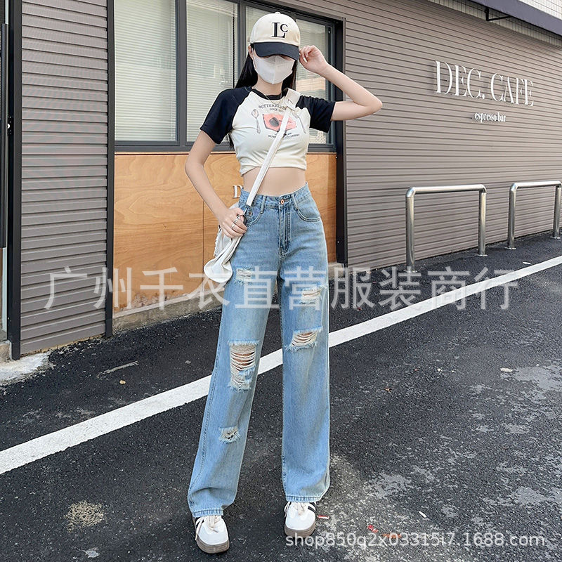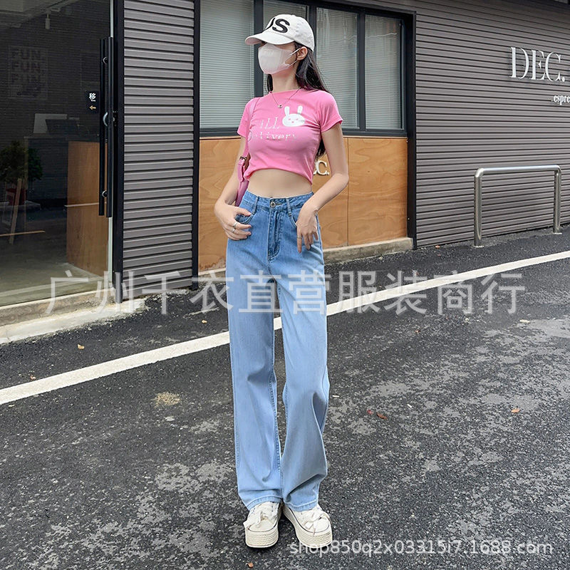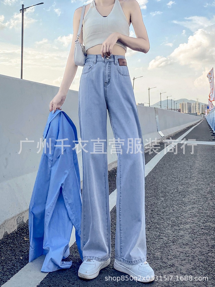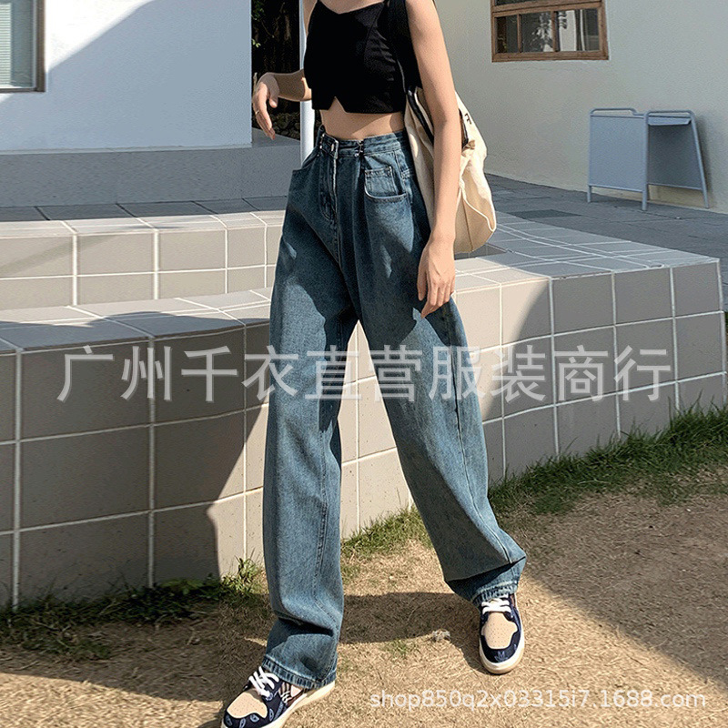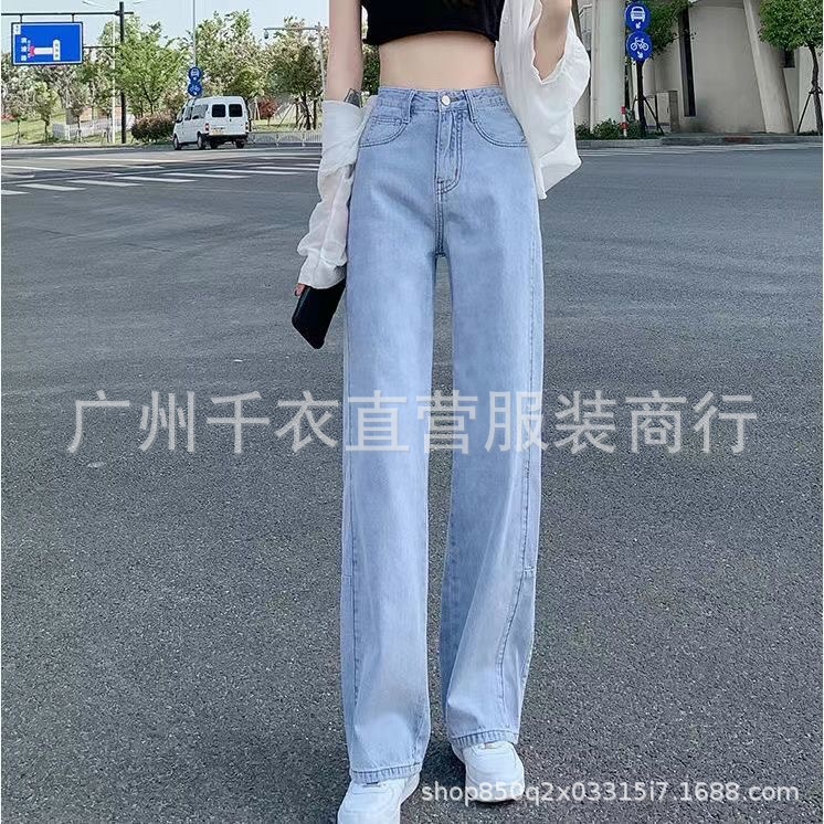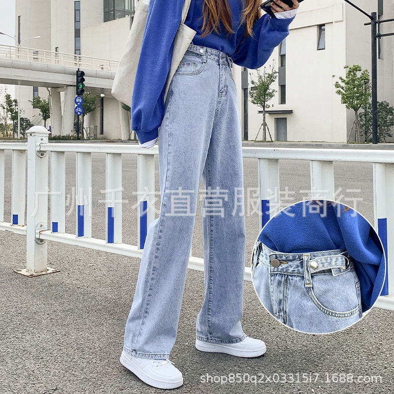 Fábrica Al por mayor de ropa de mujer, jeans, comercio exterior, versión coreana de ocio, tubo recto, piernas anchas, pantalones vaqueros, puestos de transmisión en vivo para mujeres