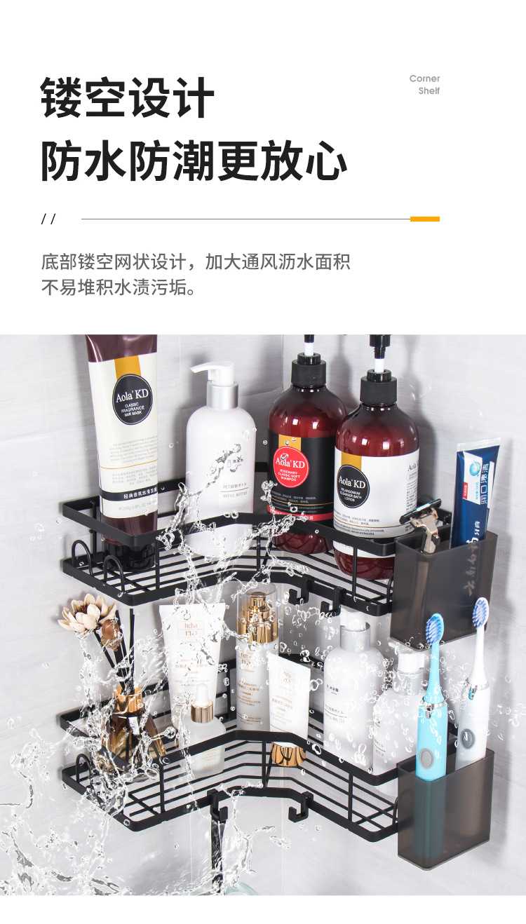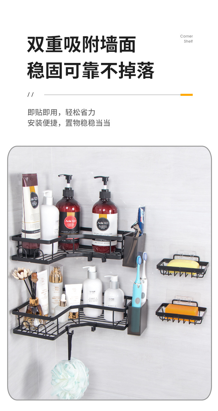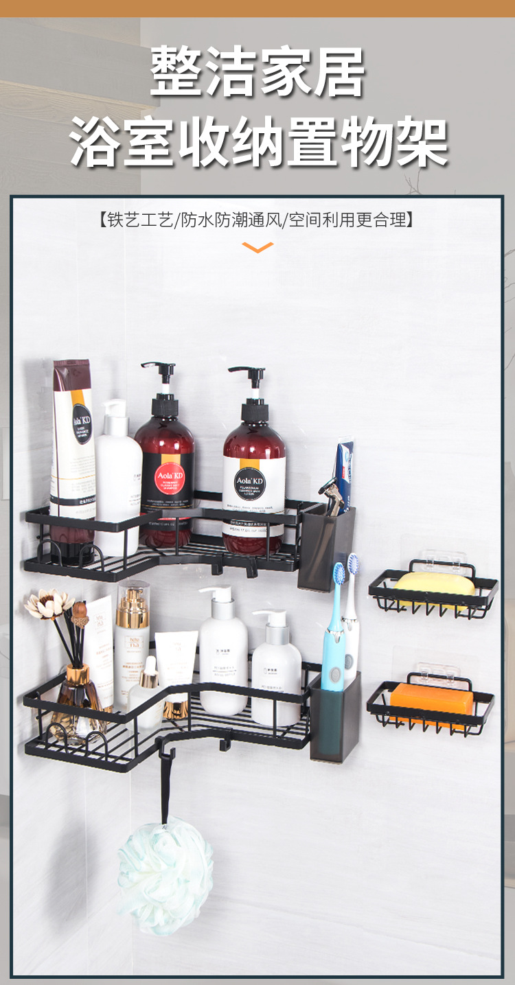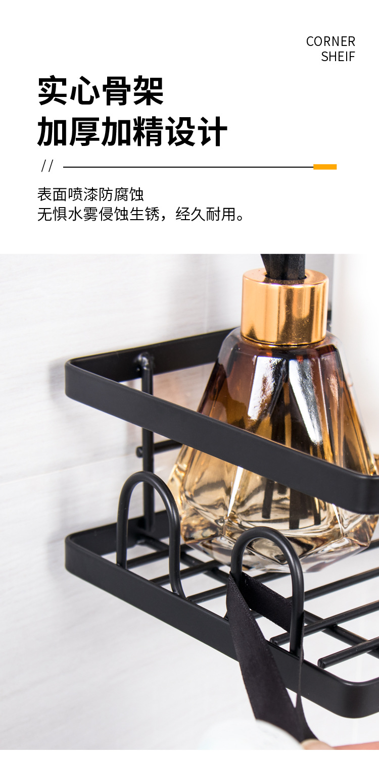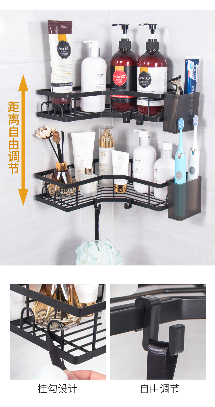 Triángulo de hierro estante de almacenamiento sin perforación en el baño estante de almacenamiento colgante en la esquina del baño estante de acabado de artículos de aseo