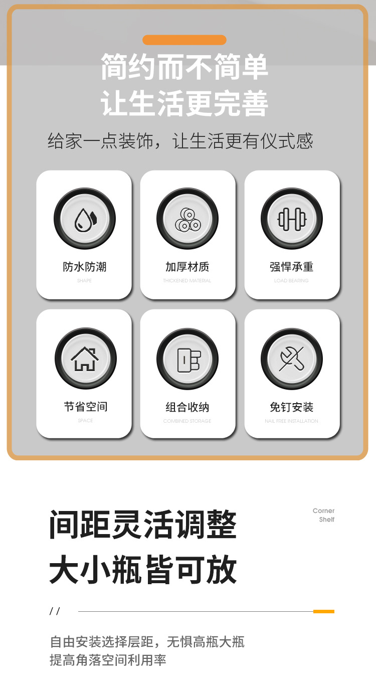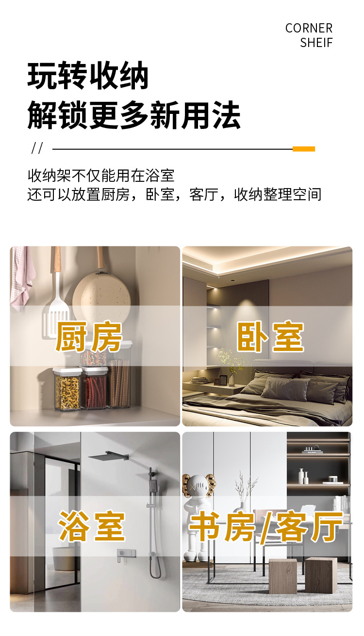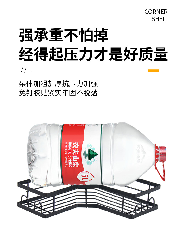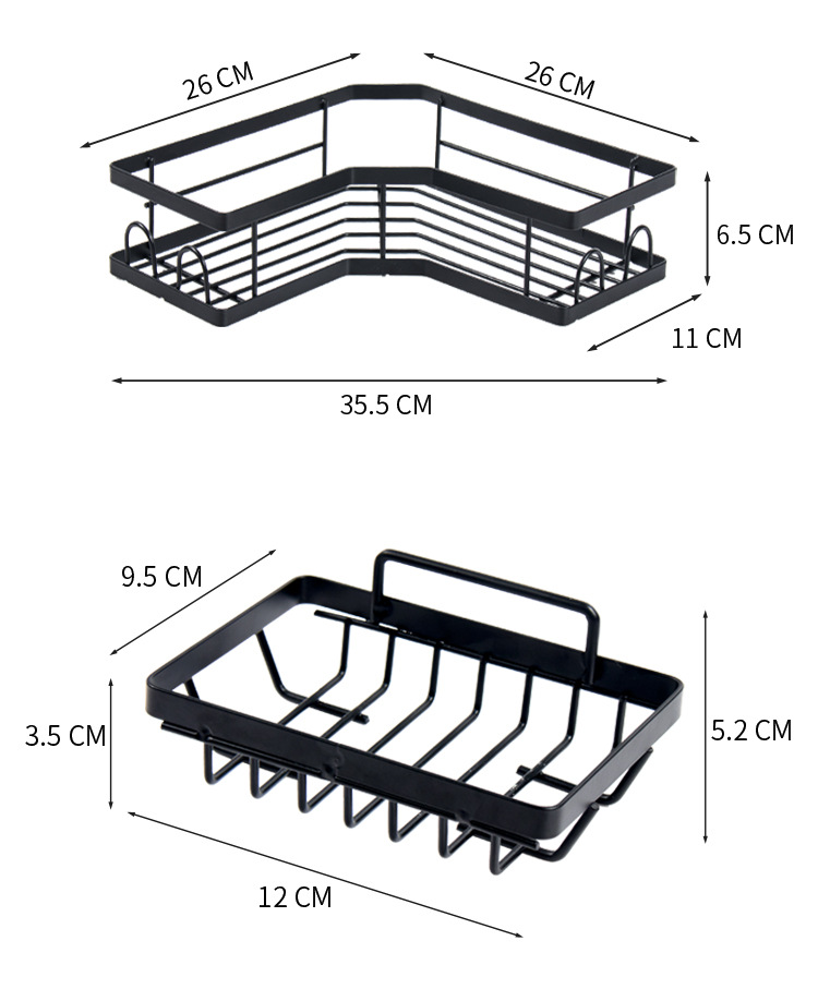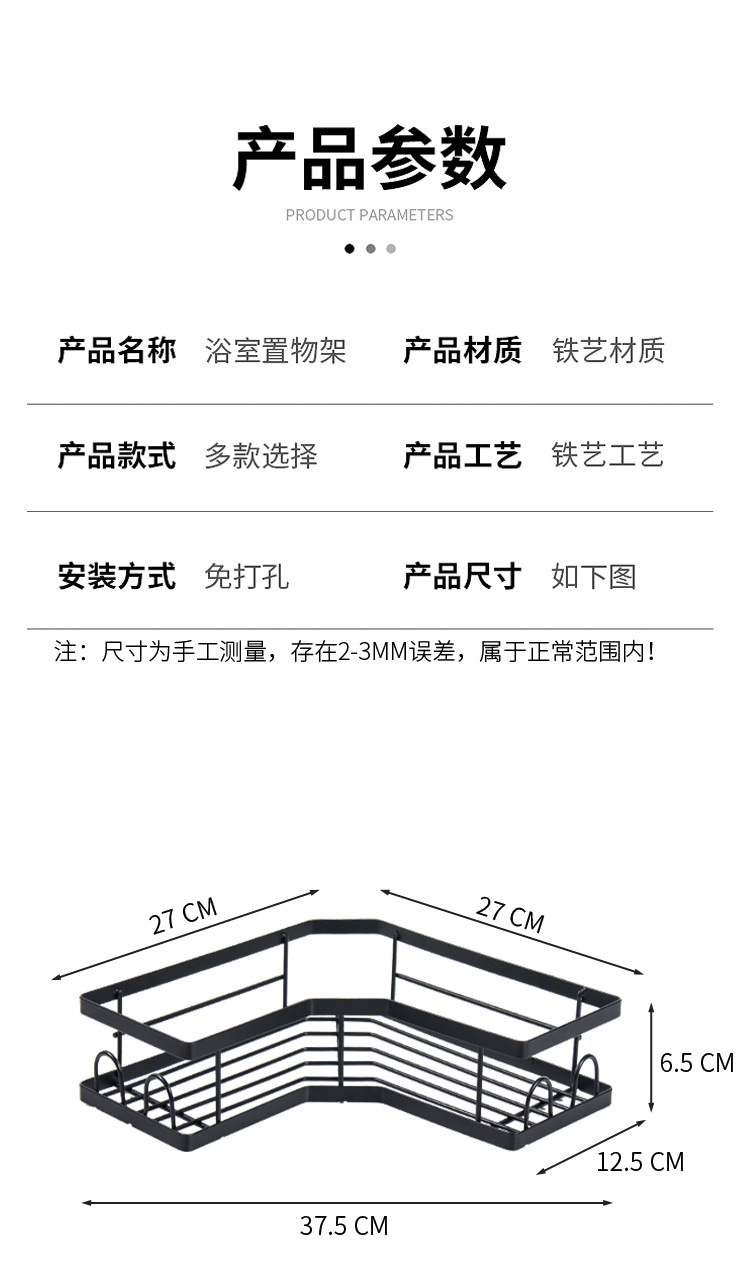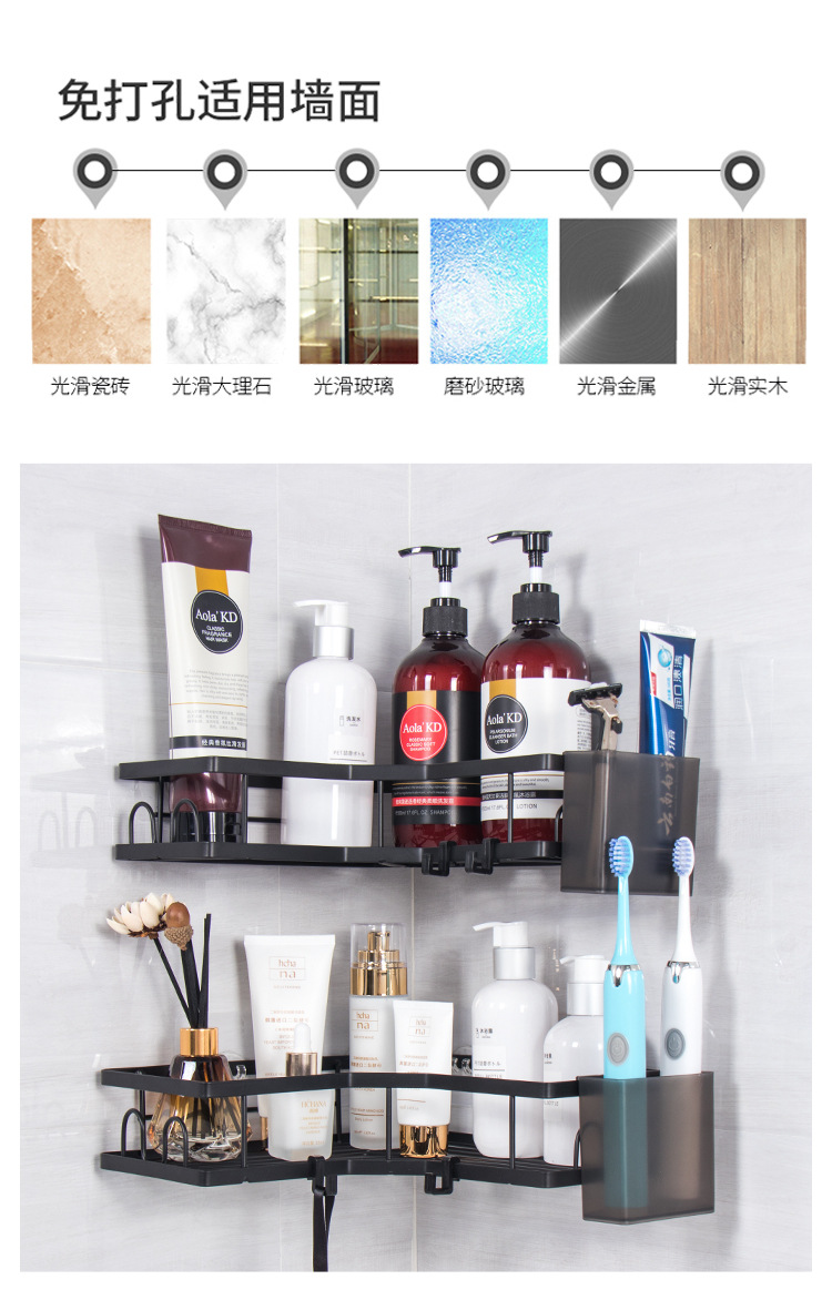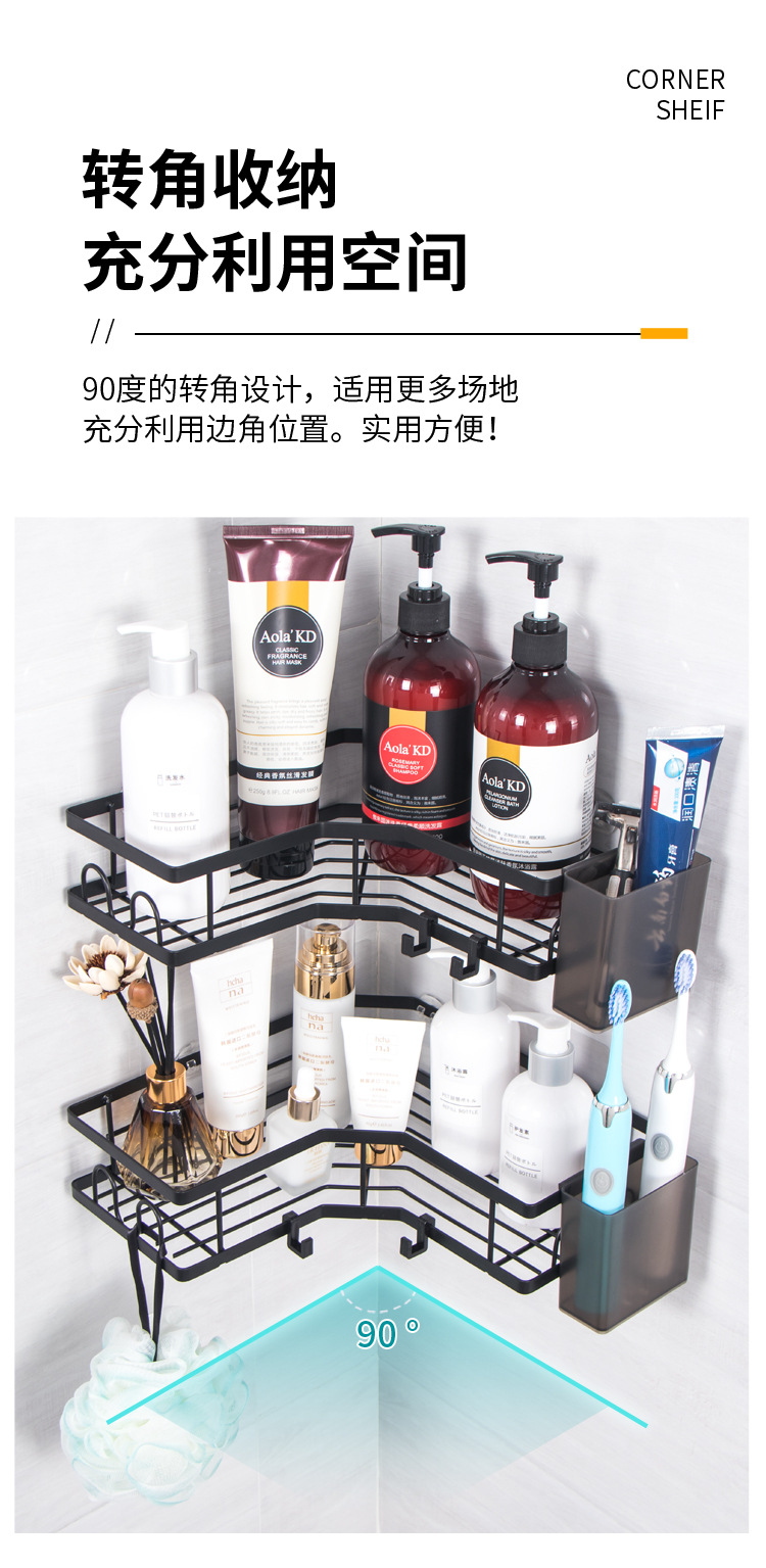 Triángulo de hierro estante de almacenamiento sin perforación en el baño estante de almacenamiento colgante en la esquina del baño estante de acabado de artículos de aseo