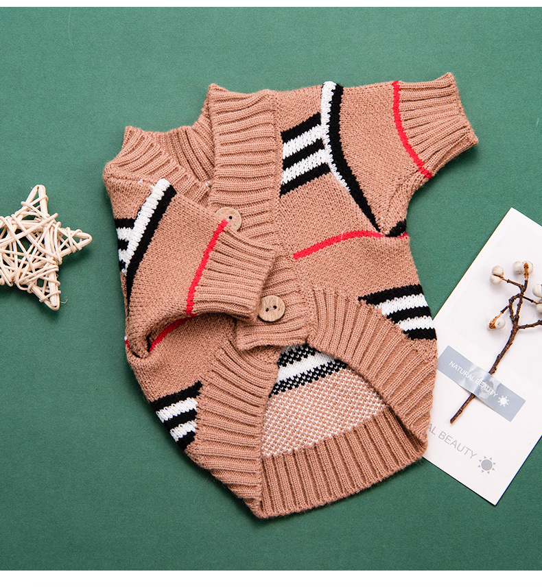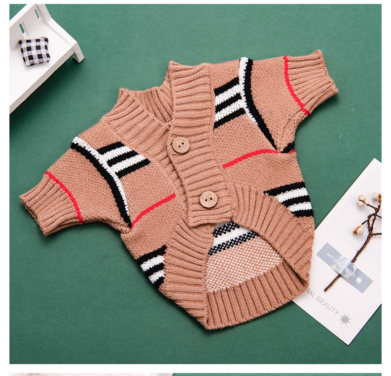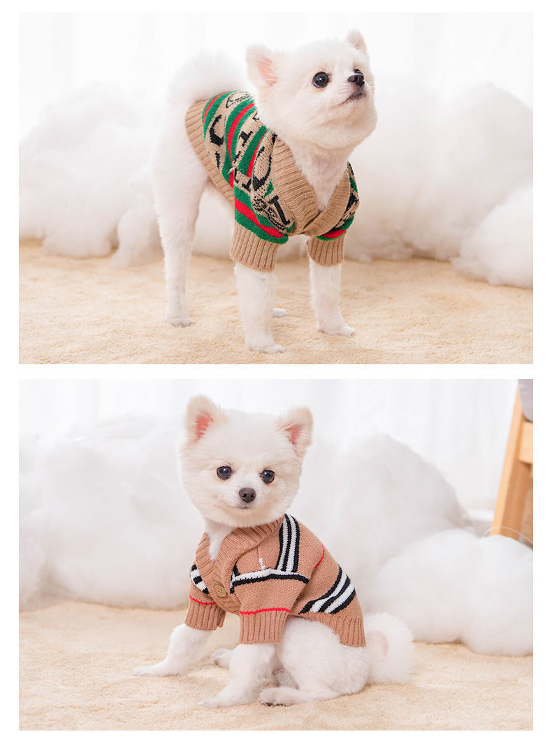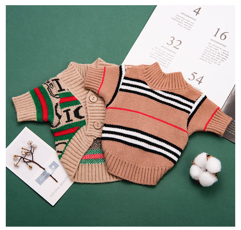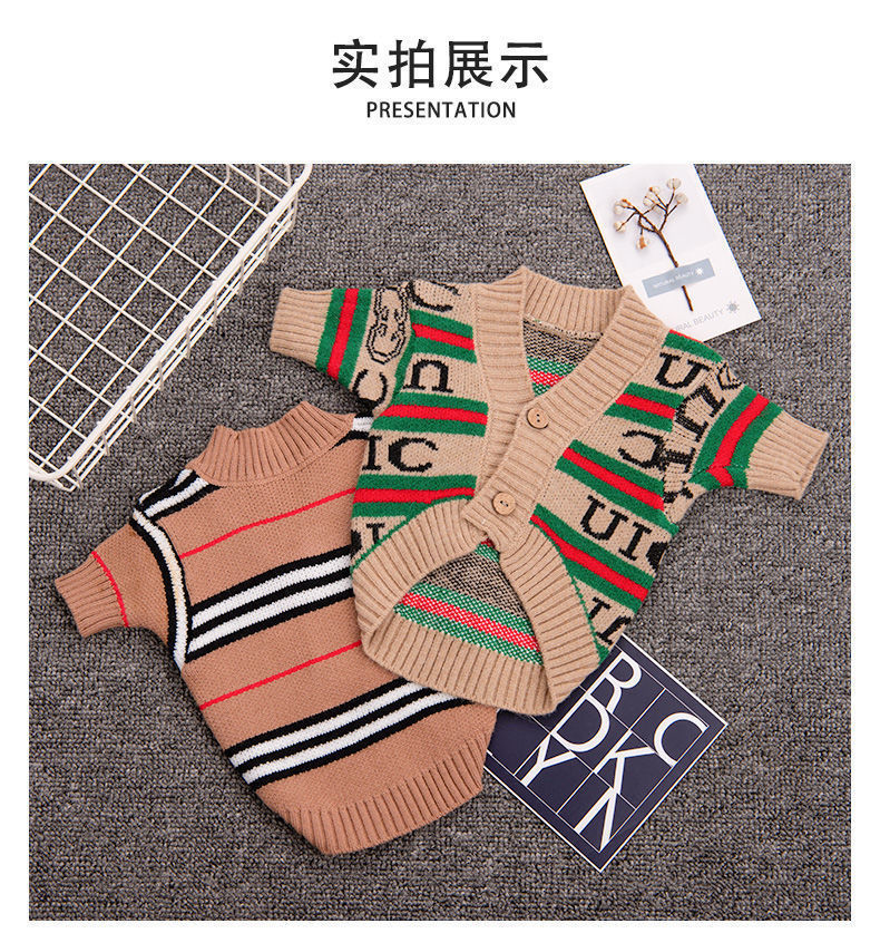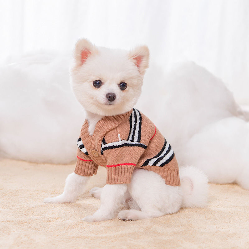 Ropa para perros cardigan estampado a rayas con letras de invierno Teddy Beat Bear Small Dog CAT PET Clothing Wholesale