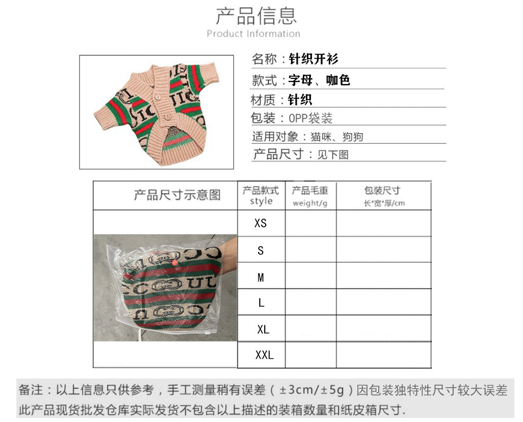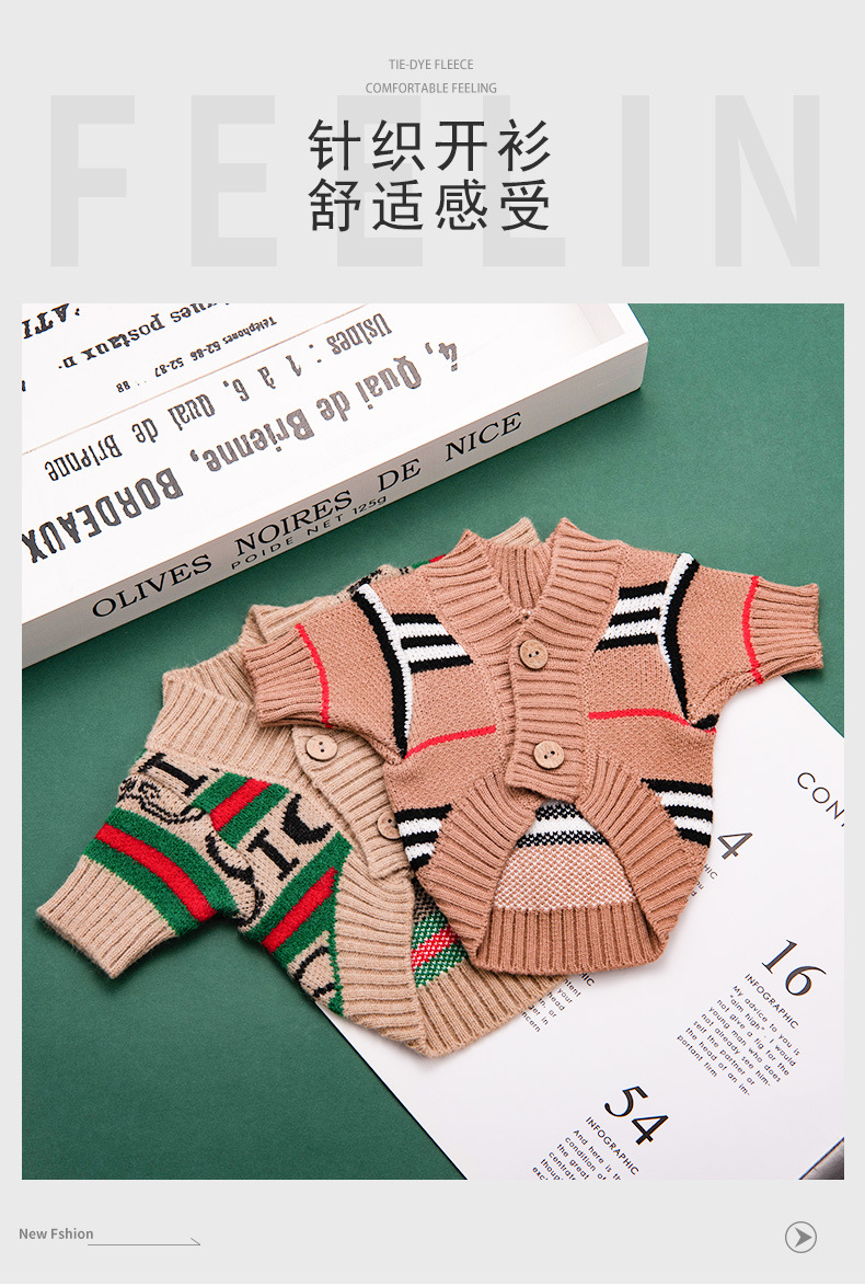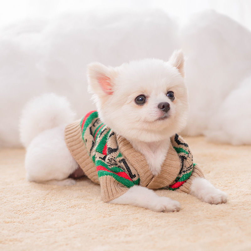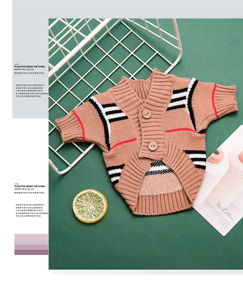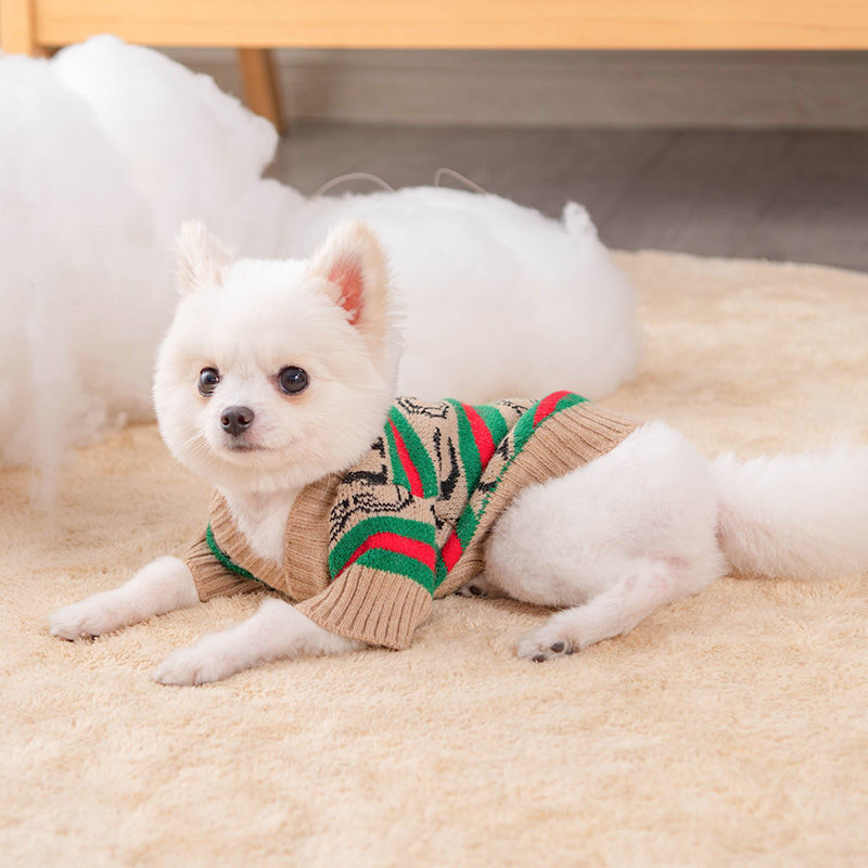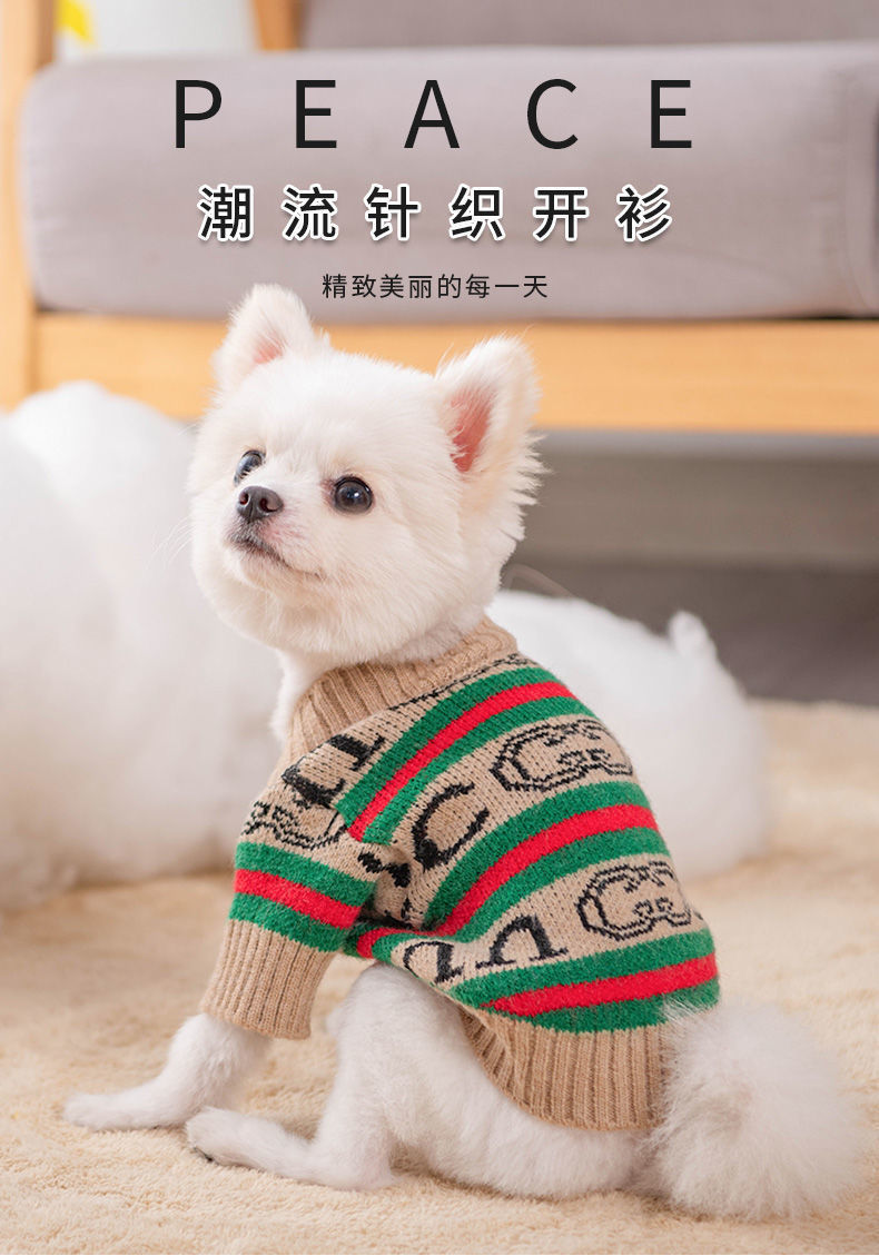 Ropa para perros cardigan estampado a rayas con letras de invierno Teddy Beat Bear Small Dog CAT PET Clothing Wholesale