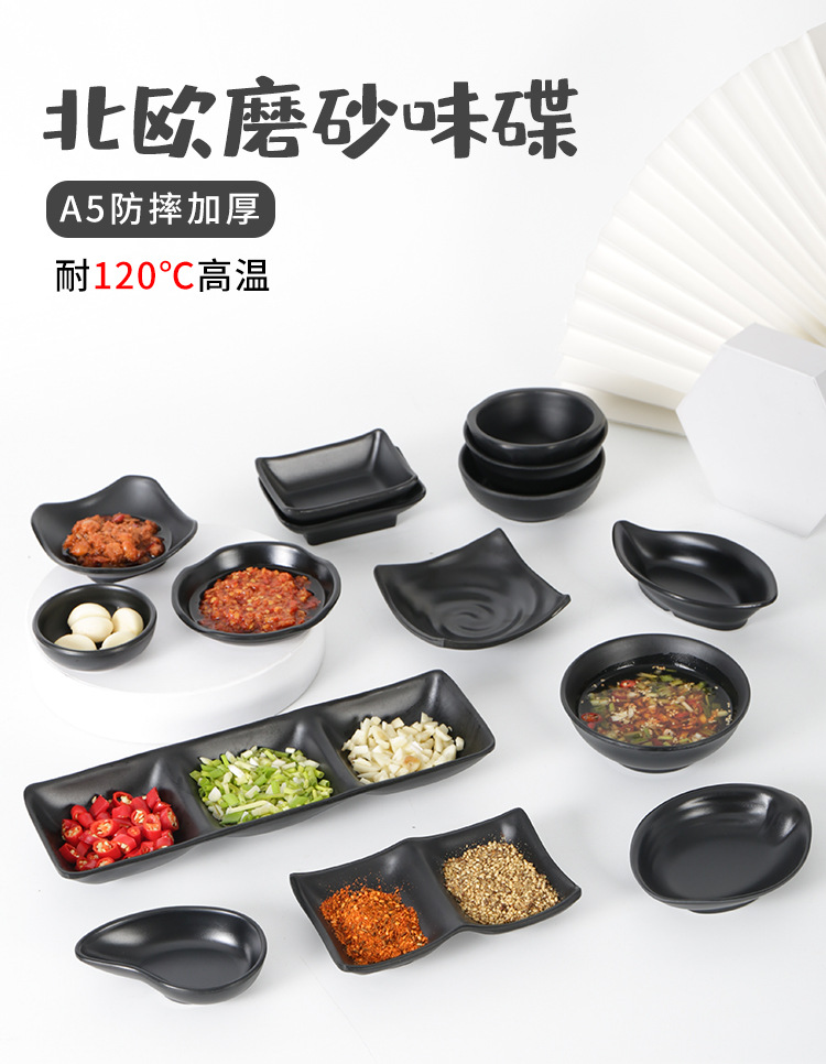 Vajilla de barbacoa de melamina, plato de plástico, plato de sabor comercial, salsa de salsa, salsa de soja, plato de salsa