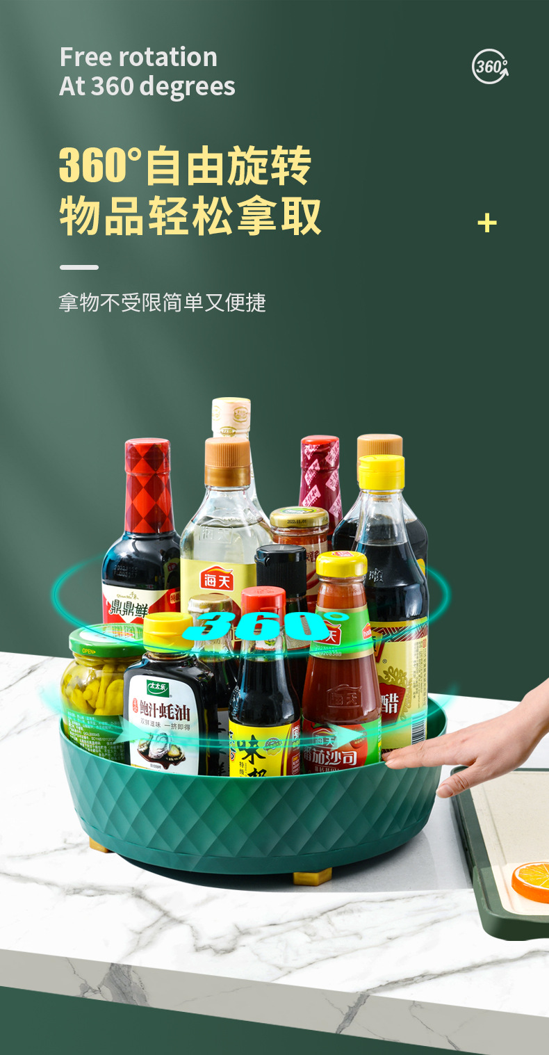 Estantes giratorios de condimentos, estantes de cocina, salsa de soja y vinagre multifuncionales, estantes de almacenamiento de condimentos, platos de condimentos domésticos.