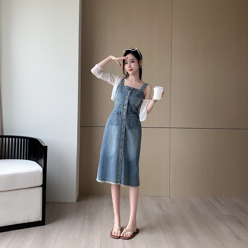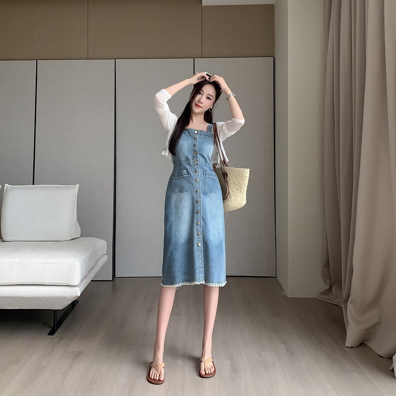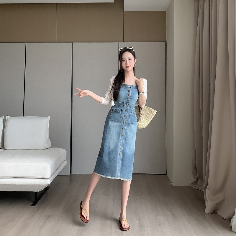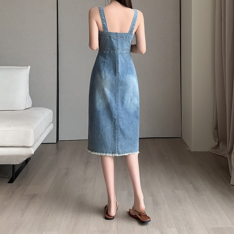 S - 5xl gordo mm ropa femenina de talla media y larga vestido delgado mujer 2024 nuevo vestido vaquero sexy