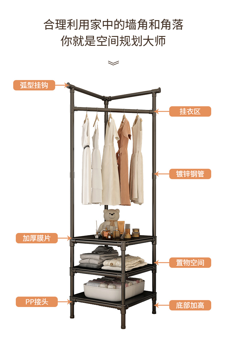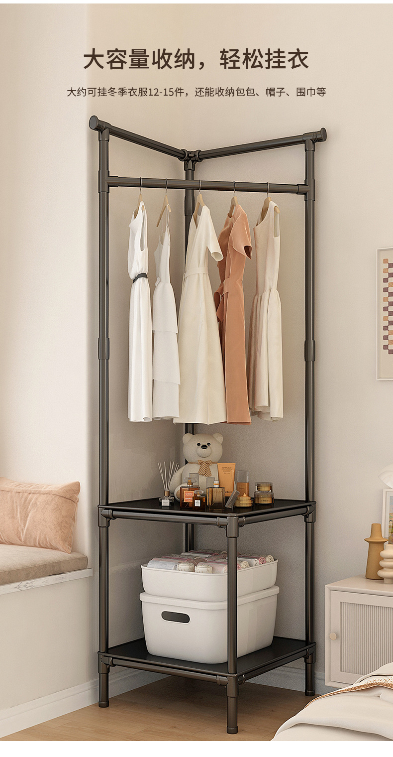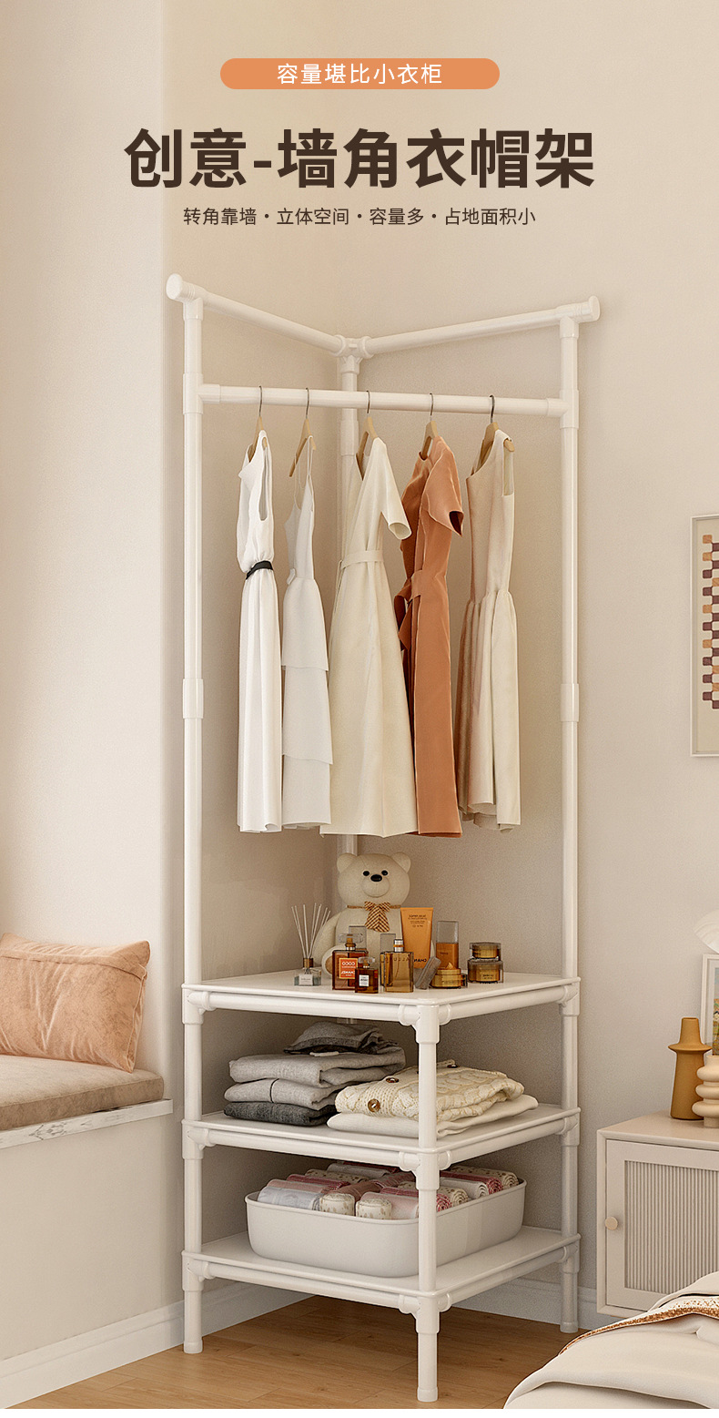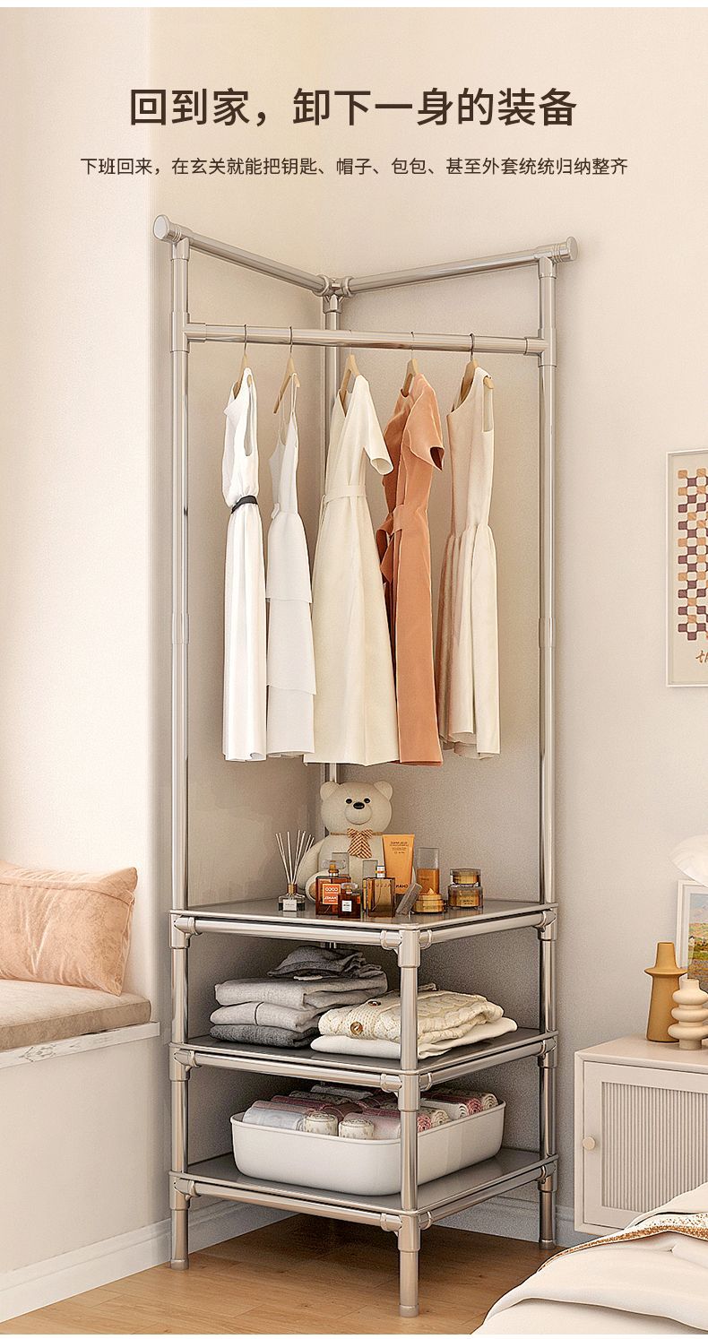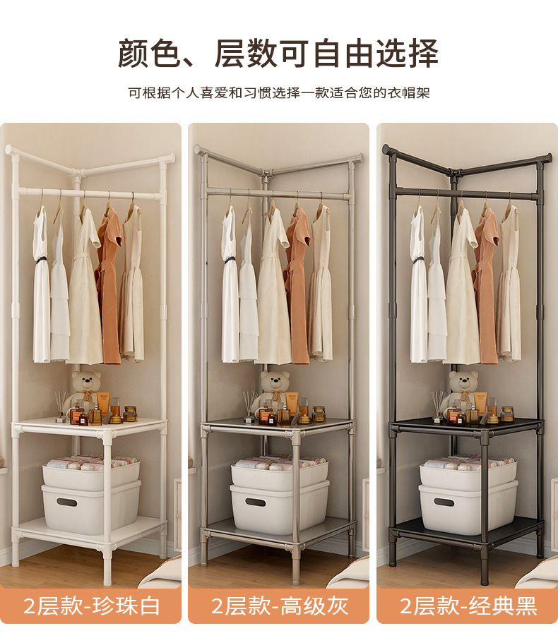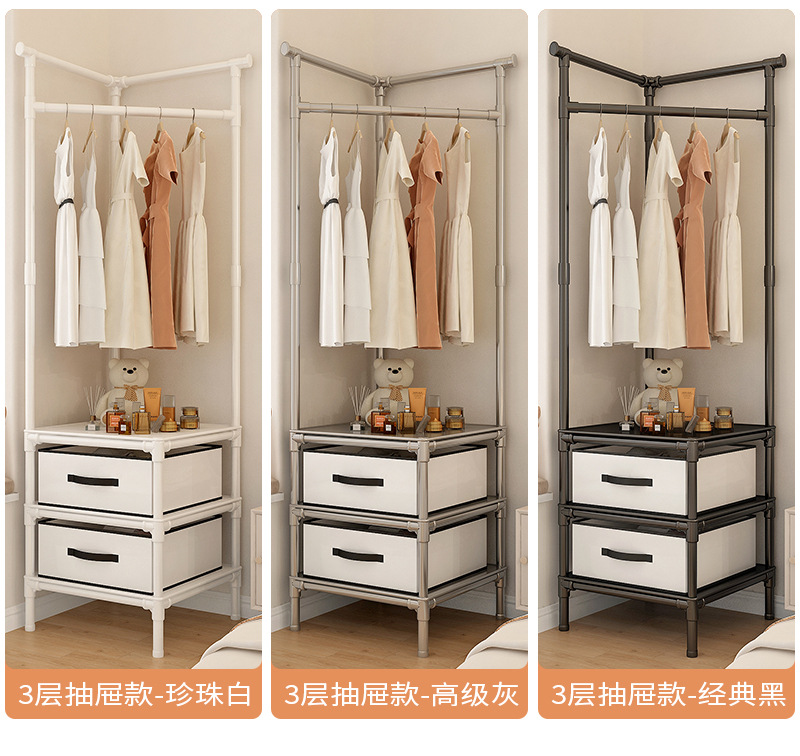 Estante de ropa simple, estante de ropa de esquina, dormitorio doméstico, estante de almacenamiento multifuncional de artefactos, tendedero interior