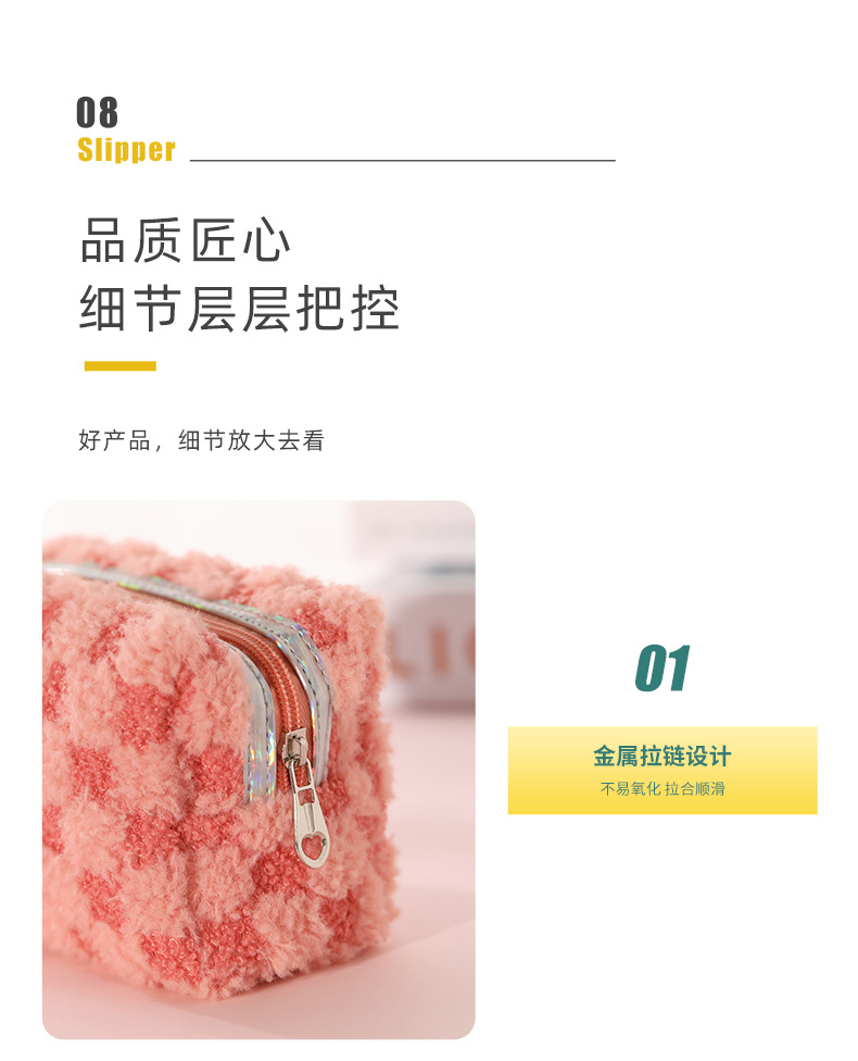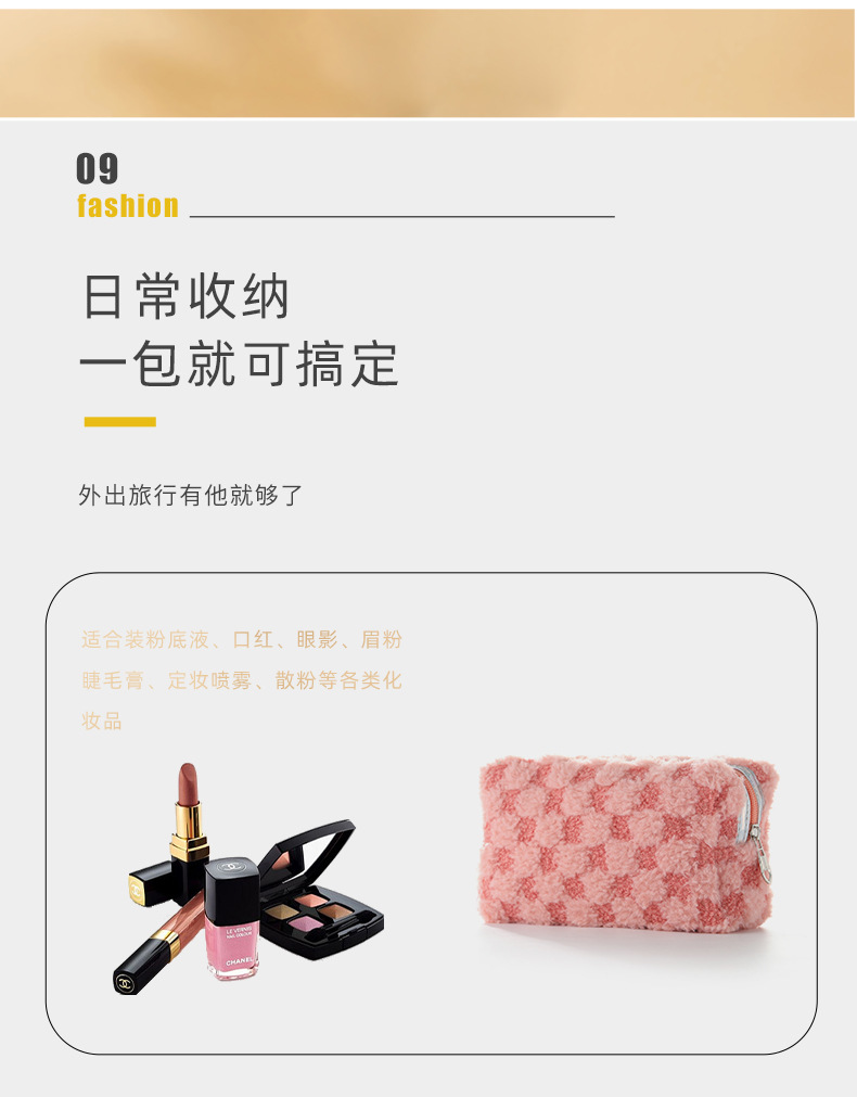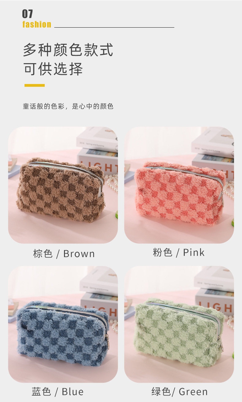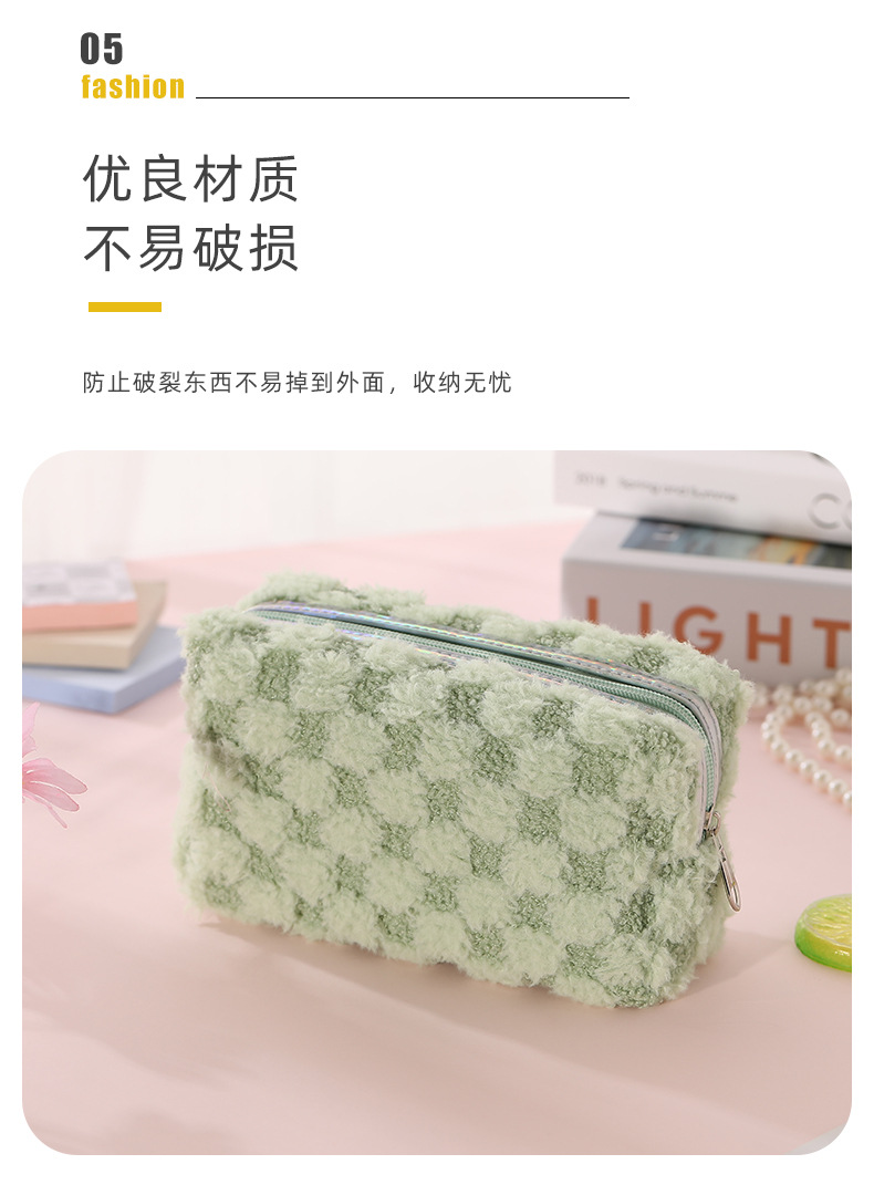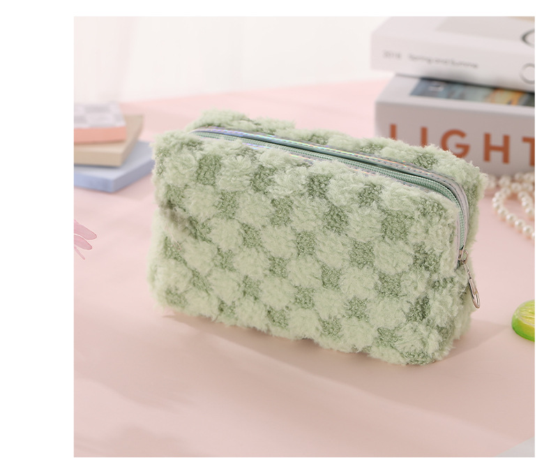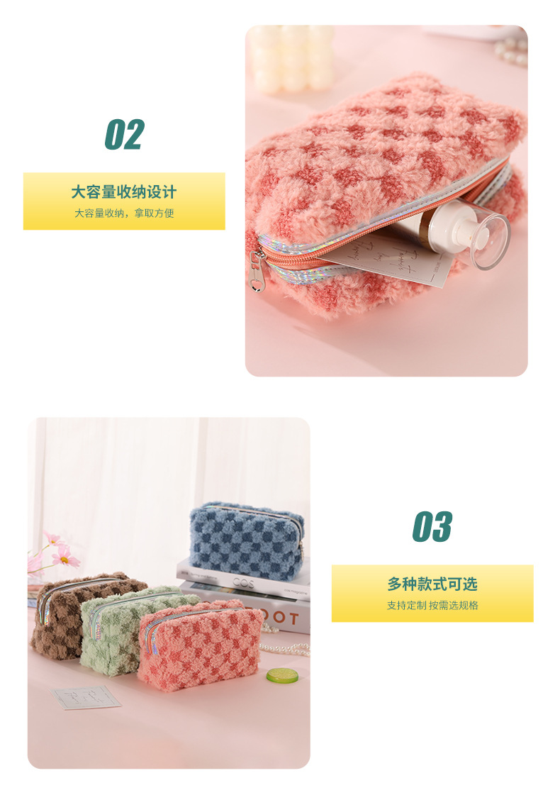 Nuevo paquete de maquillaje de peluche bicolor europeo y americano transfronterizo con patrón de tablero de ajedrez, paquete de lavado de celosía bicolor de gran capacidad