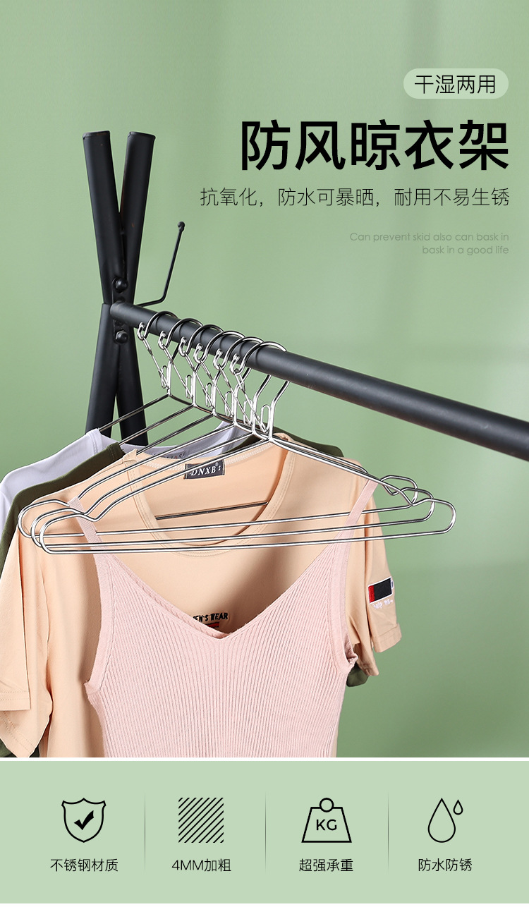 Tendederos mayoristas de acero inoxidable engrosado a prueba de viento tendederos domésticos para adultos y niños ropa de apoyo para colgar estantes de ropa metálica
