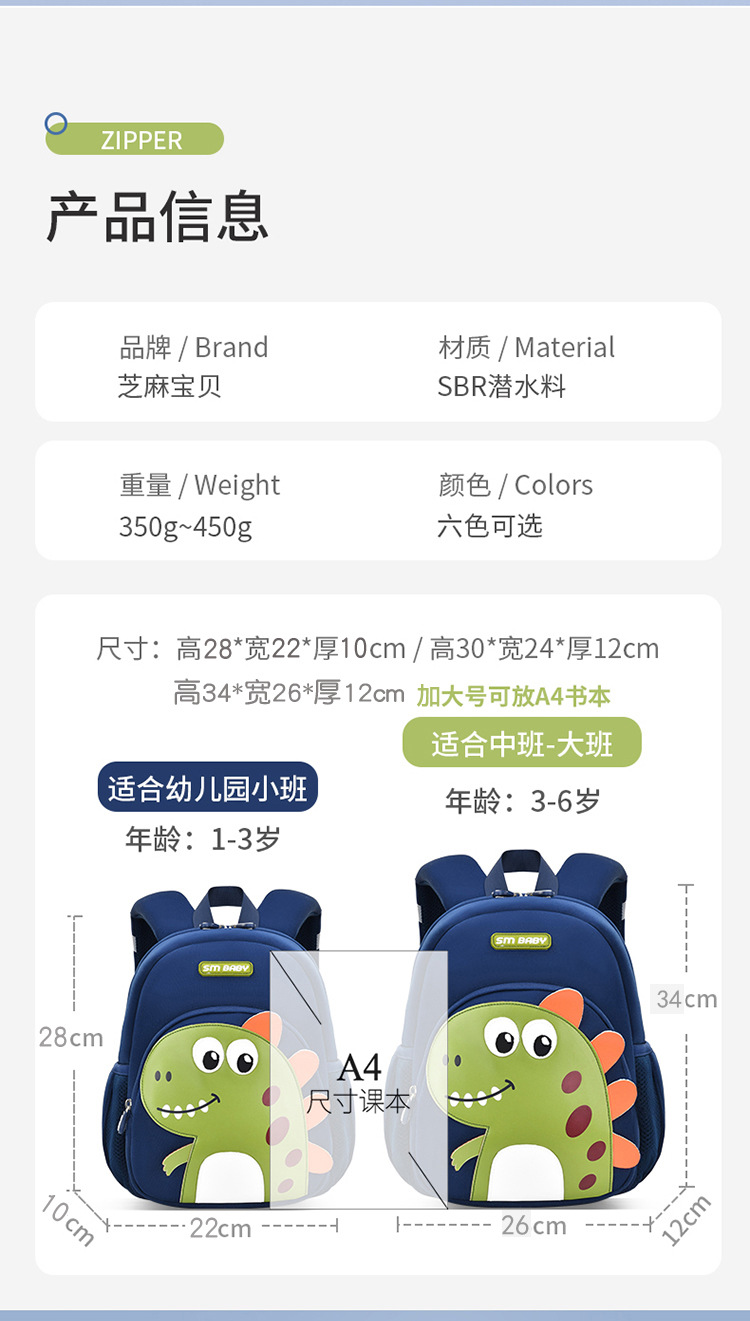 Bebé Sésamo nueva mochila de jardín de infantes dibujos animados lindos mochila de dinosaurio anti - pérdida bolsa de buceo para niños y niñas