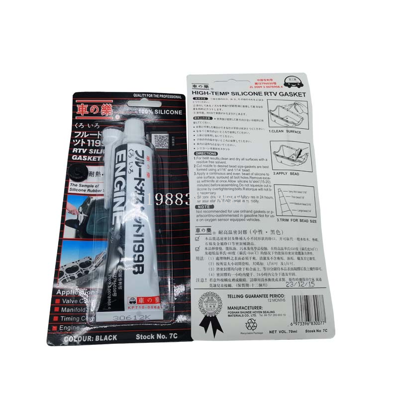 密封胶,引进先进生产工艺技术配制而成。单组份、密封强度高、耐高温效果好、耐候性持久、立面涂胶不下垂、耐油性良好、无腐蚀、无刺激性气体、固化物不收缩、胶体易剥离、环保无毒。不受结合面大小及形状限制。可替代各种橡胶垫、石棉垫、软木垫和纸垫,能有效防止水、油、气渗漏,具有良好的密封防漏效果。