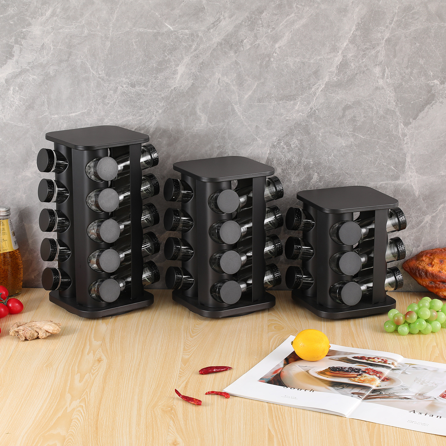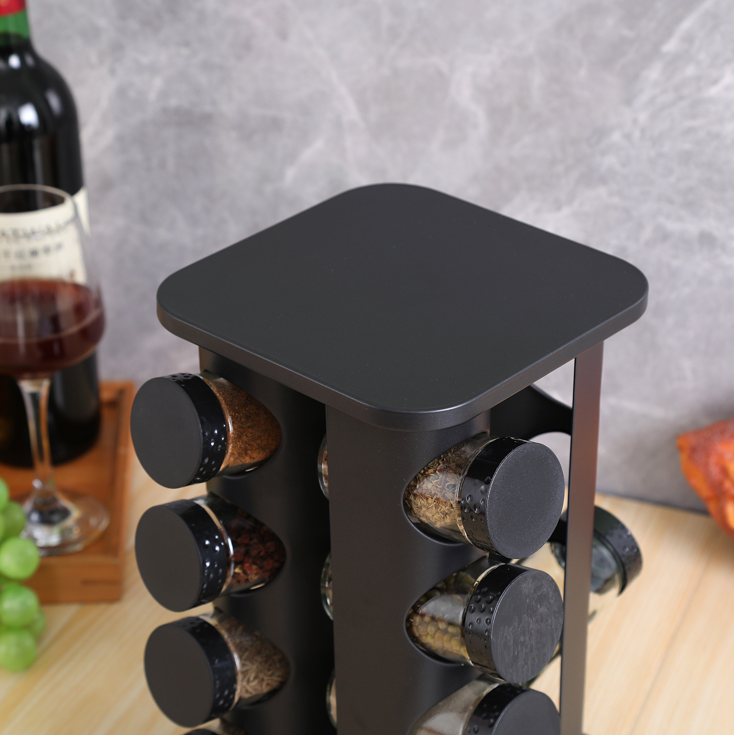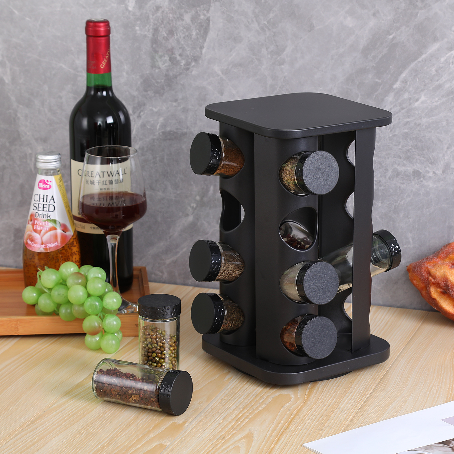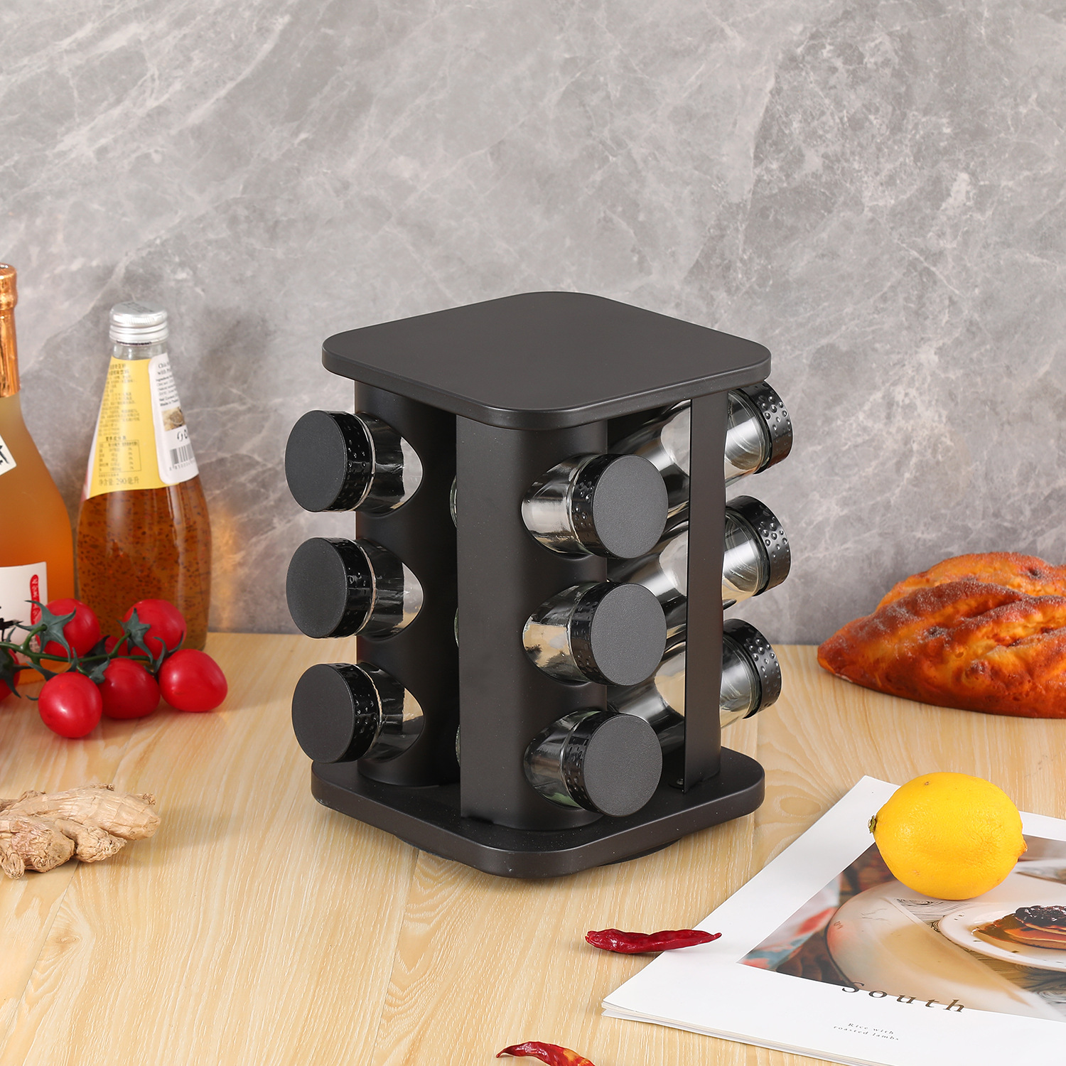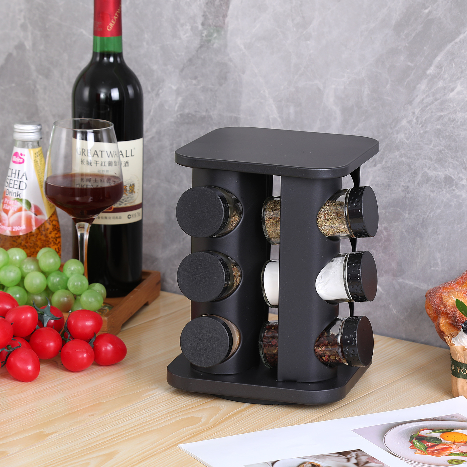 Amazon transfronterizo tapa negra giratoria base cuadrada tapa de acero inoxidable juego de botellas de condimento al por mayor
