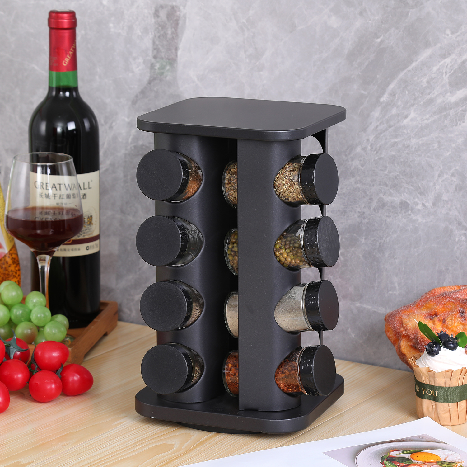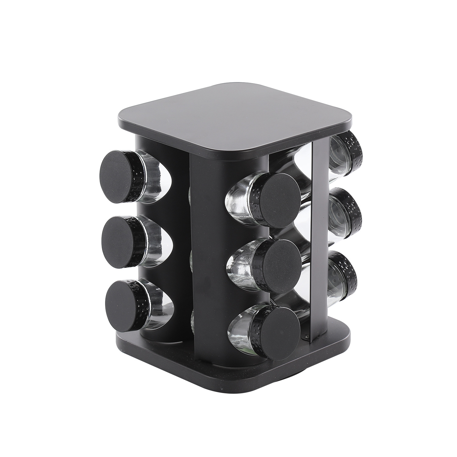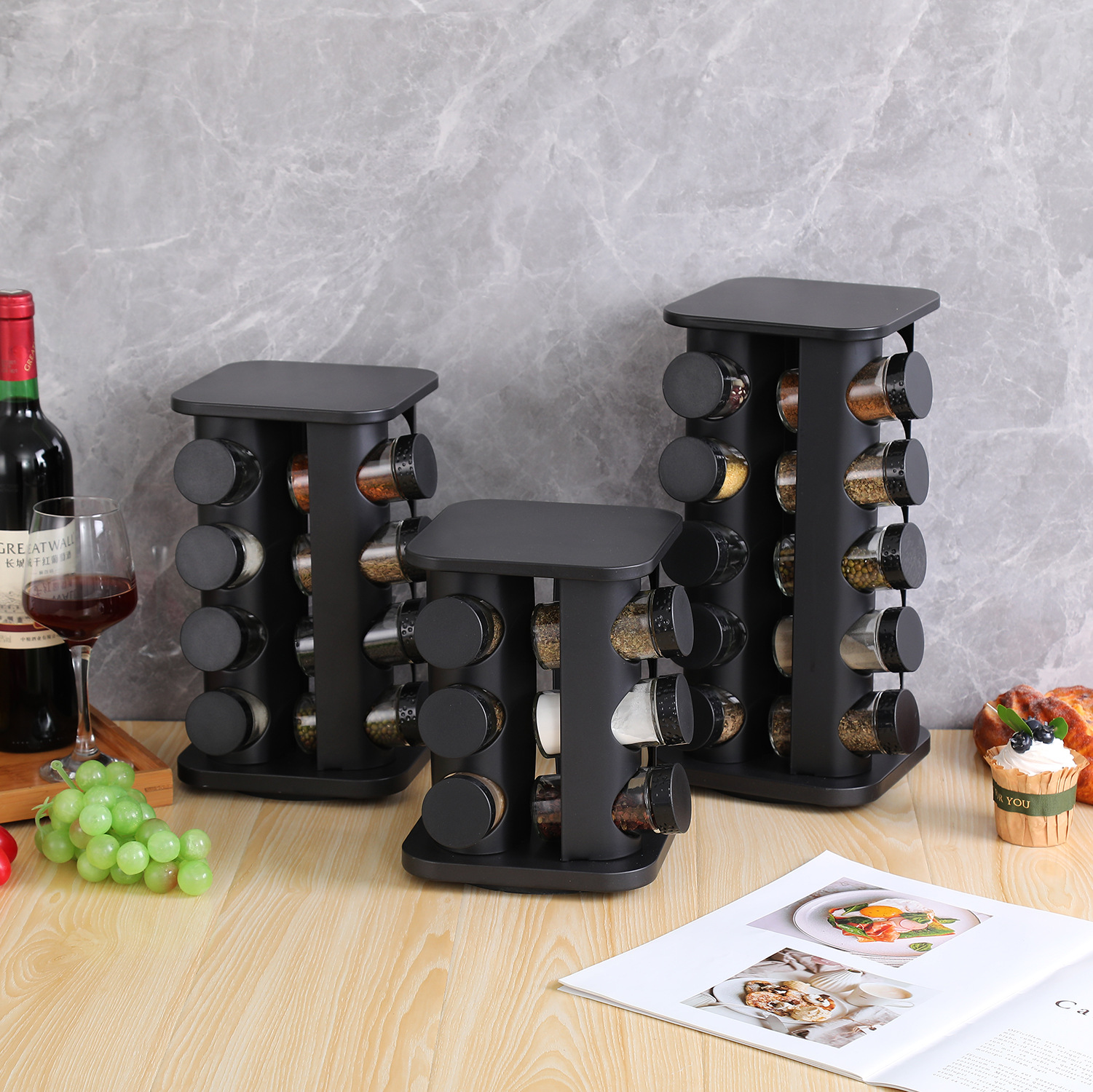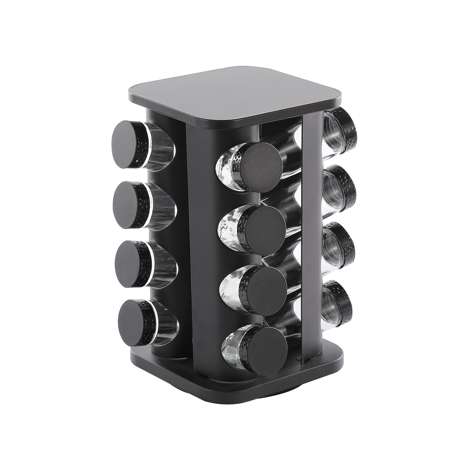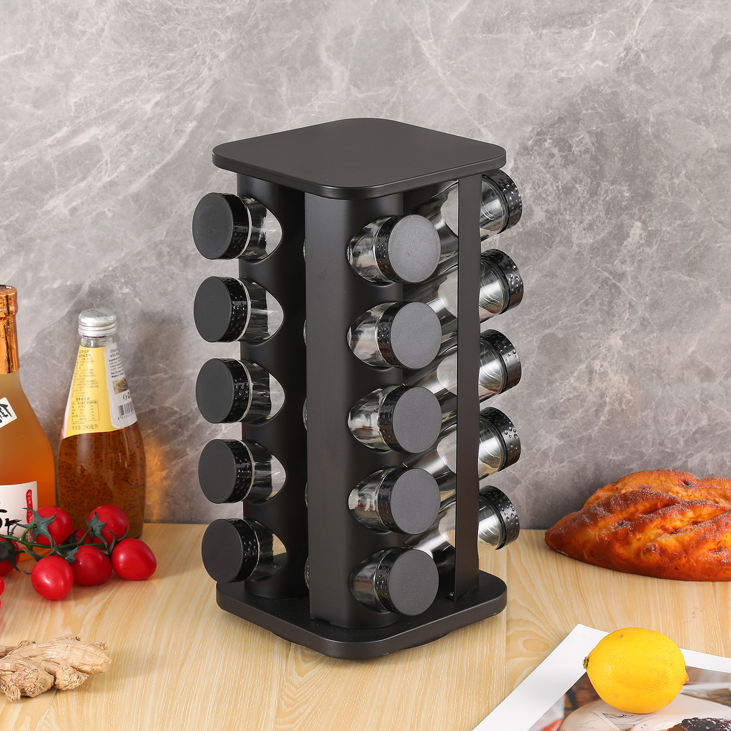 Amazon transfronterizo tapa negra giratoria base cuadrada tapa de acero inoxidable juego de botellas de condimento al por mayor
