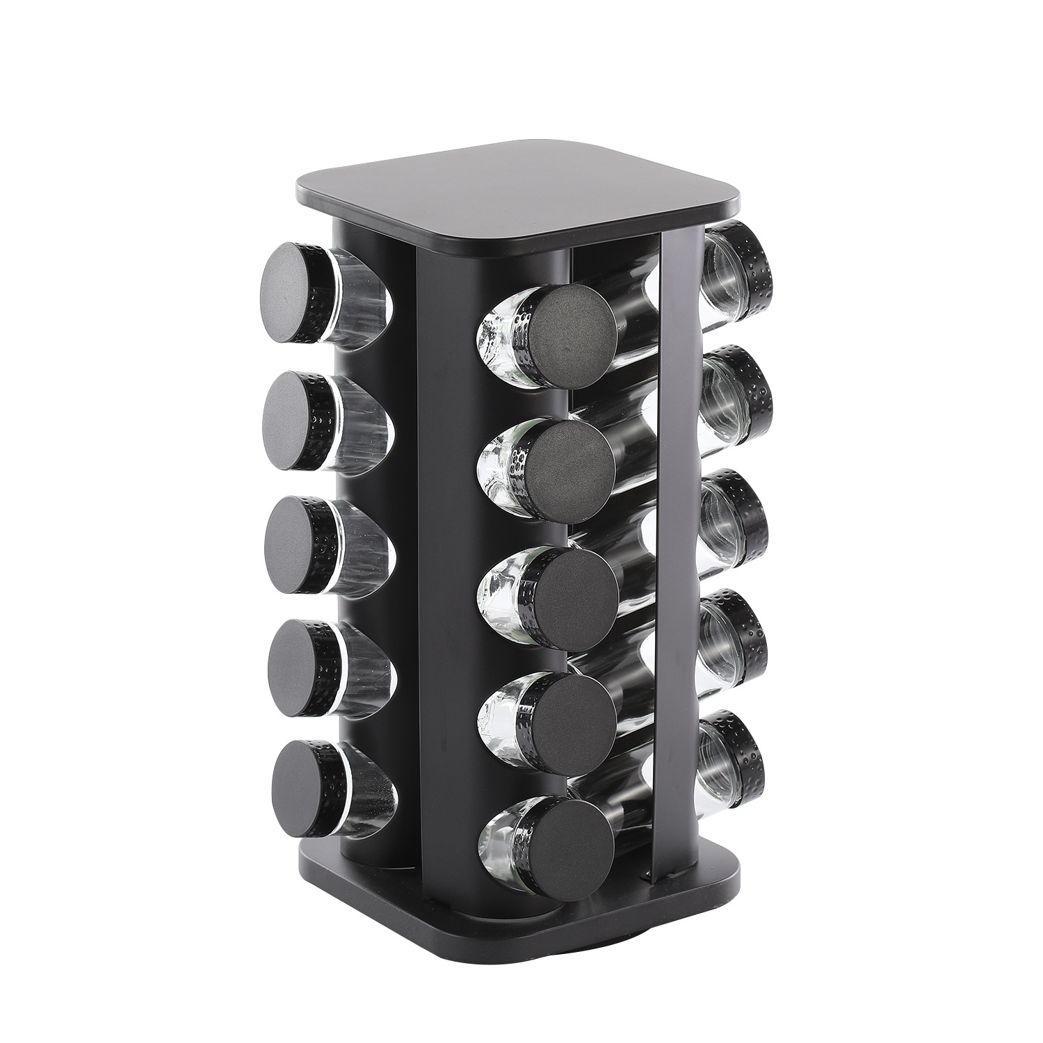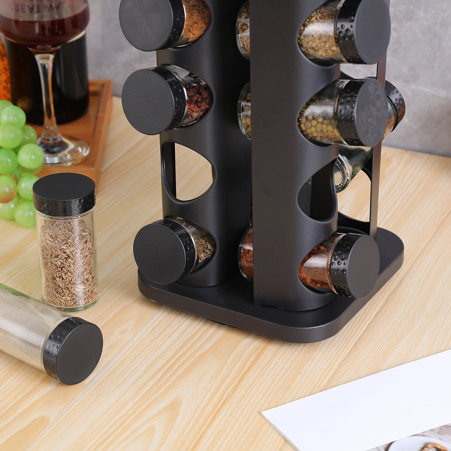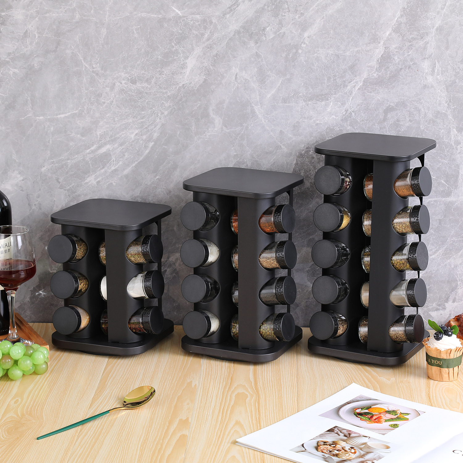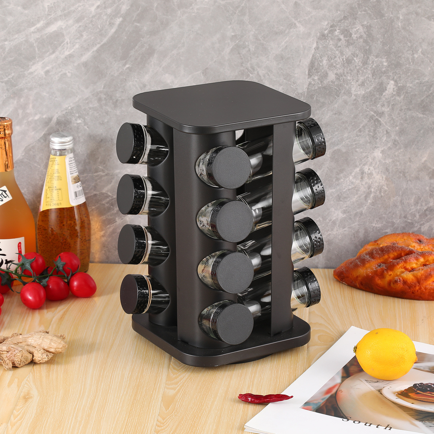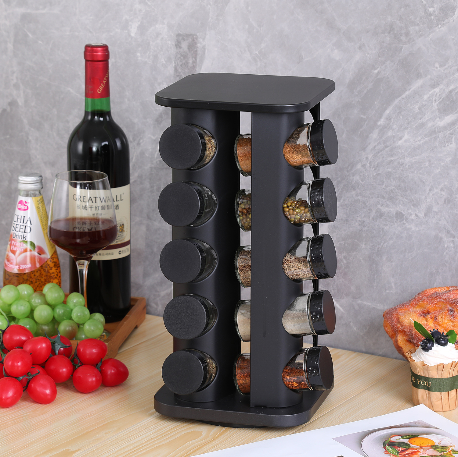 Amazon transfronterizo tapa negra giratoria base cuadrada tapa de acero inoxidable juego de botellas de condimento al por mayor
