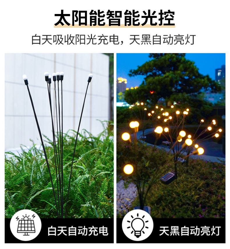 Nueva luz de luciérnaga eólica solar LED lámpara de césped impermeable al aire libre lámpara de campamento patio lámpara de suelo