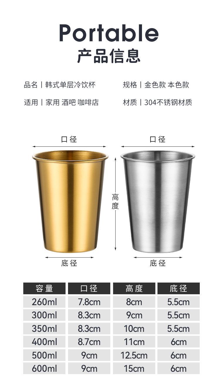 Nuevos vasos de cerveza de acero inoxidable 304 de estilo coreano portátiles de una sola planta de bebidas frías al aire libre vasos de agua de campamento tazas de café lotes
