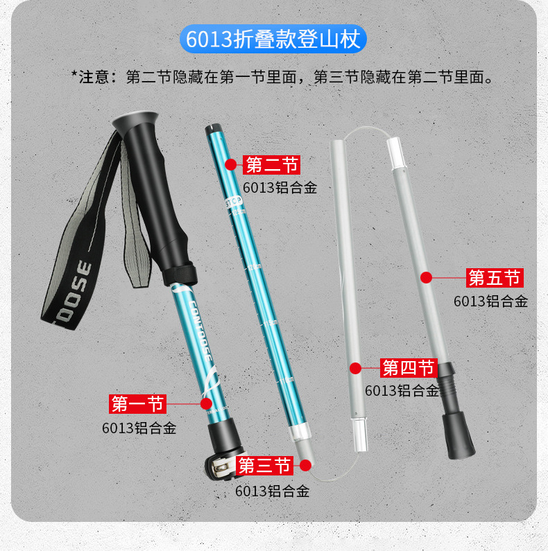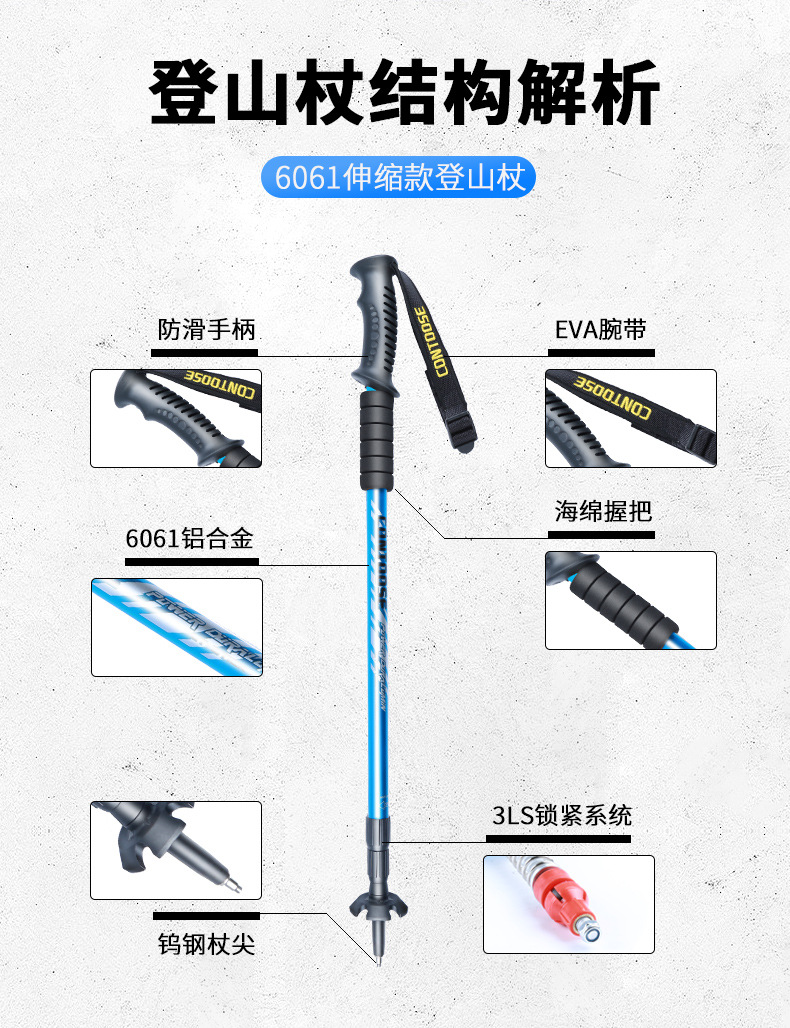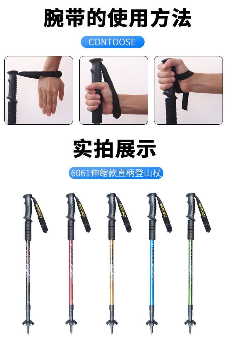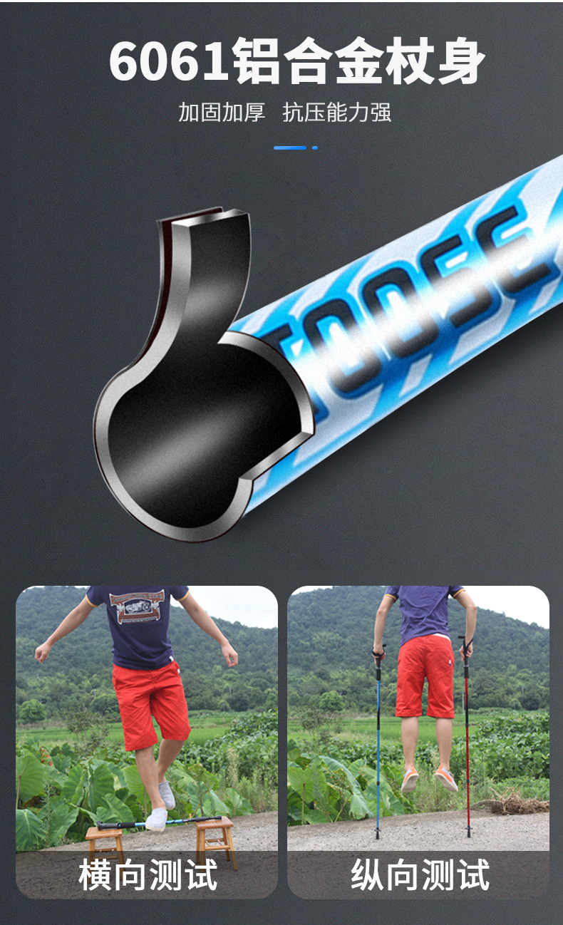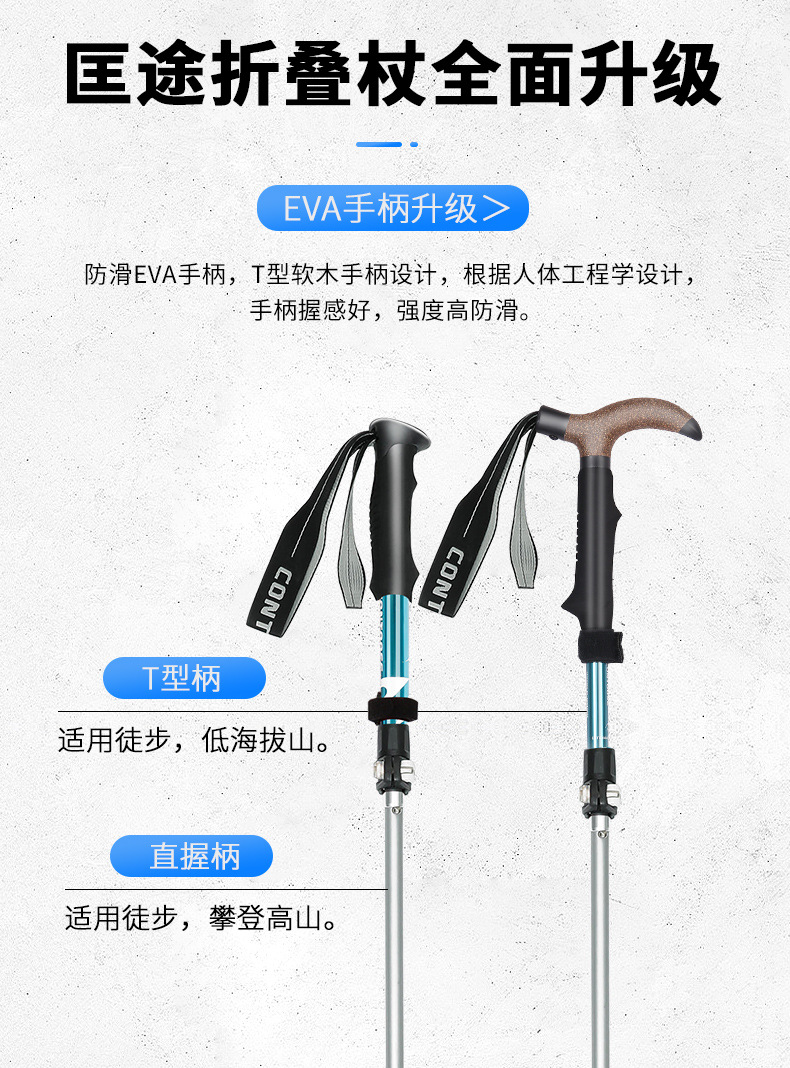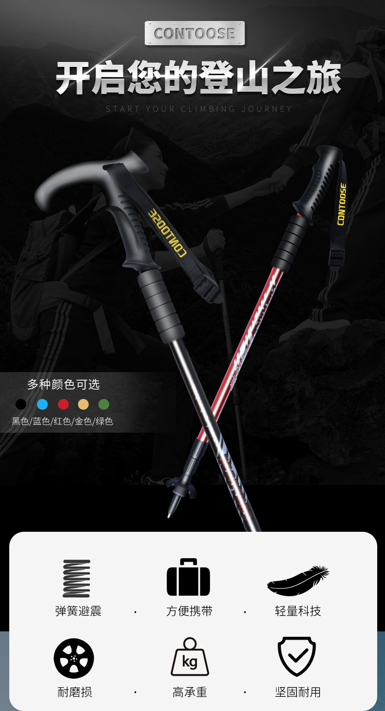 Kuangtu super ligero bastón de escalada telescópico, muleta de escalada a pie, bastón de montaña, bastón de montaña, equipo al aire libre femenino sin carbono