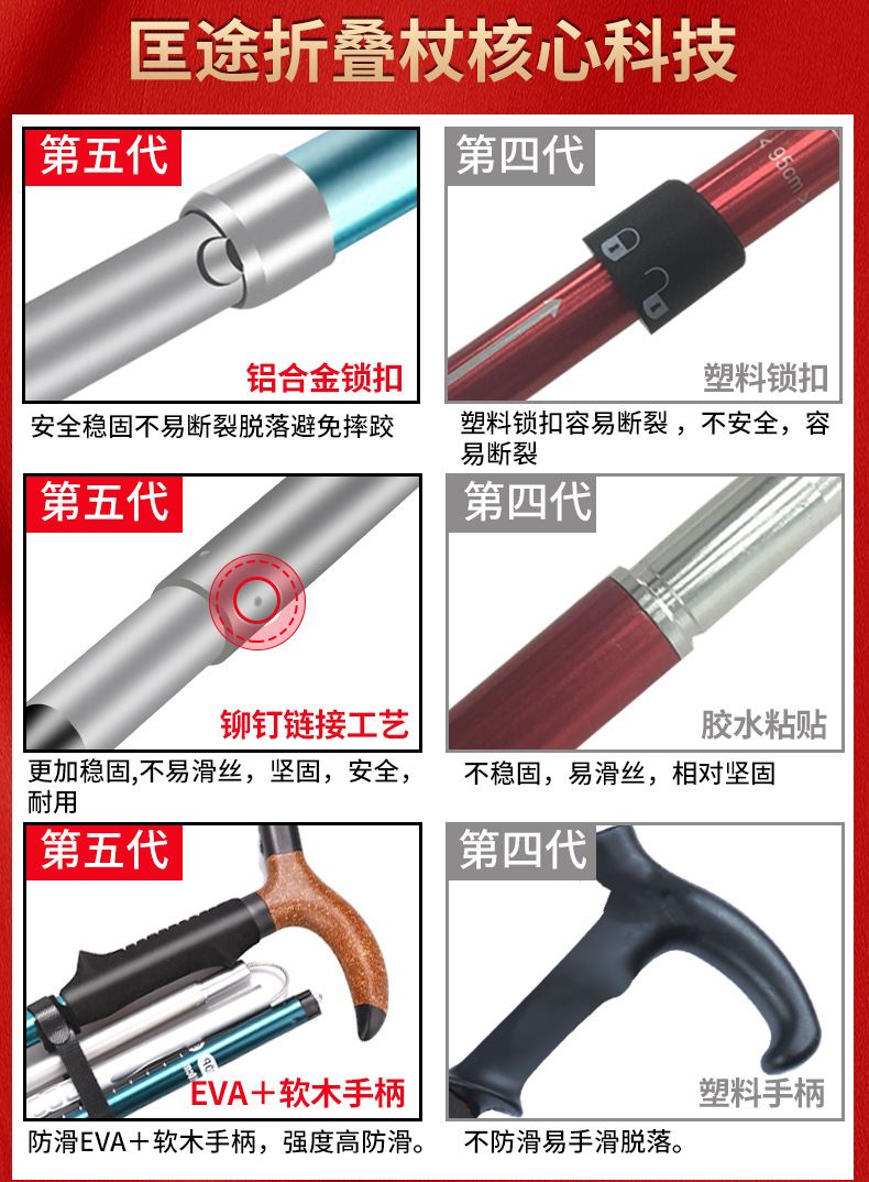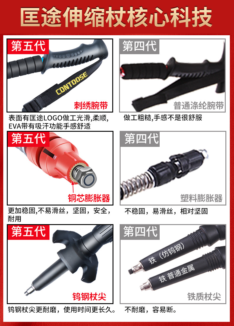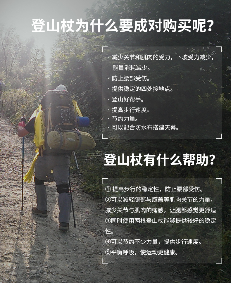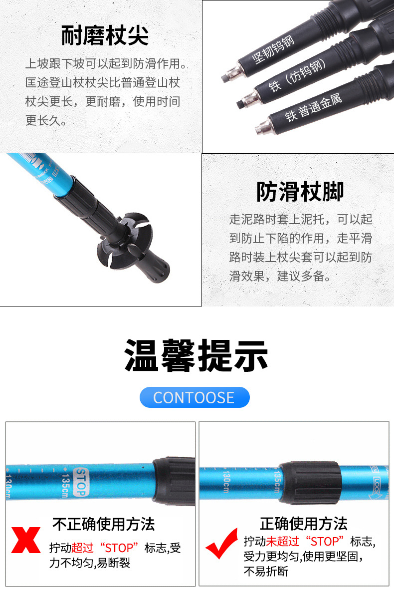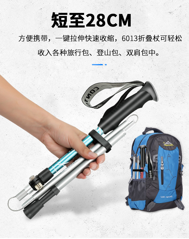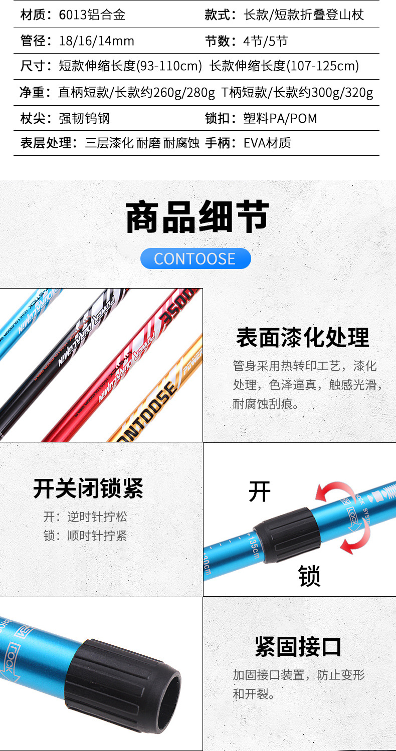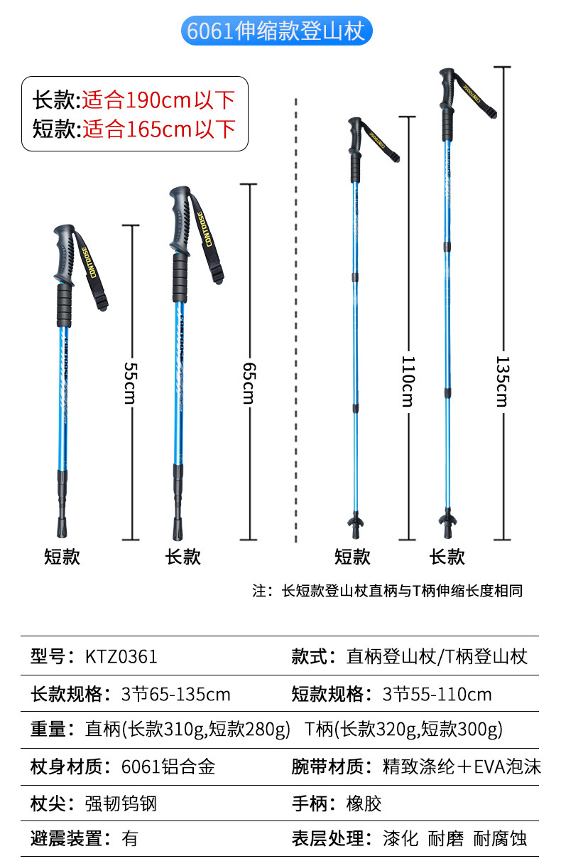 Kuangtu super ligero bastón de escalada telescópico, muleta de escalada a pie, bastón de montaña, bastón de montaña, equipo al aire libre femenino sin carbono