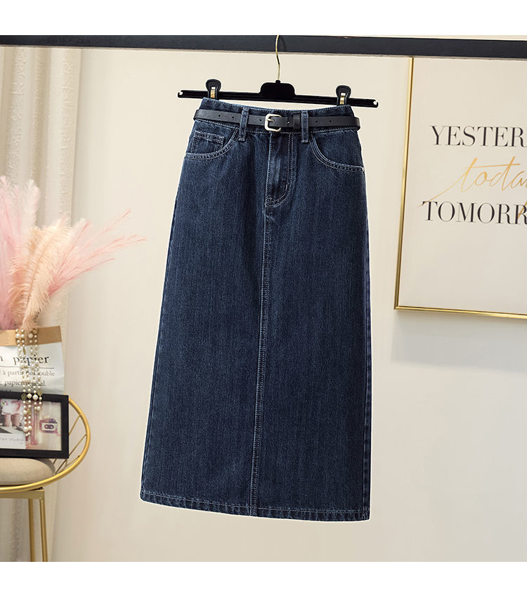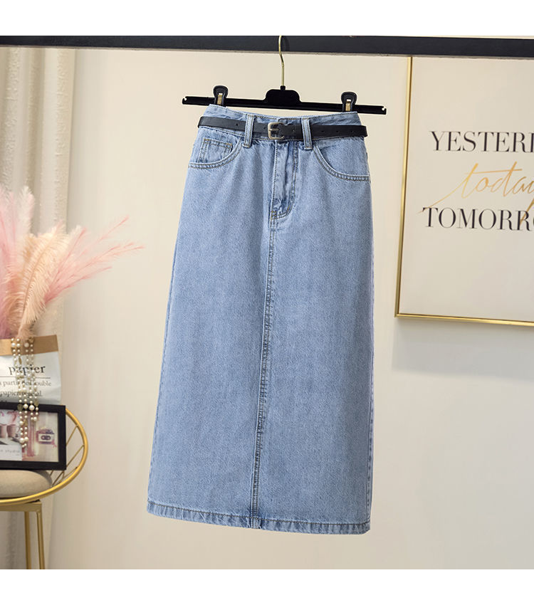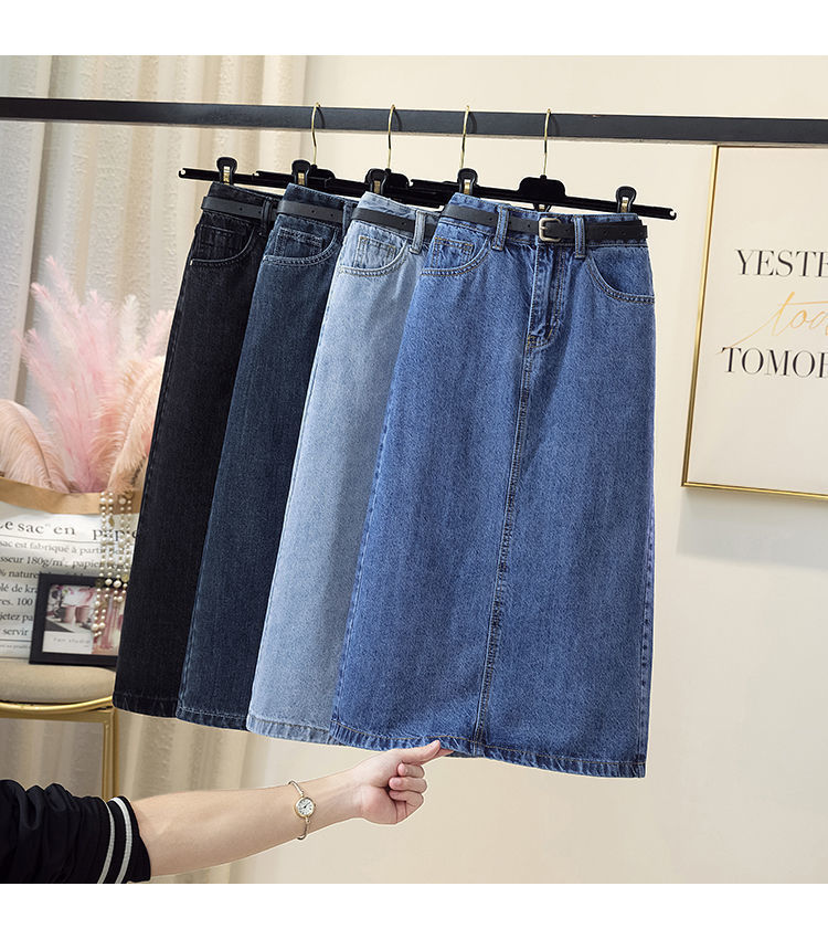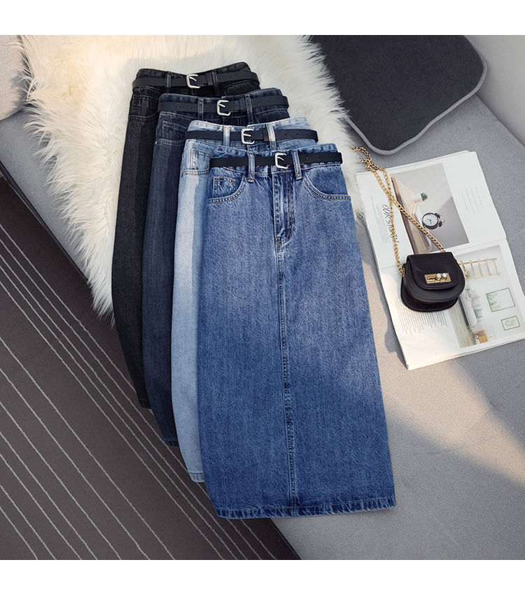 Falda vaquero de horquilla abierta falda de cintura alta mujer verano 2022 nueva falda delgada de estilo a de media y larga humedad