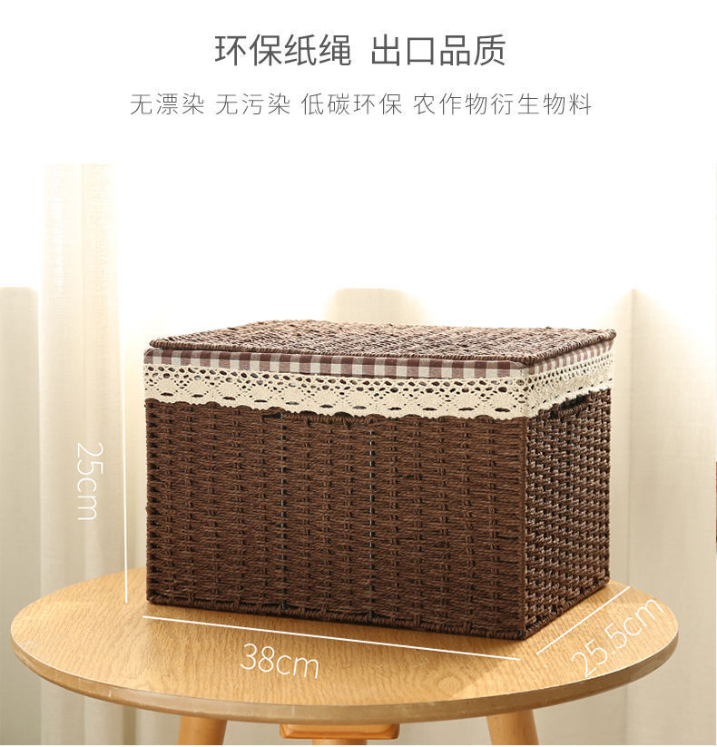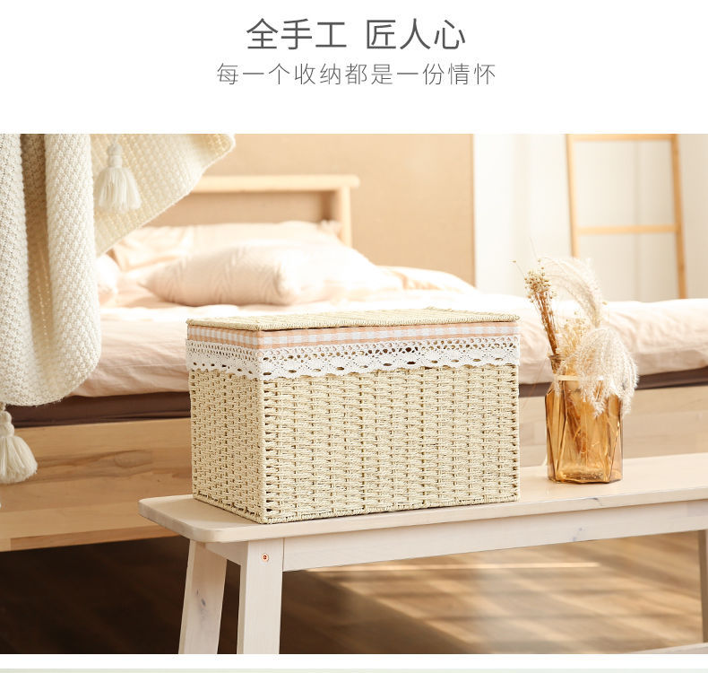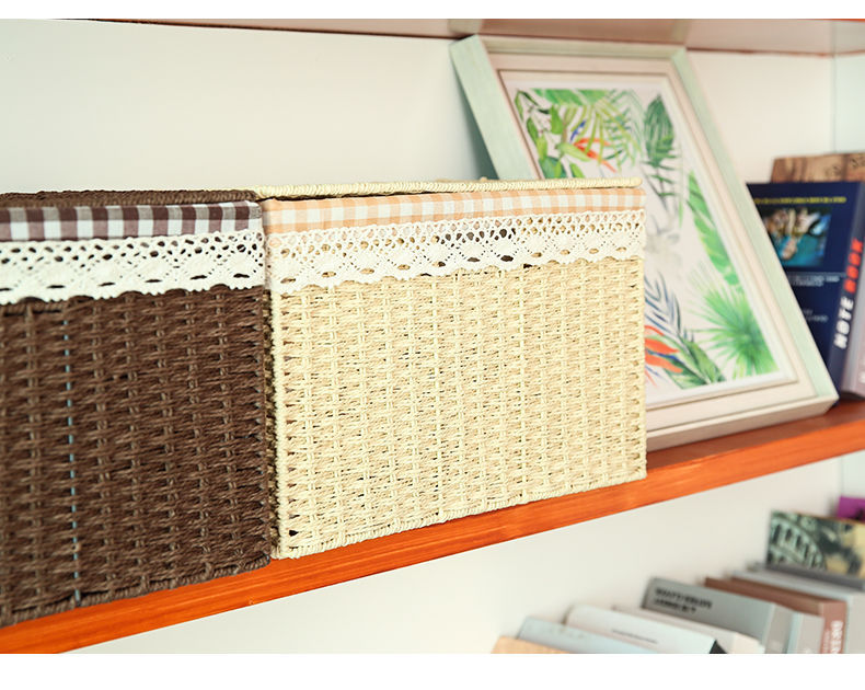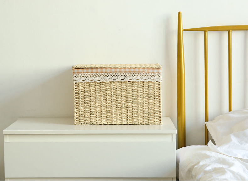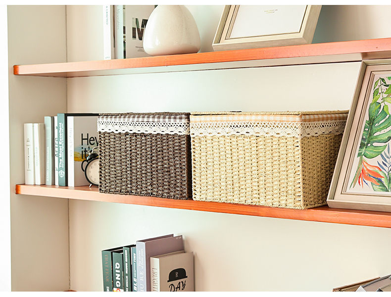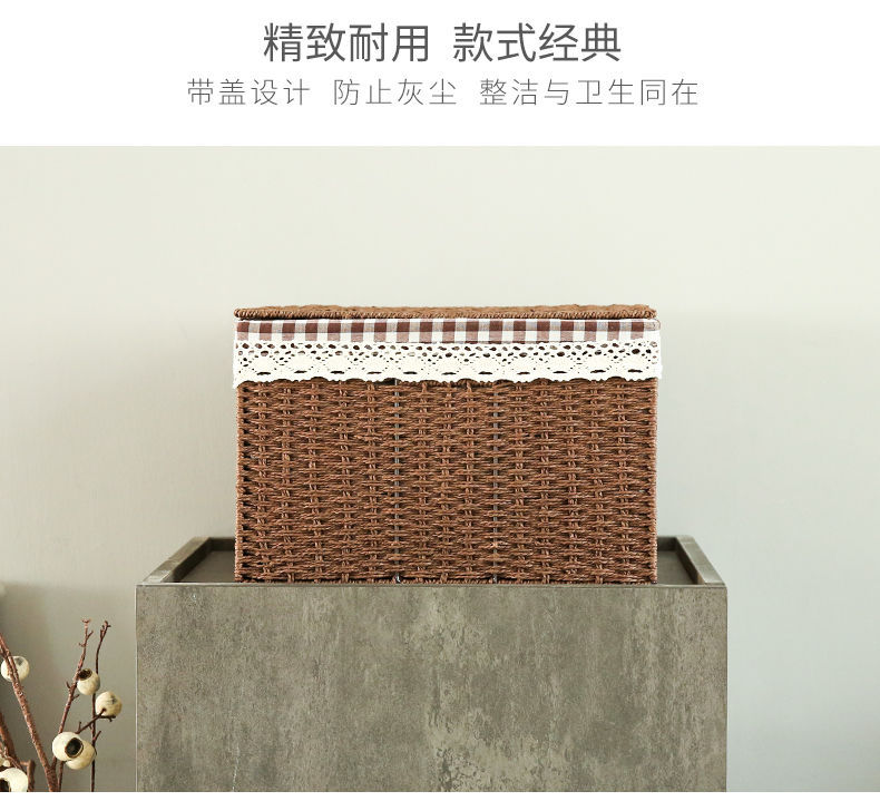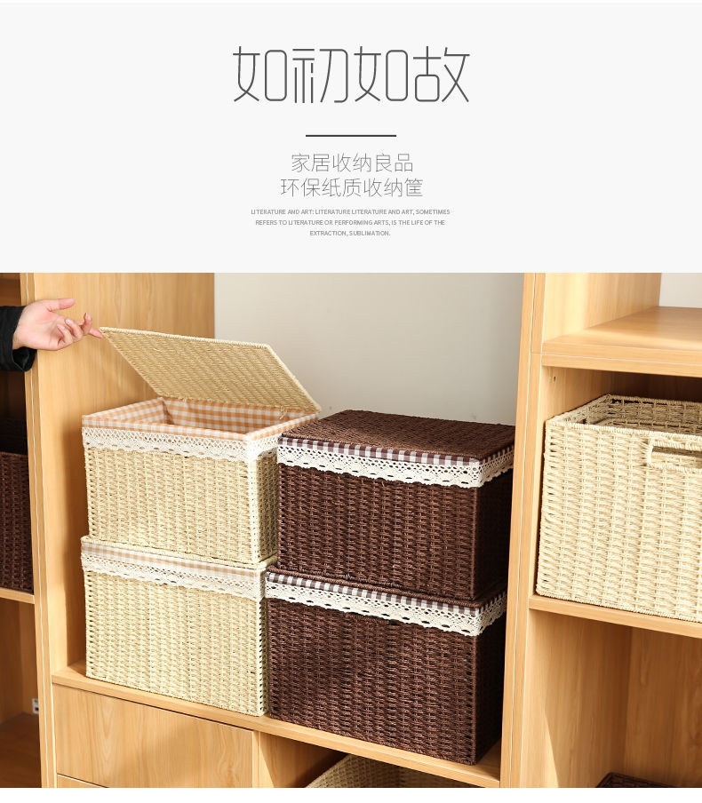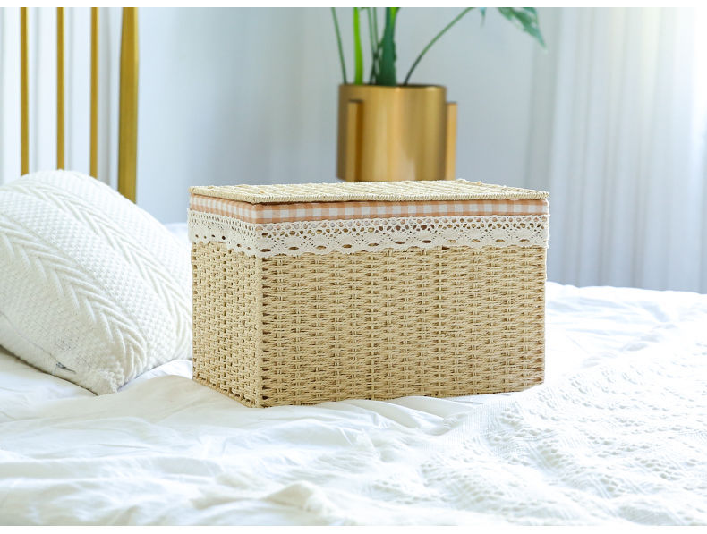 Cesta de almacenamiento imitación de canasta de ratán, Mesa de tejido de paja cuadrada con tapa de tejido, cesta de almacenamiento de juguetes para el hogar, cesta de almacenamiento de papel