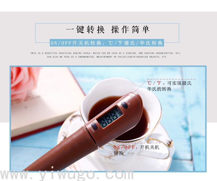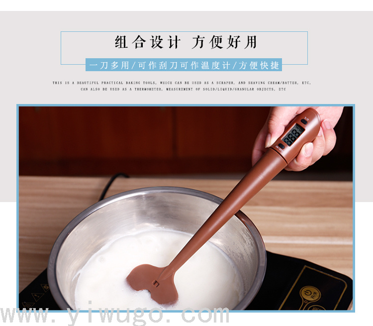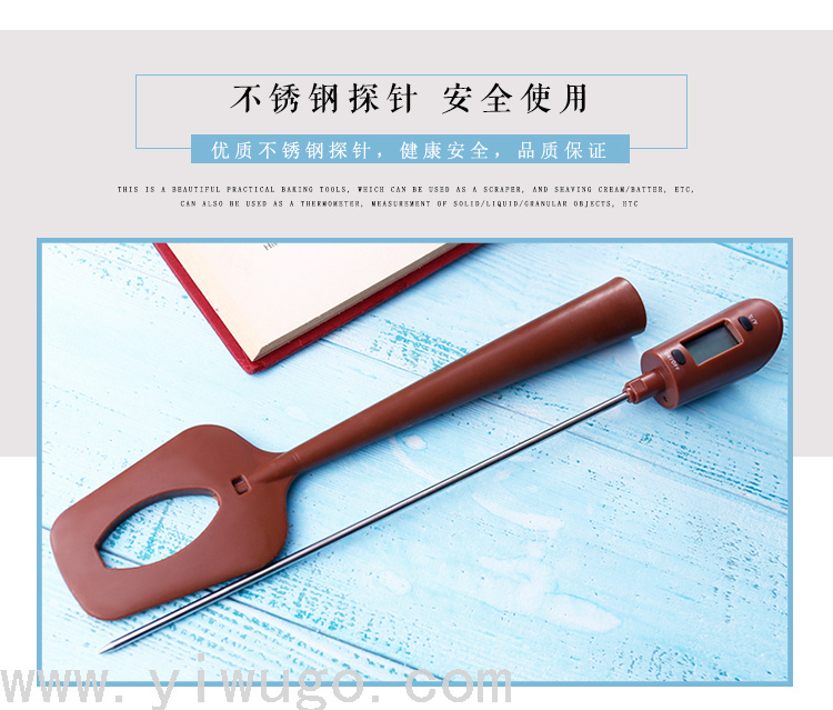 Termómetro de alimentos con pantalla digital electrónica, herramienta de mezcla de horneado de silicona, medición de temperatura de alimentos, termómetro de raspador doméstico