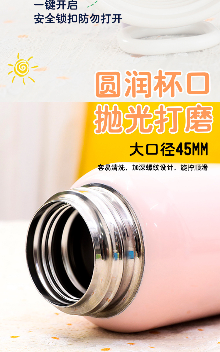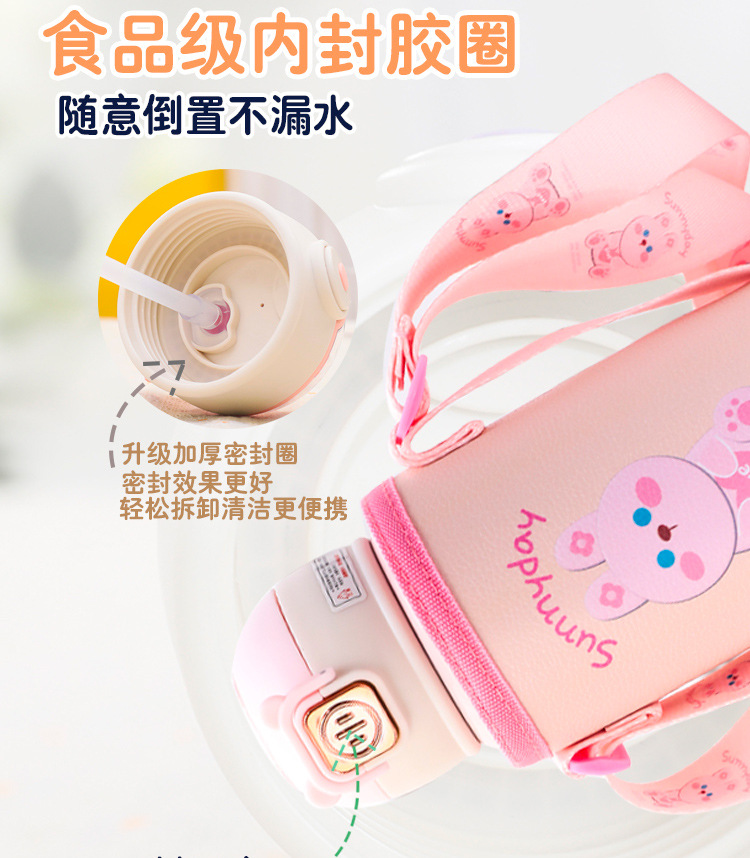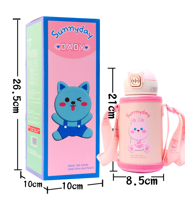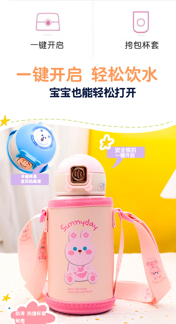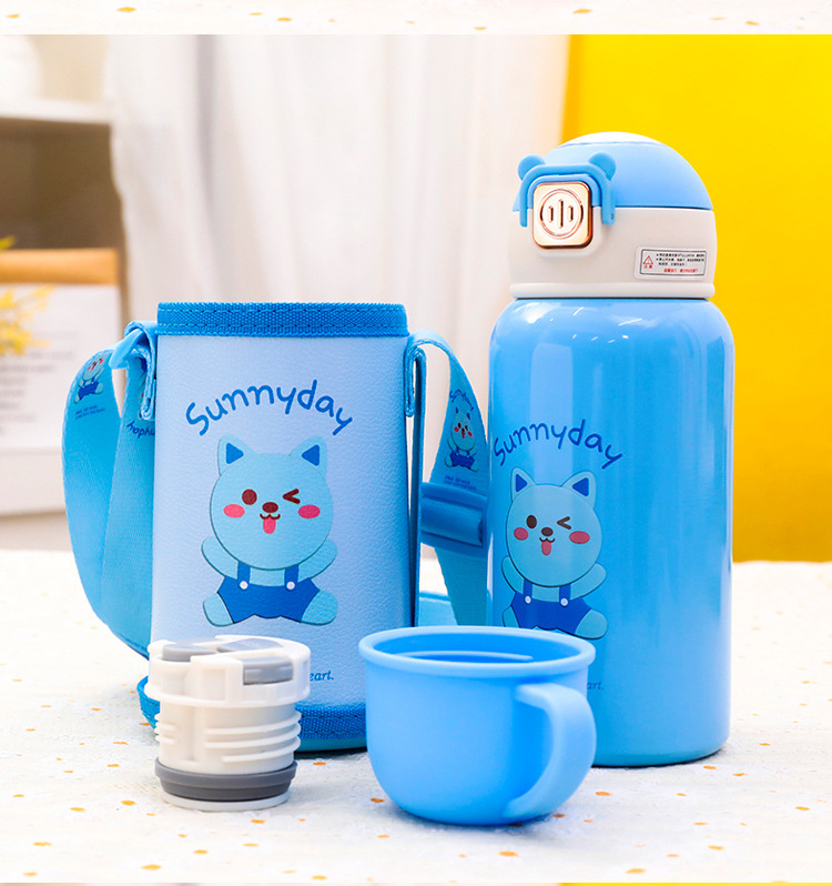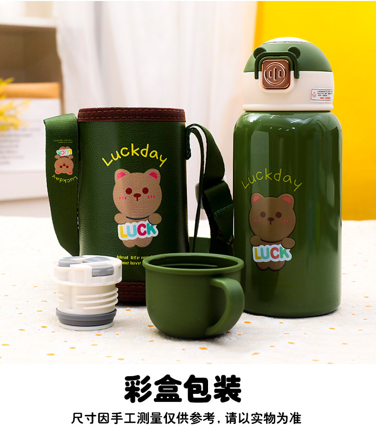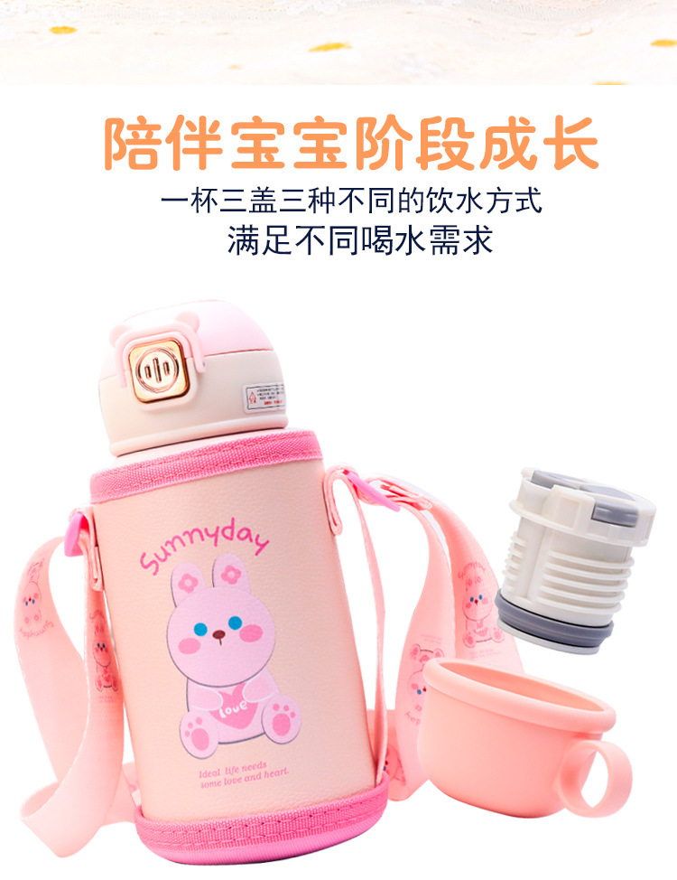 El bebé lleva una tetera 316 taza térmica de acero inoxidable, taza de agua de dibujos animados, doble tapa, taza térmica de pajita de doble uso