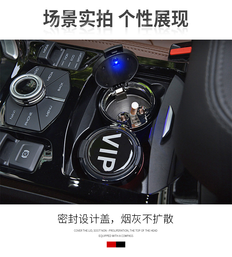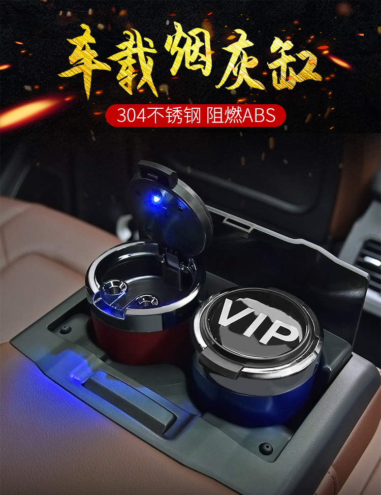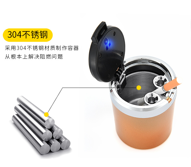 Nuevo cenicero para vehículos led, logotipo de pintura a la parrilla de acero inoxidable, cenicero para automóviles, modelo general