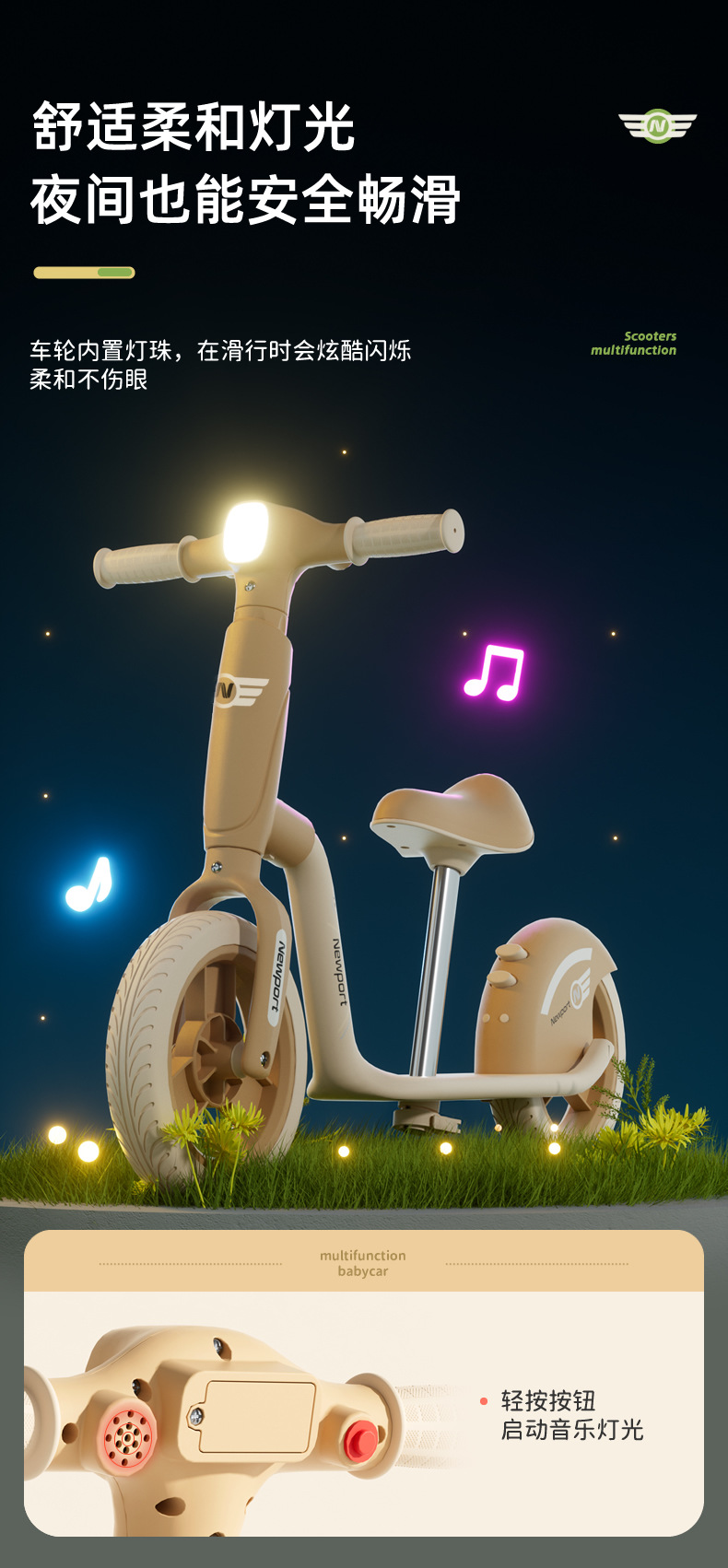 Scooter infantil tres en uno regalo de cumpleaños música iluminación puede tomar el scooter infantil juguete bebé coche de equilibrio