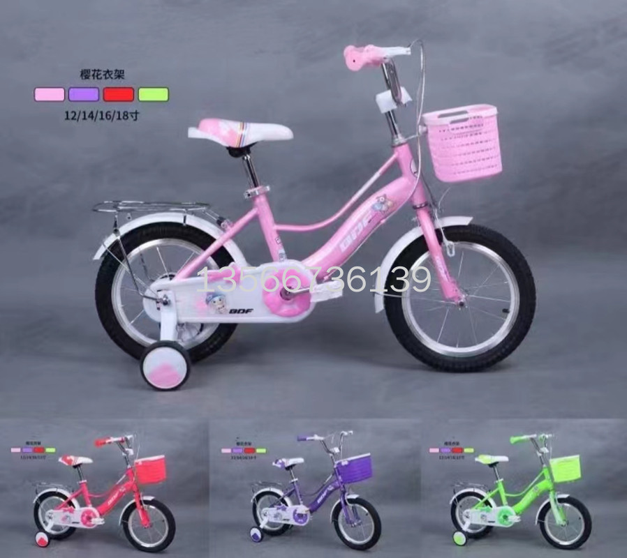 2022 nueva bicicleta infantil percha de Cerezo de flores de cerezo tamaño múltiple con ruedas auxiliares multicolor con cesta asiento trasero cochecito infantil