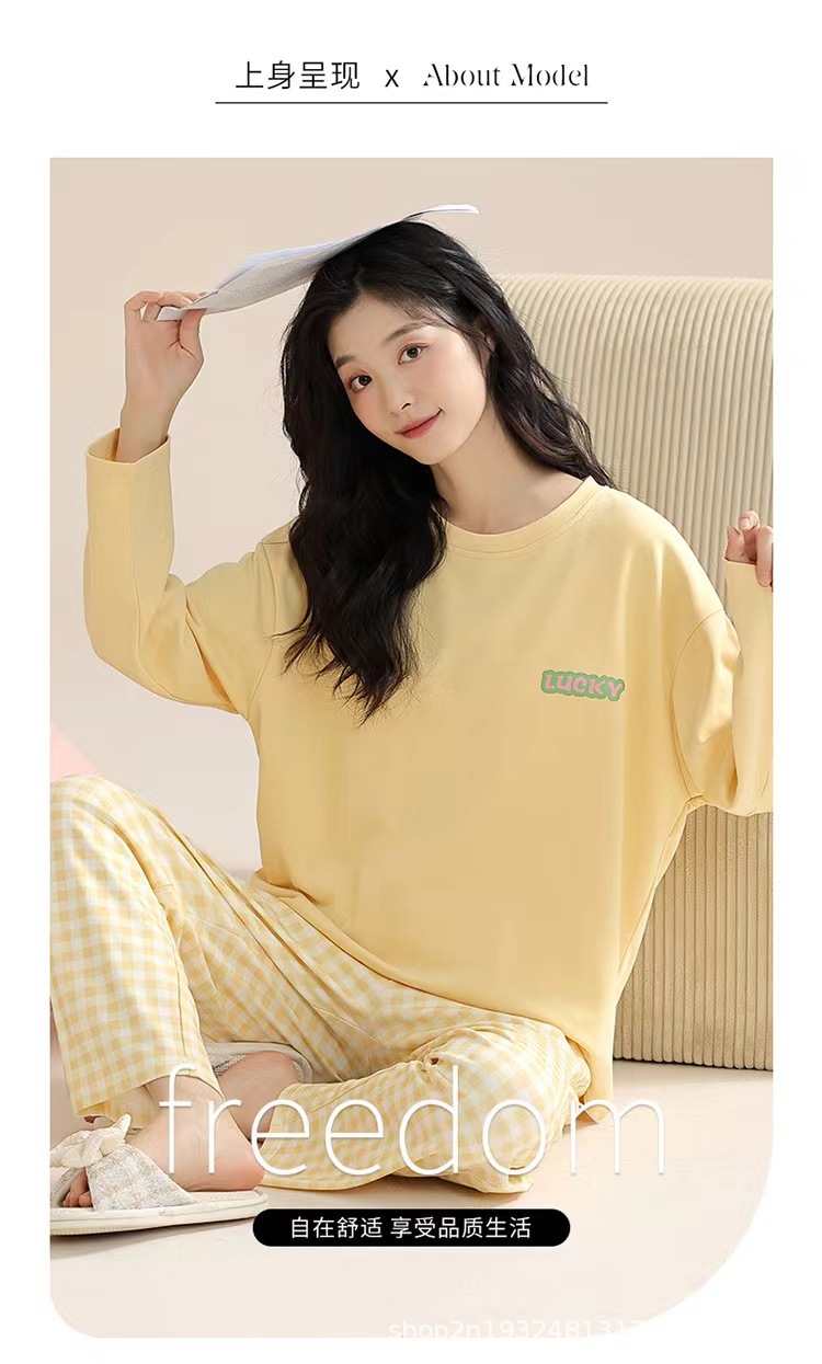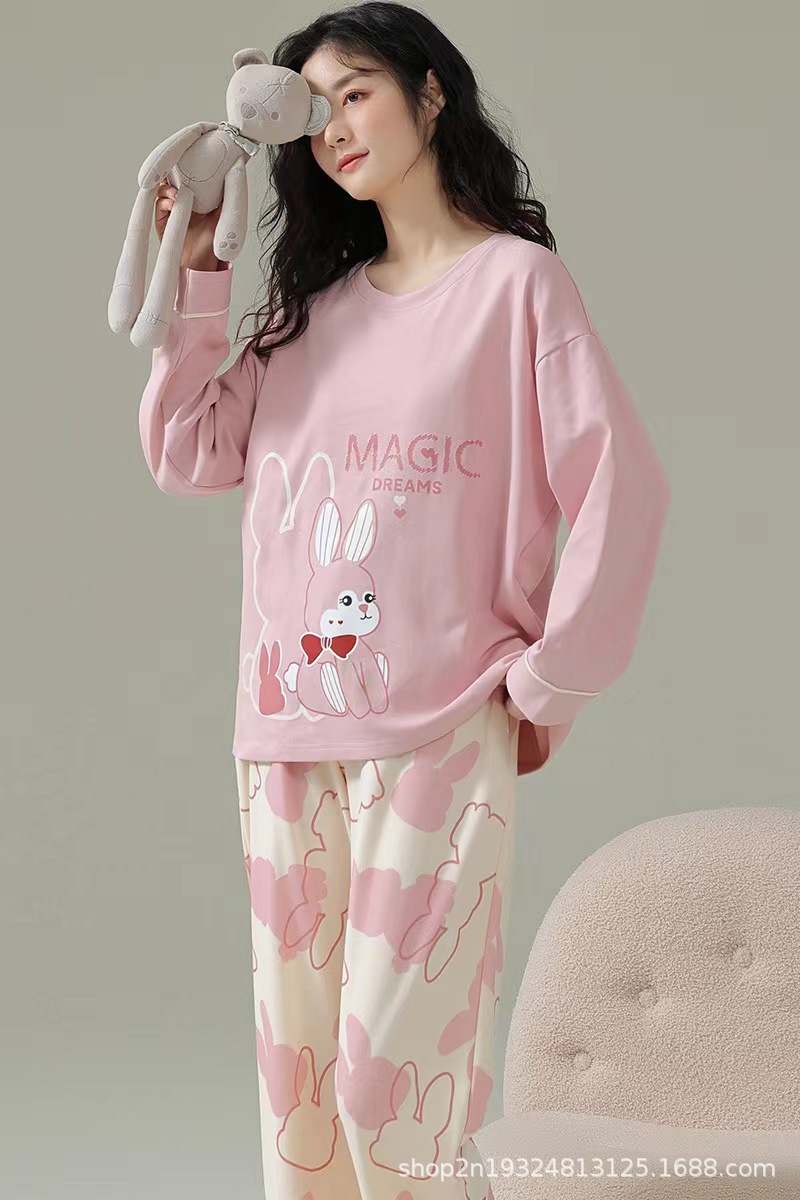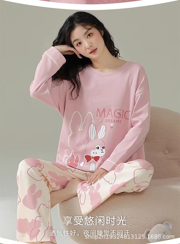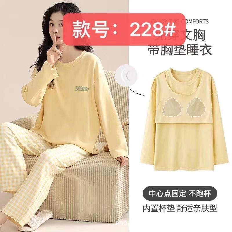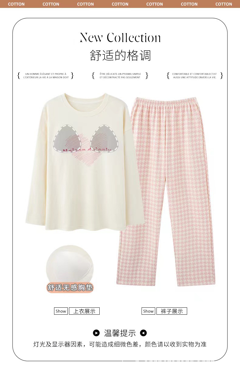 Traje de ropa para el hogar de cuello redondo fresco en primavera y verano con almohadilla para el pecho y pijama relajado para la piel de los estudiantes durante la lactancia