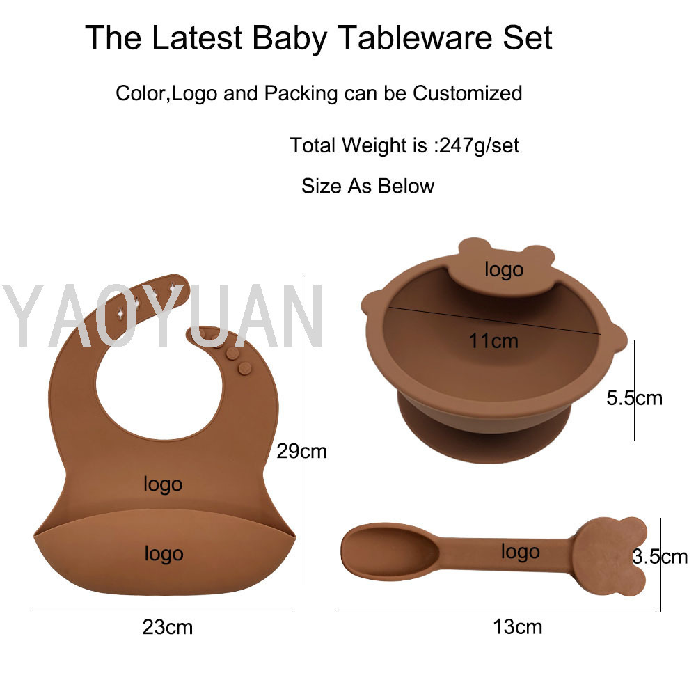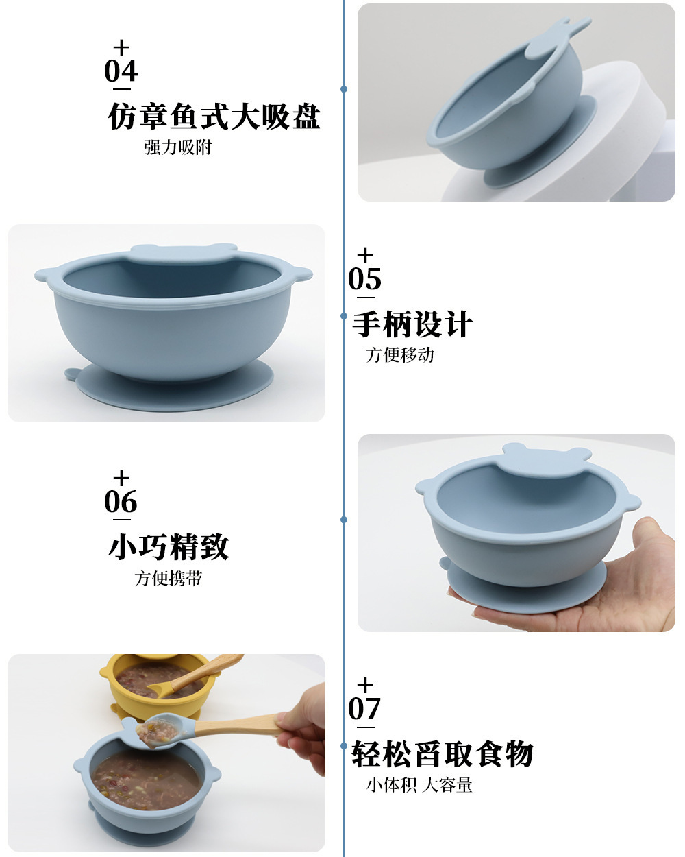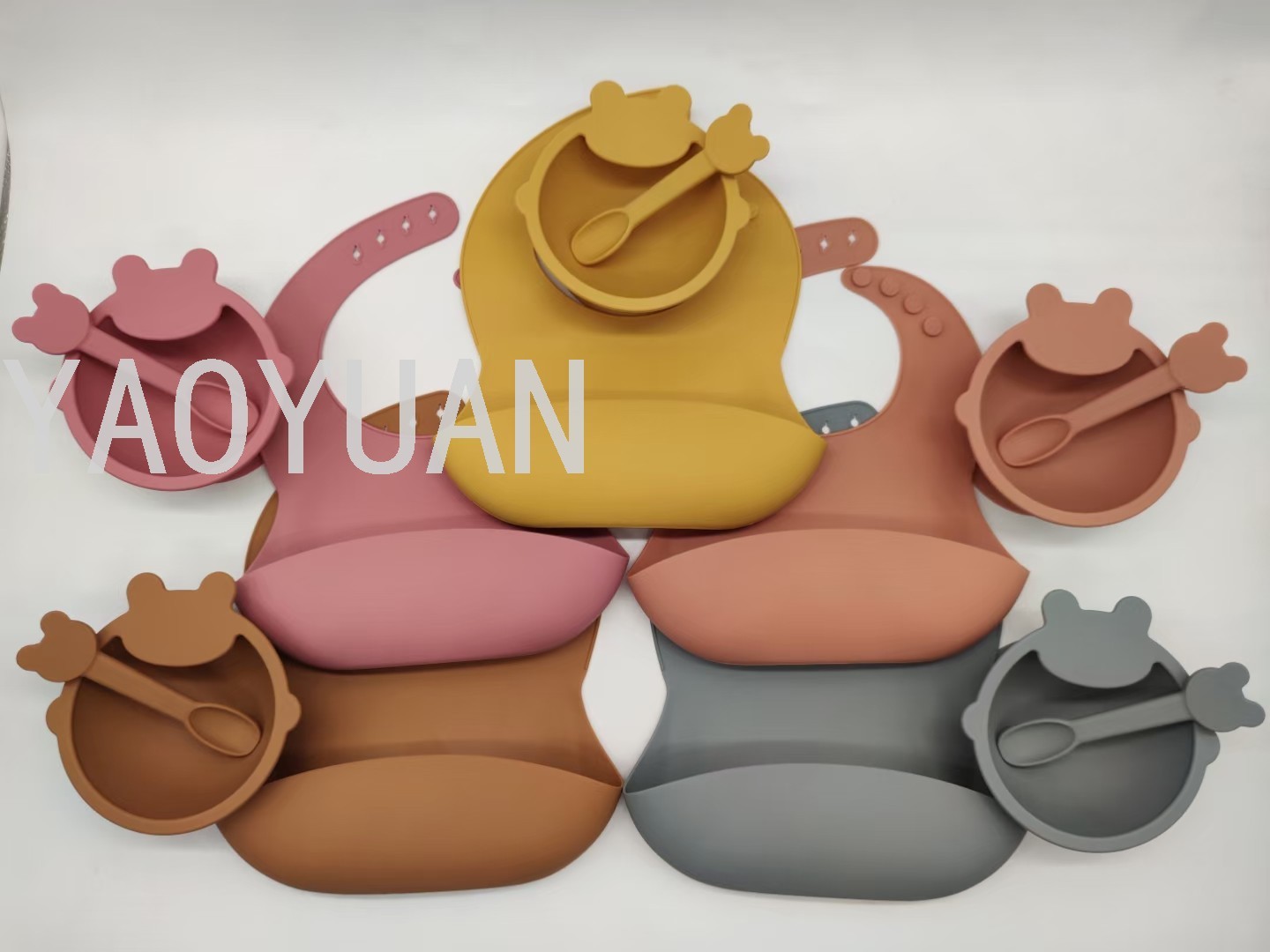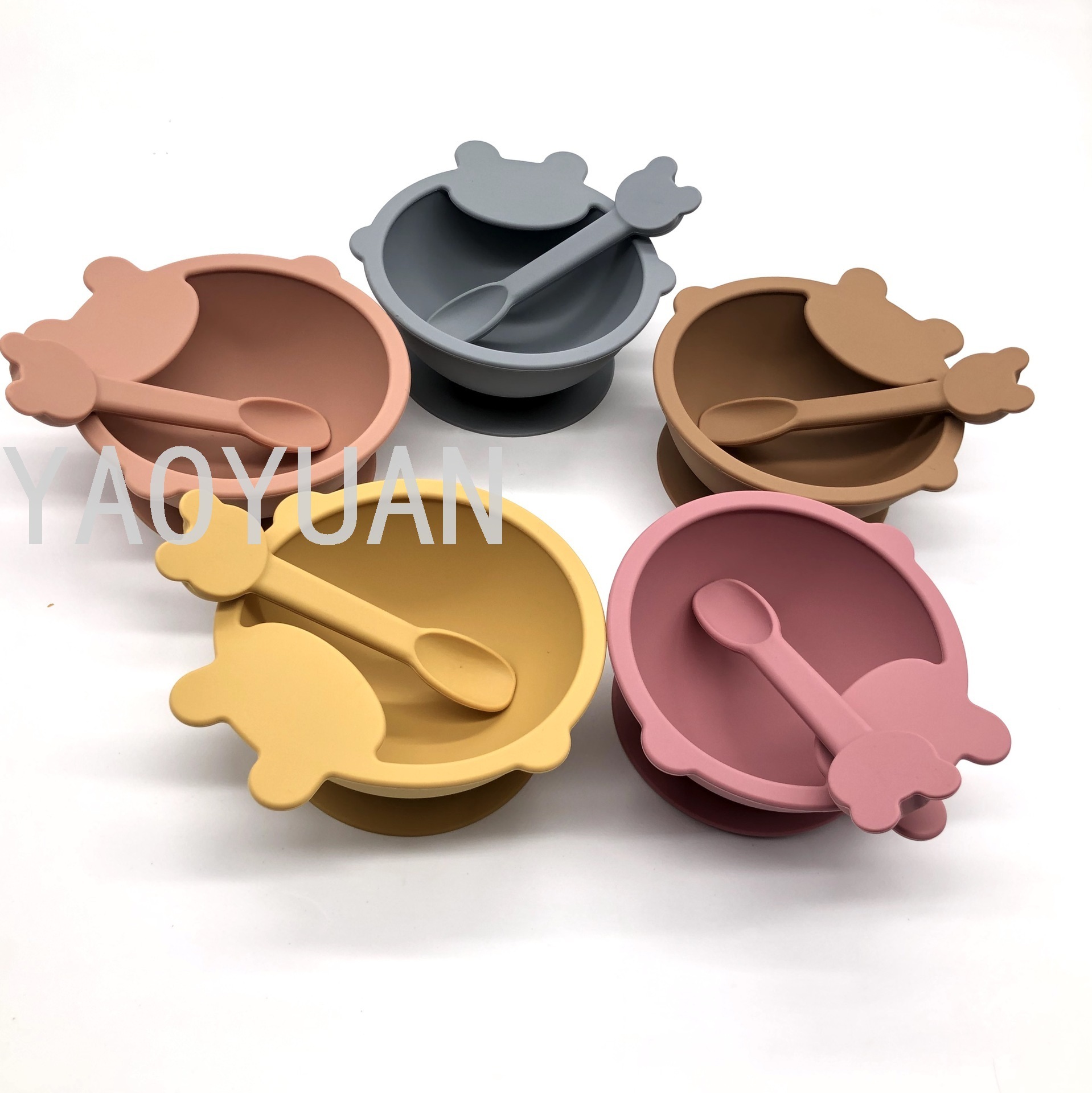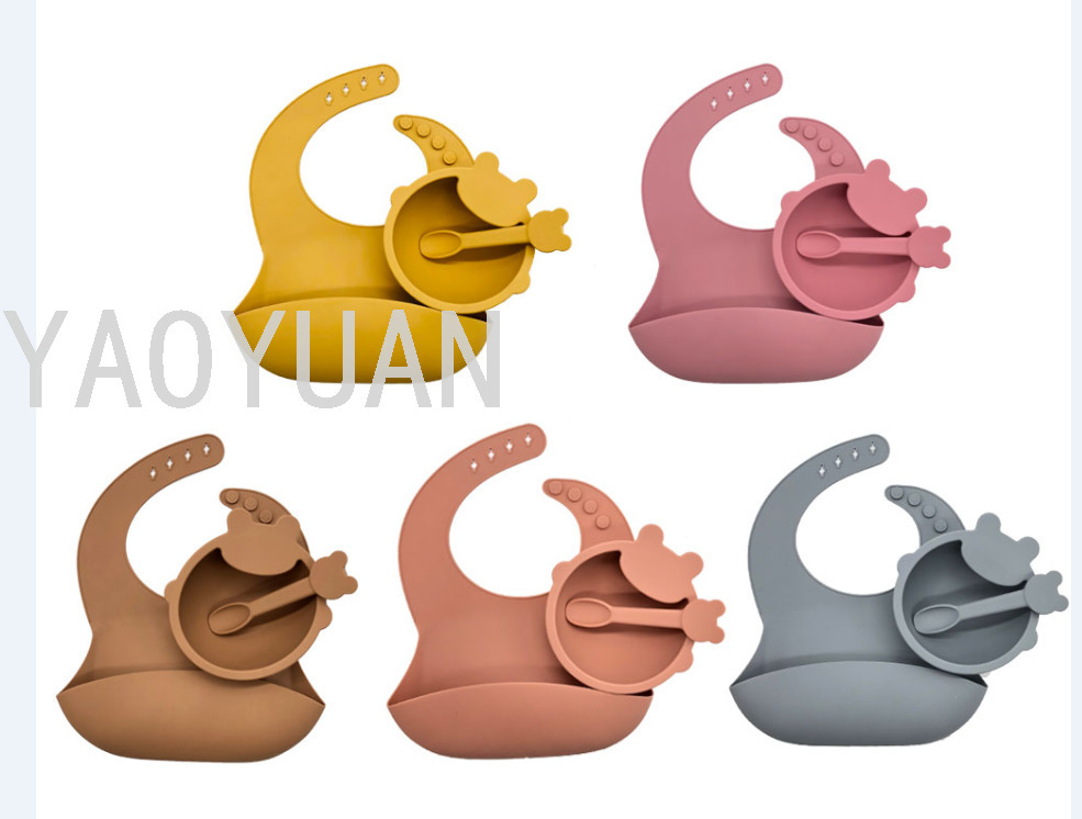 Juego de vajilla para bebés, tazón de silicona de grado alimenticio, cuchara, babero para niños, entrenamiento de comidas, alimentos complementarios