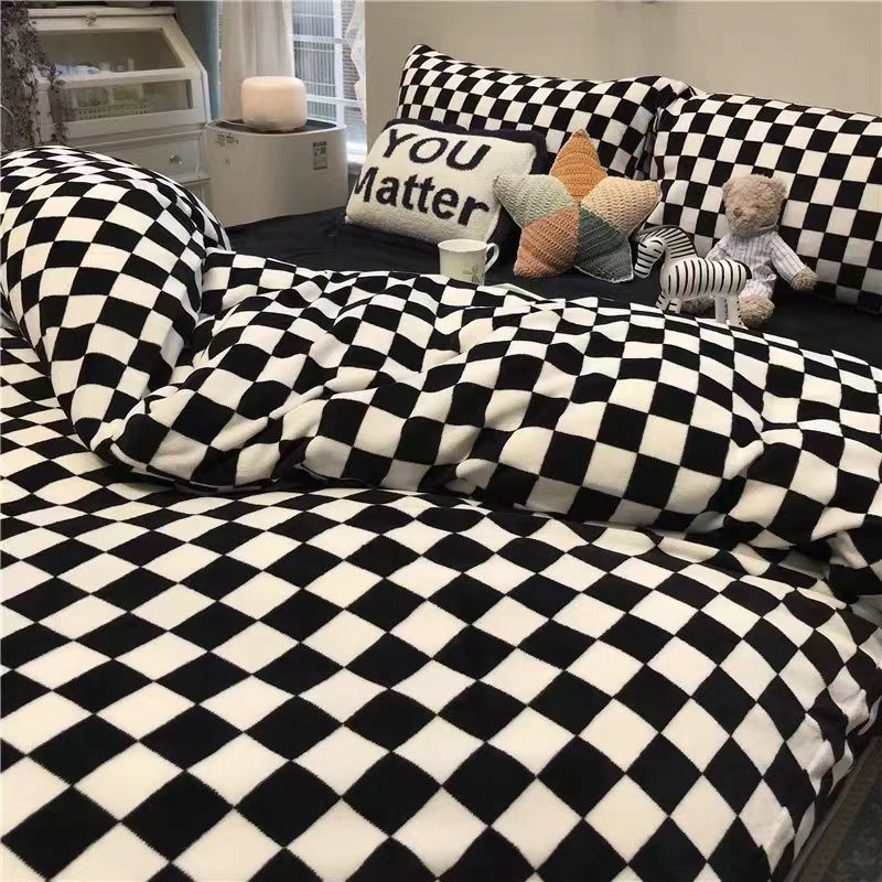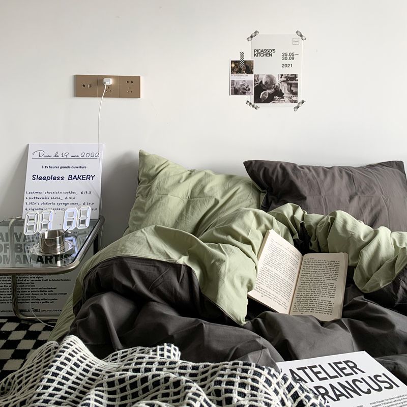 Viento nórdico, doble lucha, neblina, edredón gris, simple juego de cuatro piezas, ropa de cama, sábanas, dormitorio, cama de tres piezas