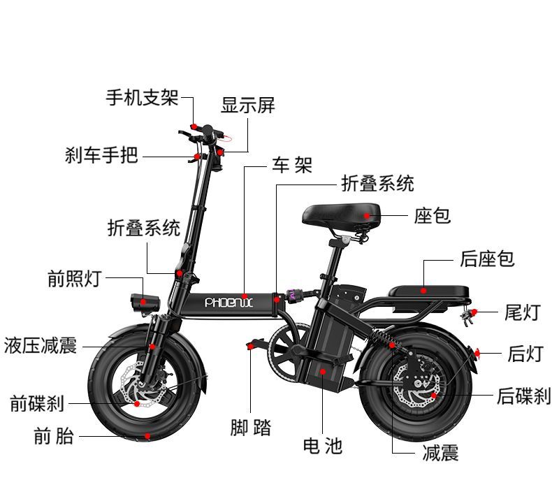 Vehículo eléctrico plegable de Bicicleta eléctrica Phoenix batería de litio pequeño vehículo de batería portátil scooter de ayuda para adultos