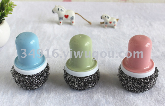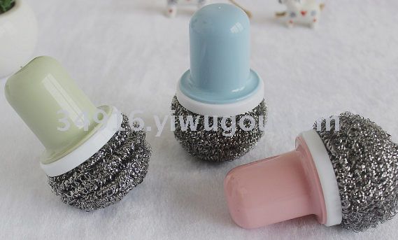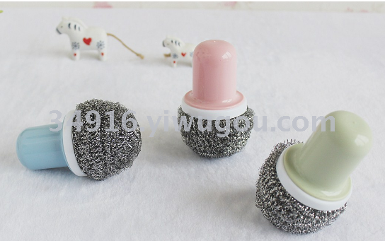 Mini cepillo de olla simple, fregadero de lavado, mango de plástico, bola de seda de acero inoxidable, cepillo de limpieza de cocina