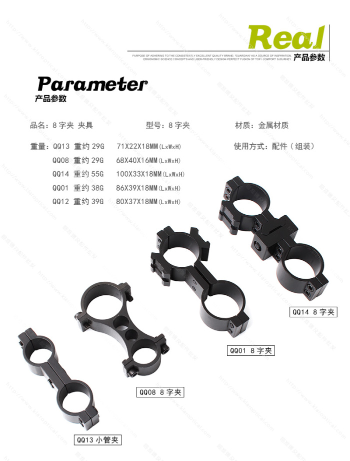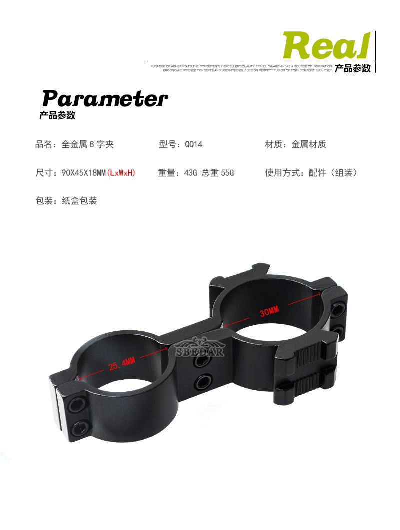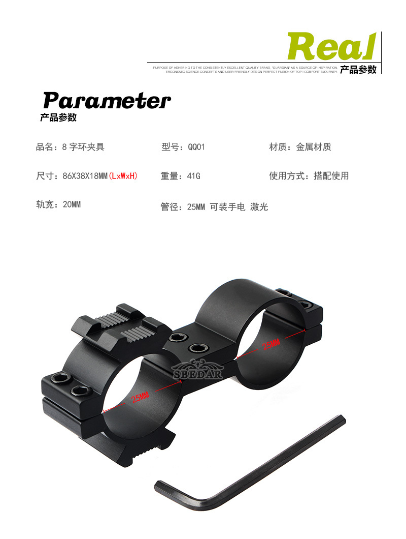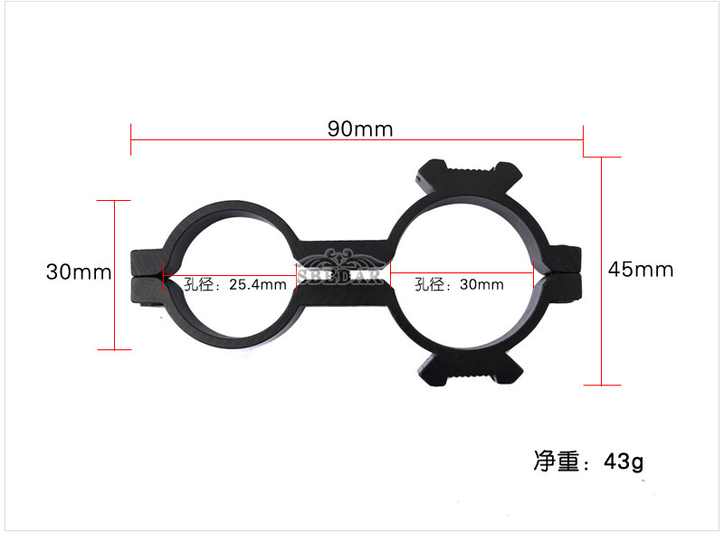 Clip de tubo de 25 - 19 mm, soporte de agujero grande y pequeño de anillo de 8 caracteres, clip de linterna láser pequeño