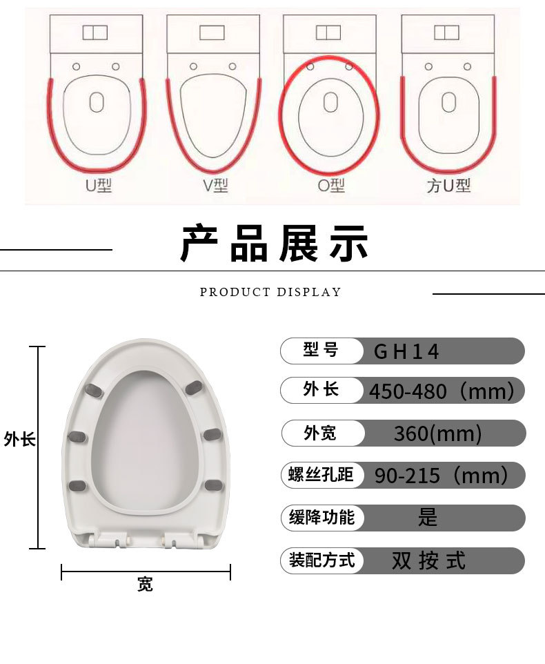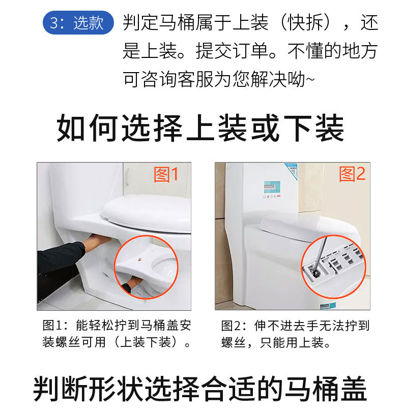 El fabricante suministra directamente una tapa de inodoro engrosada de desmontaje rápido con un clic y una tapa de inodoro en forma de V con placa de PP de distribución lenta.