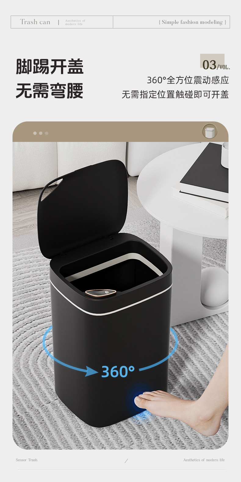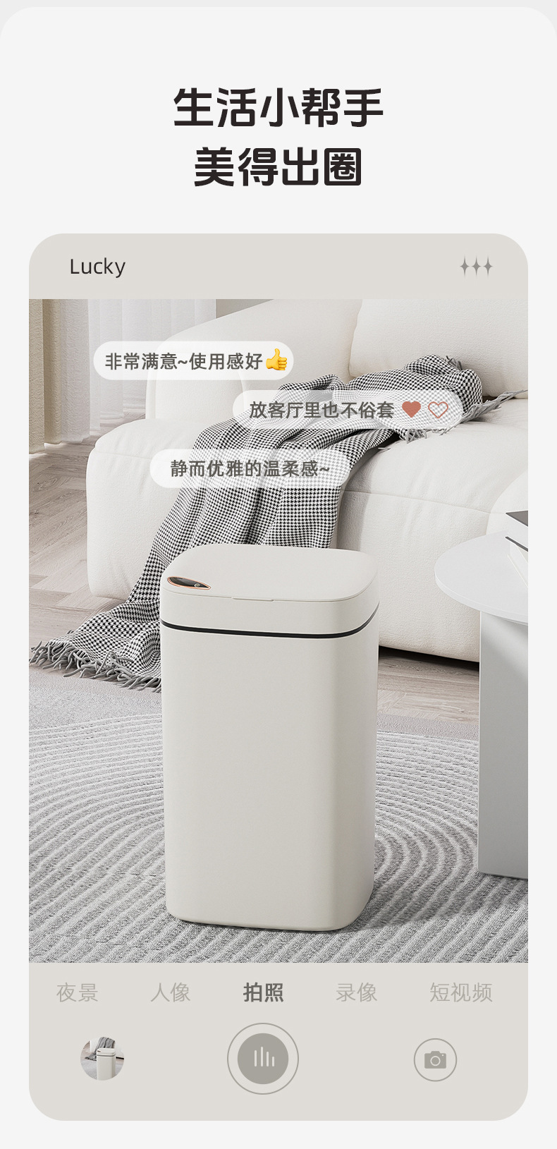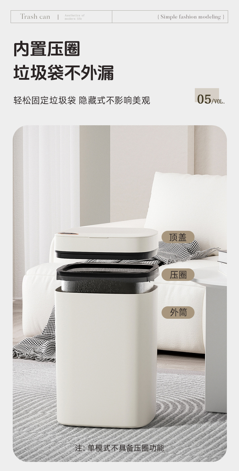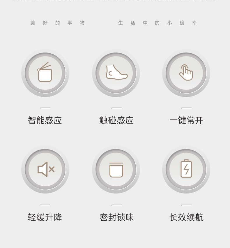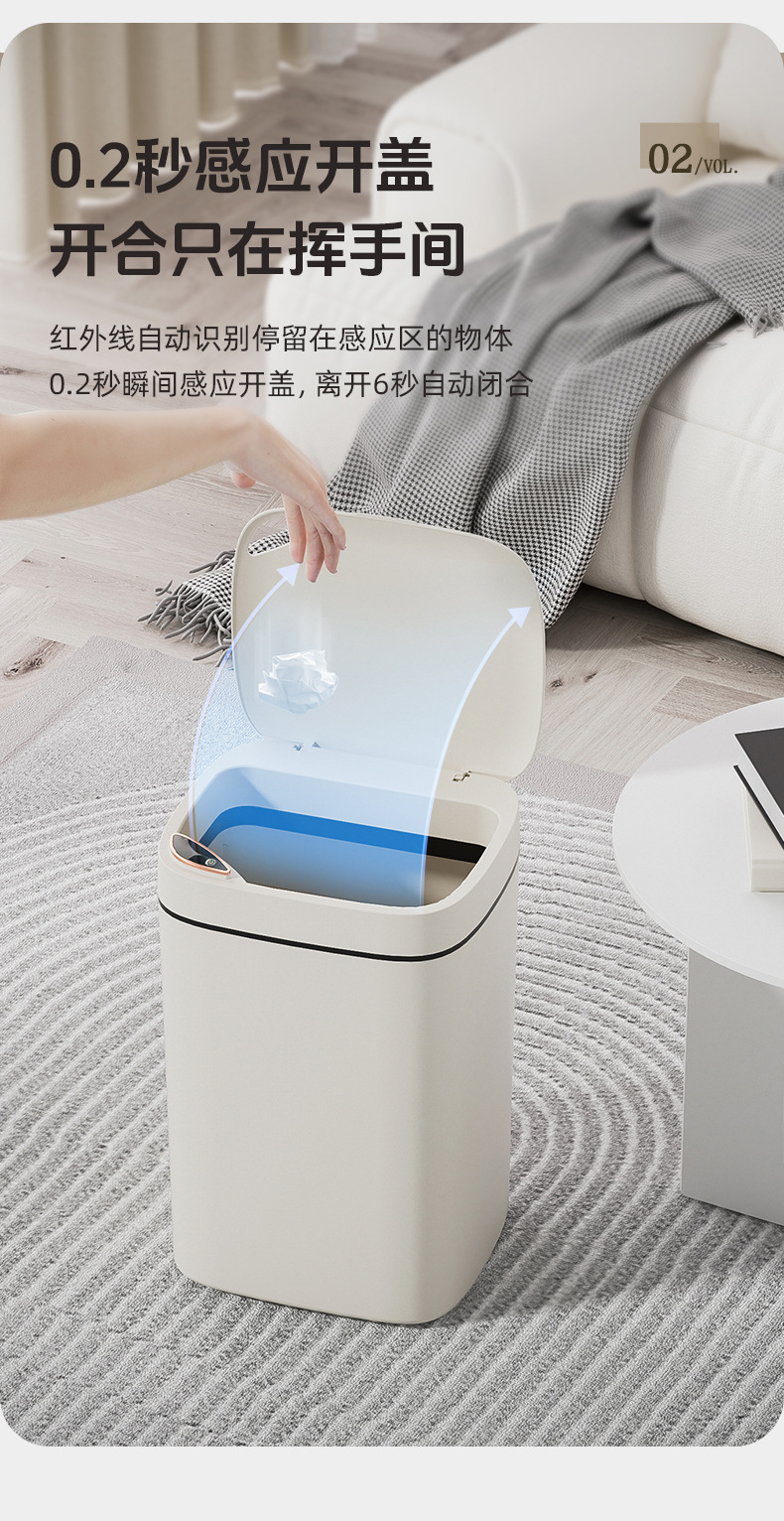 El bote de basura inteligente de la Sala de estar de lujo ligero del hogar tiene un alto valor facial, cocina, baño, baño, inducción automática del bote de basura regalo