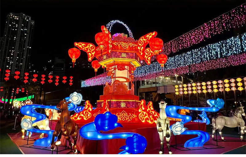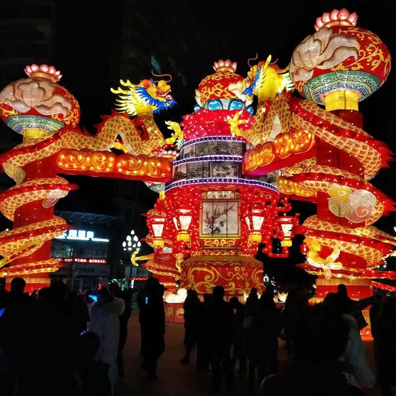 Festival de linternas del año del dragón, gran exposición de linternas de forma iluminada en calles al aire libre, Festival de los faroles, Festival de los faroles, Festival de los Faroles decorativos del Festival de primavera, Festival de las linternas del paisaje cultural y turístico