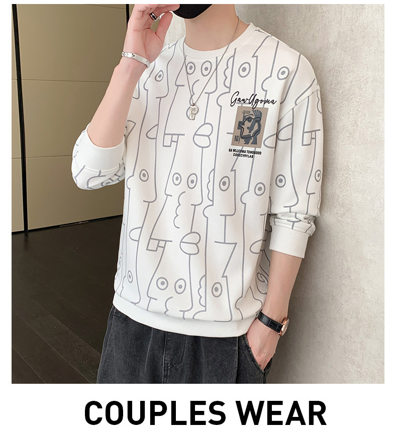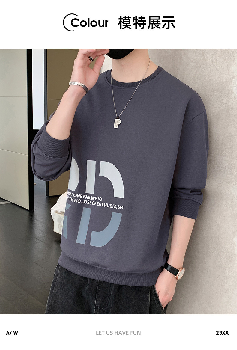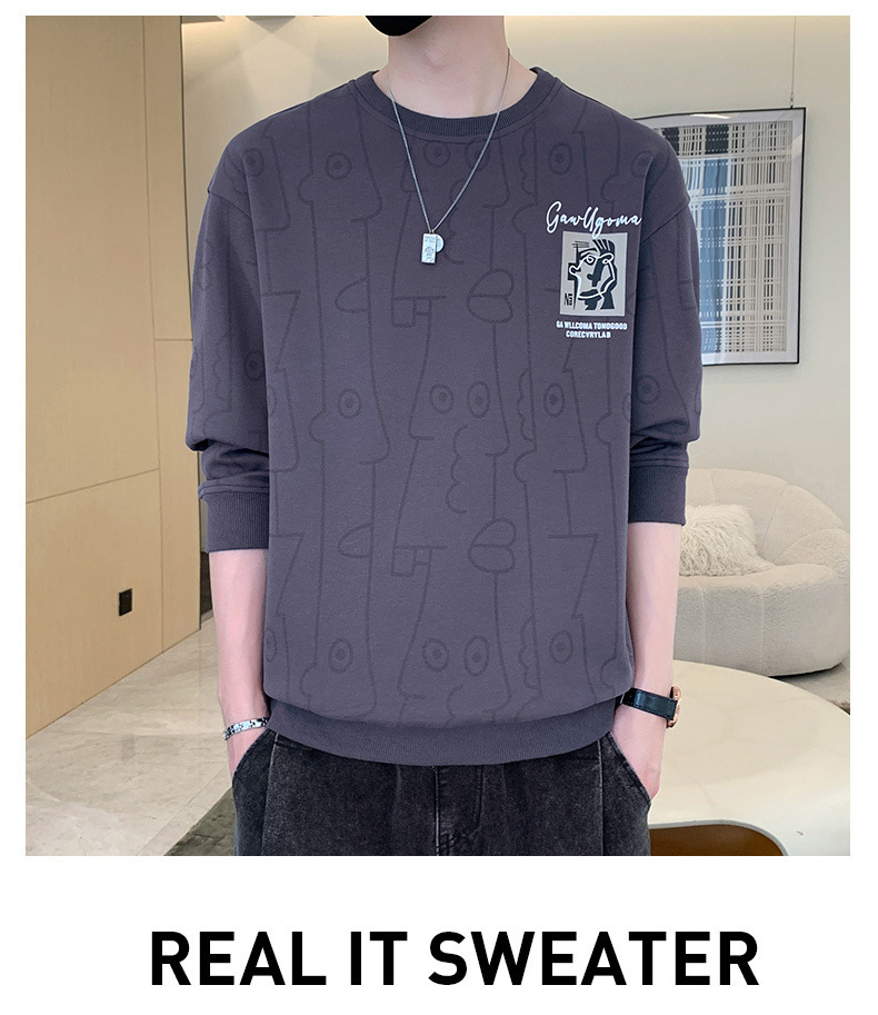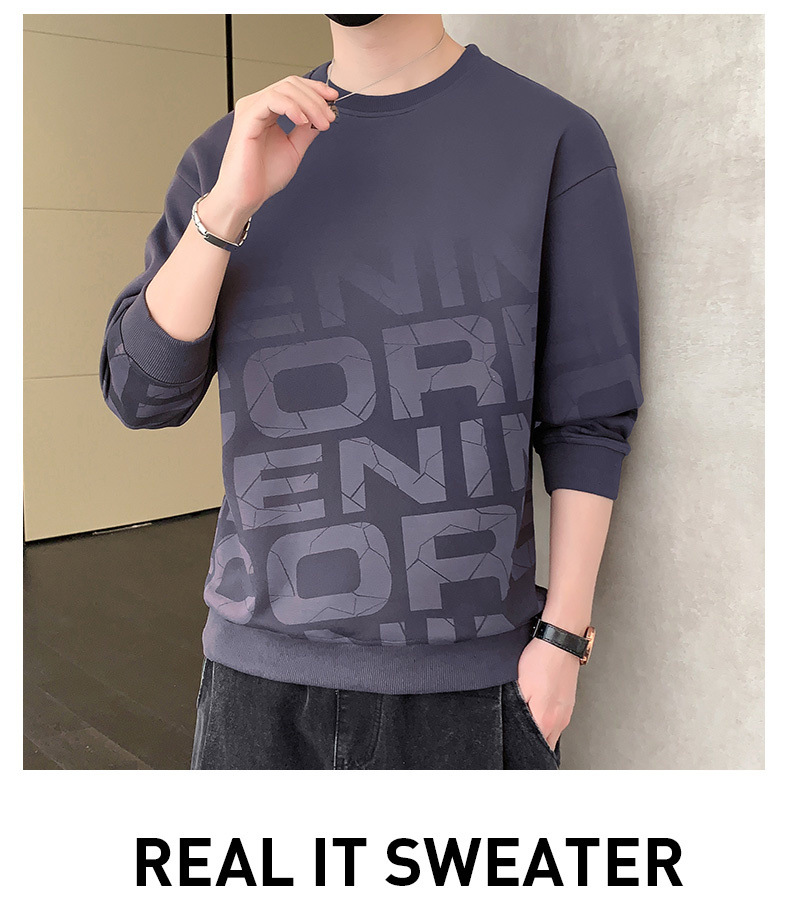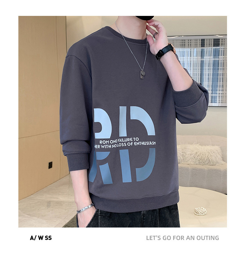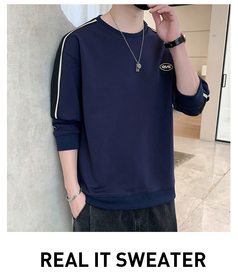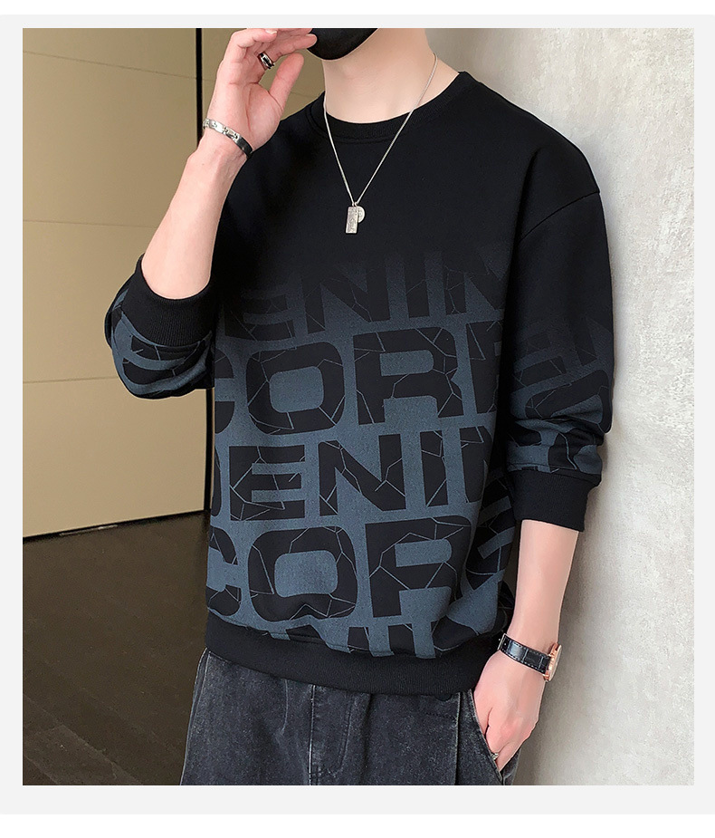 Nuevo suéter de cuello redondo para hombres temporada de primavera y otoño en los Estados Unidos con camisetas de manga larga para hombres ropa de otoño en la parte inferior de la ropa