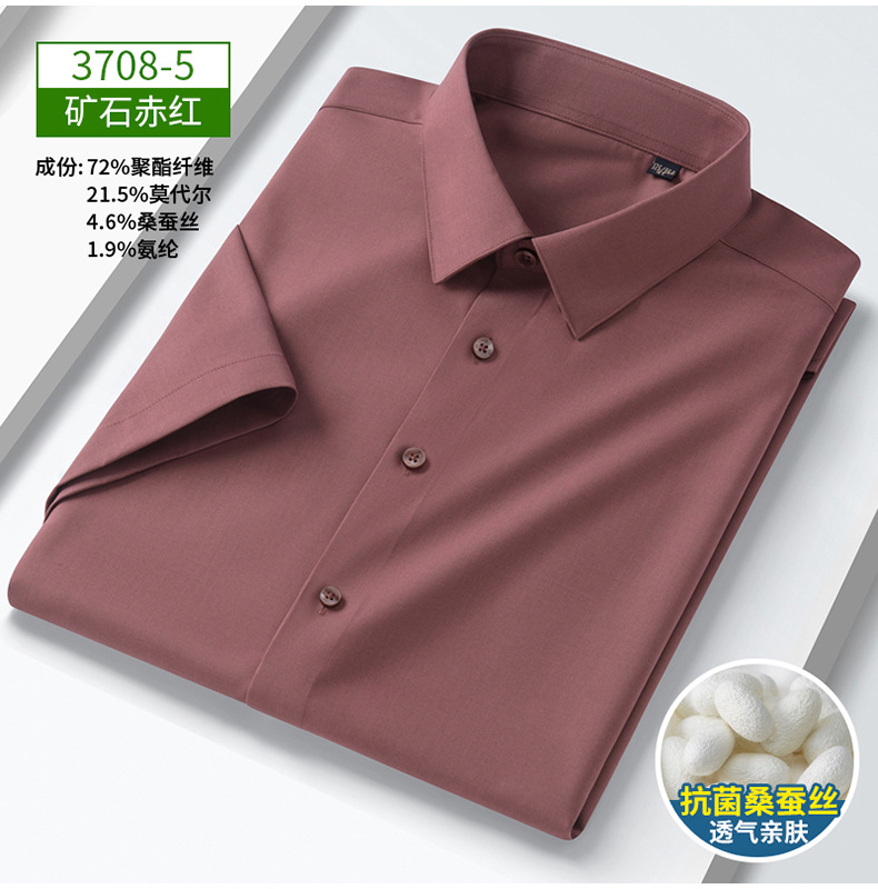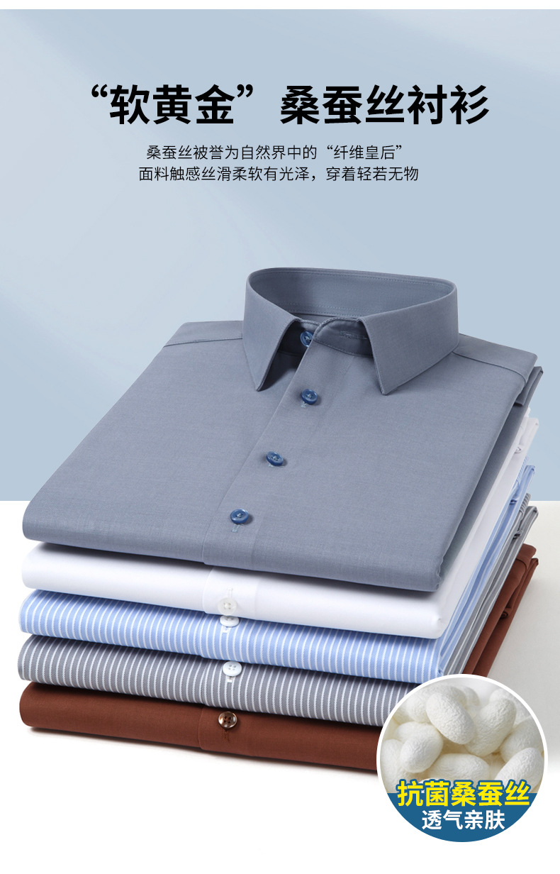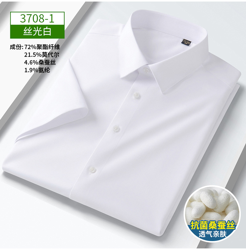 Camisa de negocios para hombres de alta calidad, adelgazamiento, sin marcas, moda elástica, seda de morera, camisa blanca para hombres, camisa de verano