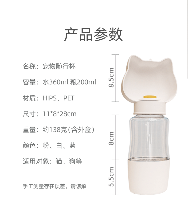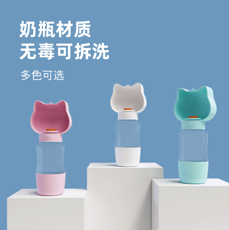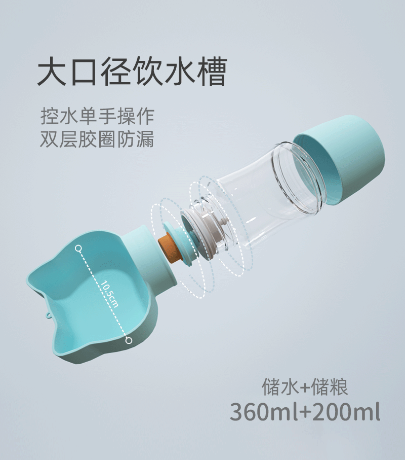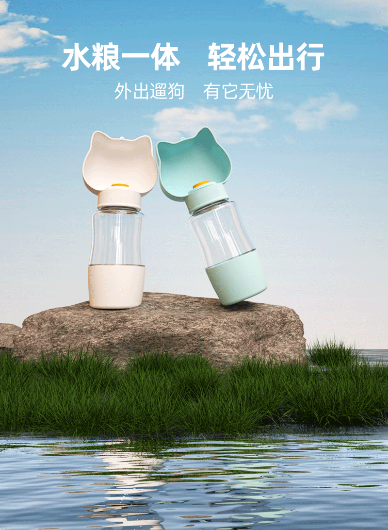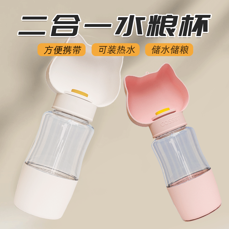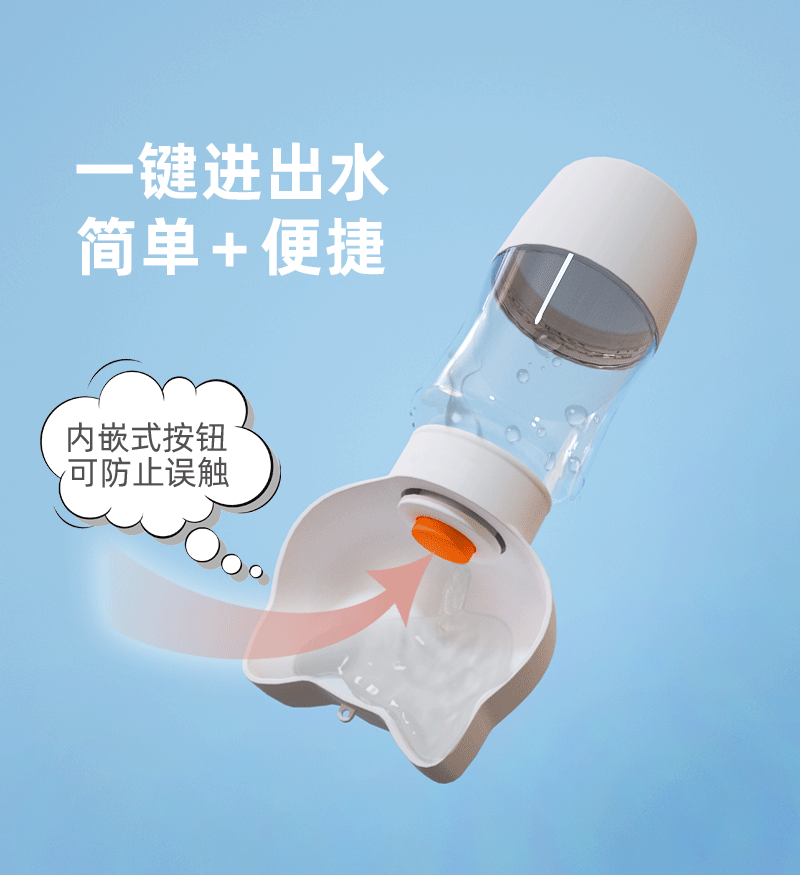 El perro sale del vaso de agua, el dispensador de agua portátil, el hervidor de agua del perro, la mascota acompaña el vaso, el cachorro bebe agua al aire libre y sale a alimentar el agua.