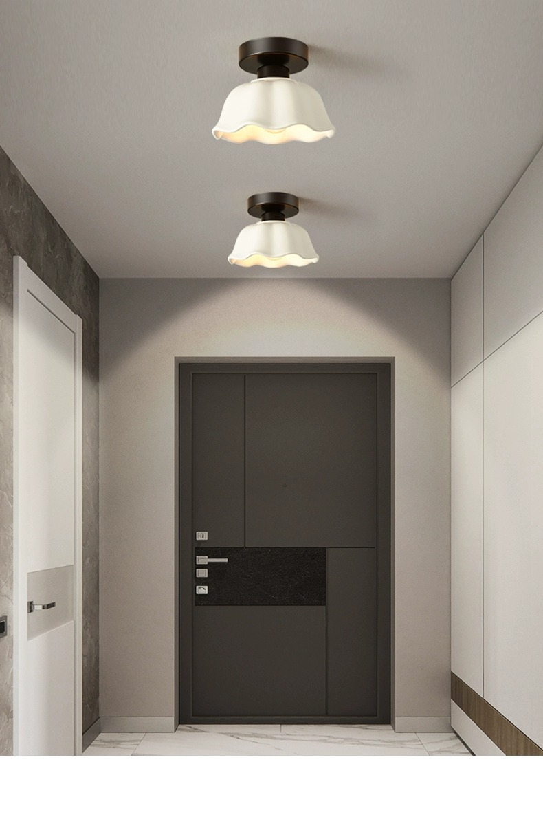 Las luces de pasillo son simples y modernas. el nuevo balcón rojo de Internet del Norte de Europa en 2024 entra en el pasillo de la escalera del porche.