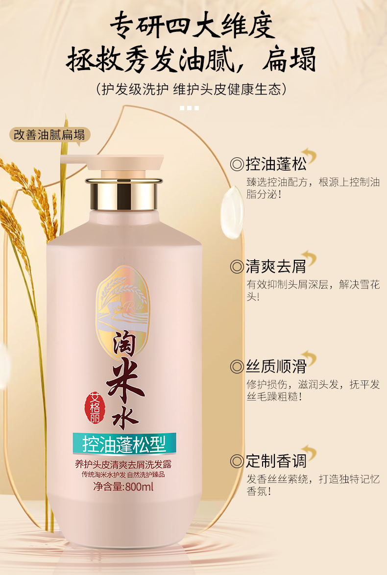 Control de aceite, champú esponjoso, lavado de arroz, cuidado del cuero cabelludo, refrescante, descamación, champú, bloqueo de agua, gel de ducha hidratante