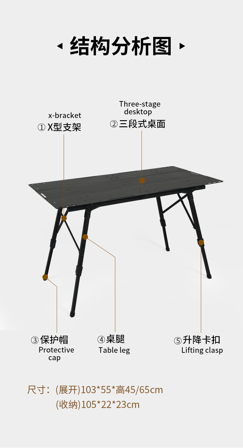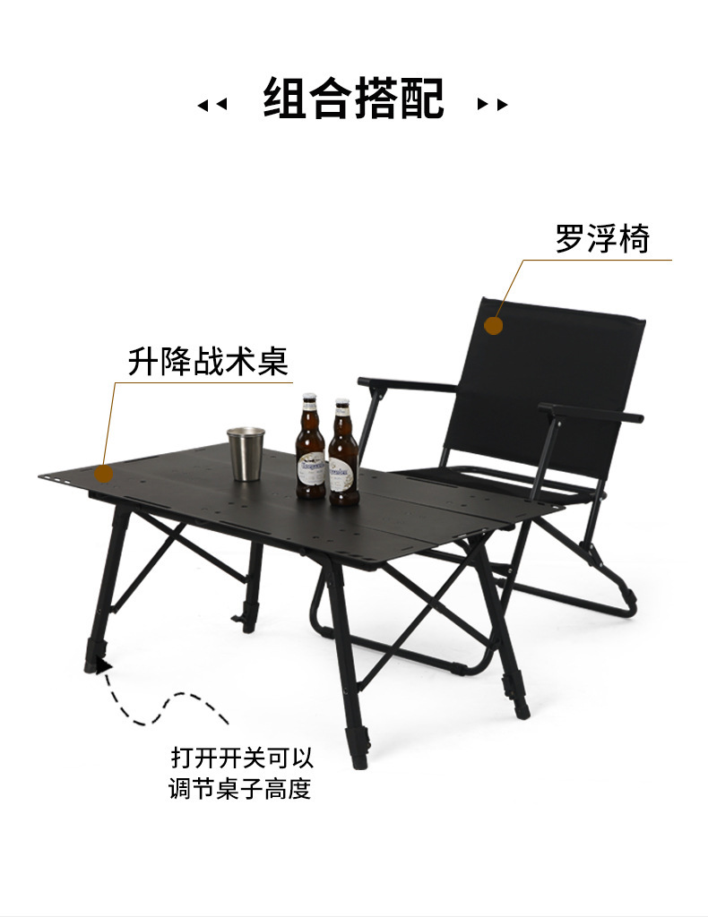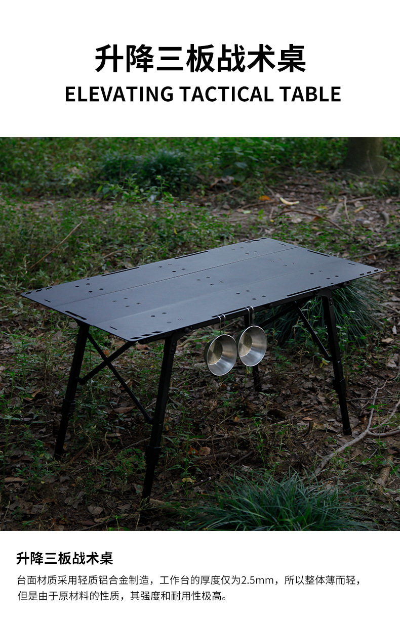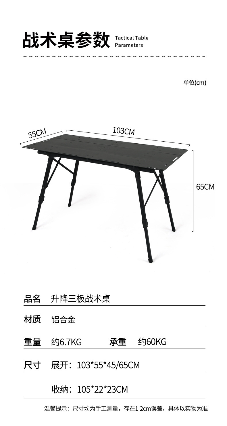 Tres piezas de aleación de aluminio al aire libre, equipo de picnic, mesas y sillas tácticas grandes, mesas y sillas plegables de tres secciones, mesas y mesas plegables