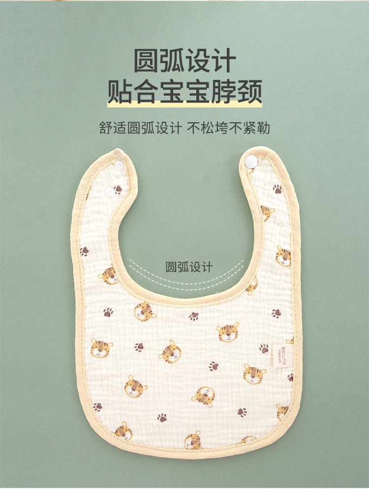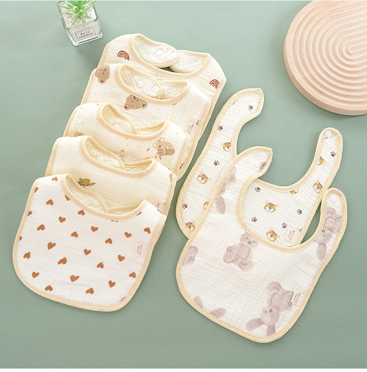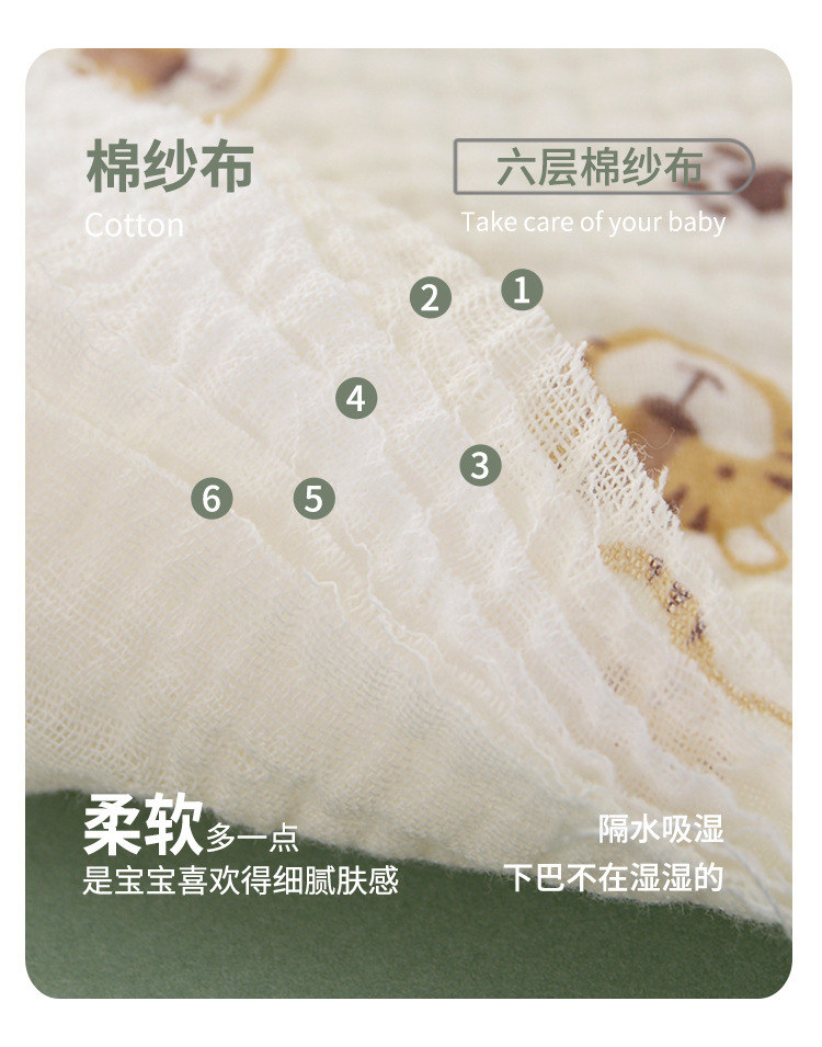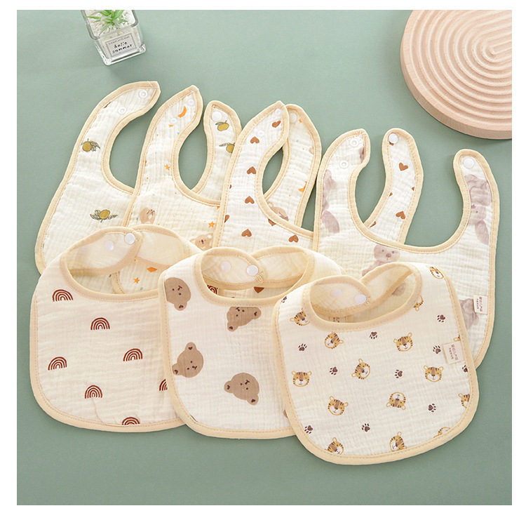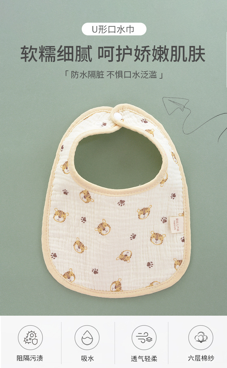 Seis capas de gasa de algodón, dibujos animados de babero de bebé de clase a para evitar la lactancia, babero de bebé para comer, fabricantes de toallas de saliva en forma de u al por mayor