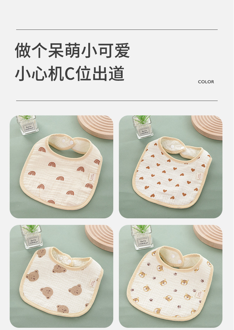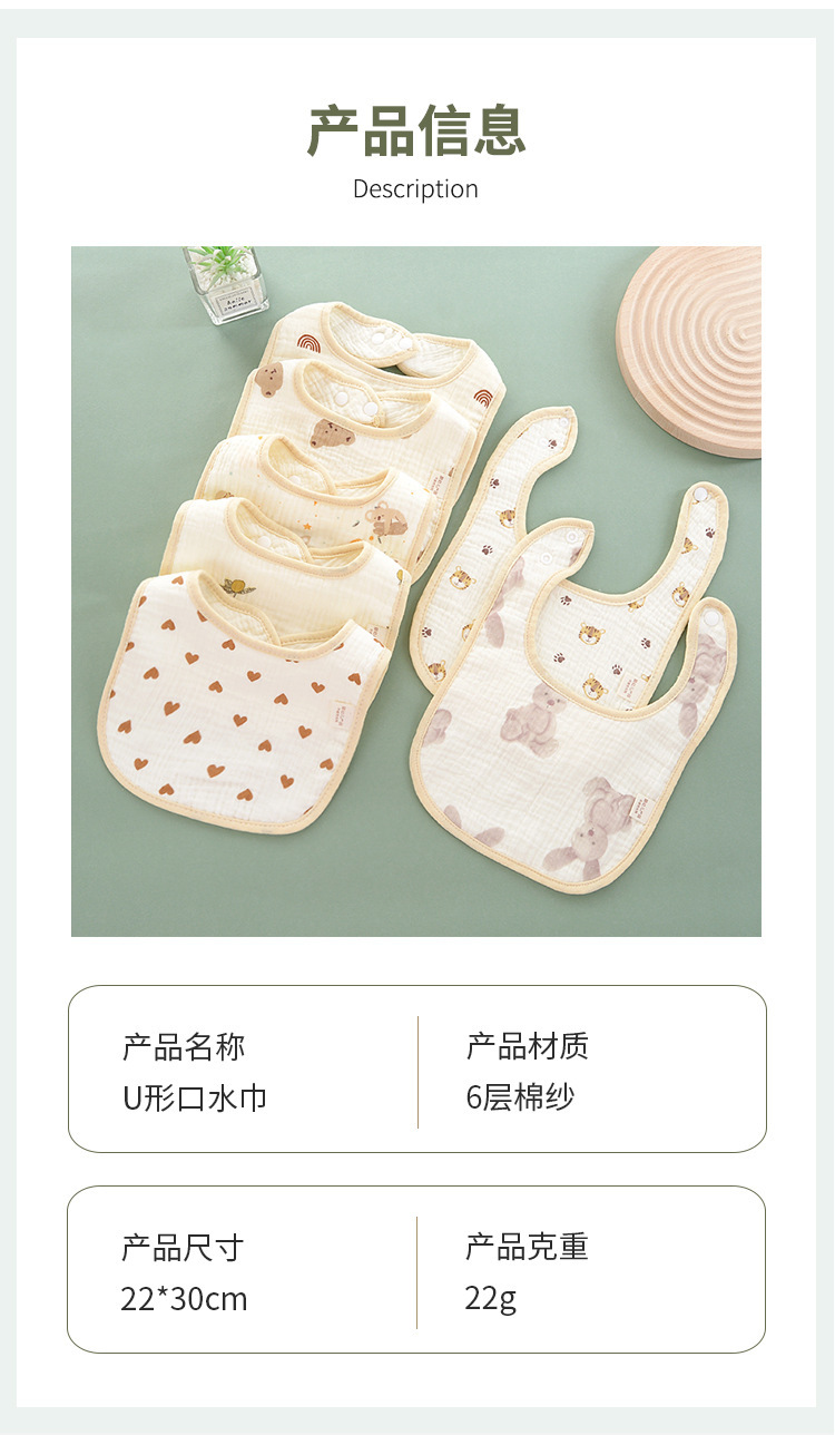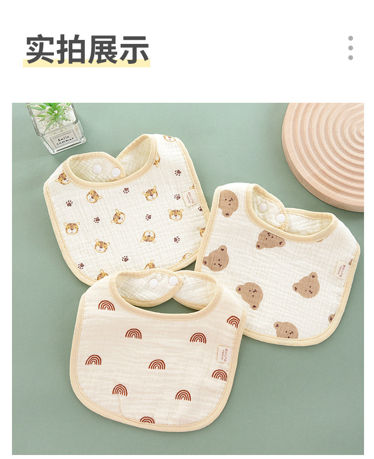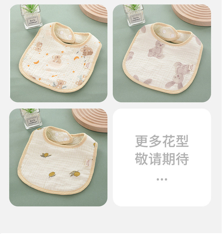 Seis capas de gasa de algodón, dibujos animados de babero de bebé de clase a para evitar la lactancia, babero de bebé para comer, fabricantes de toallas de saliva en forma de u al por mayor