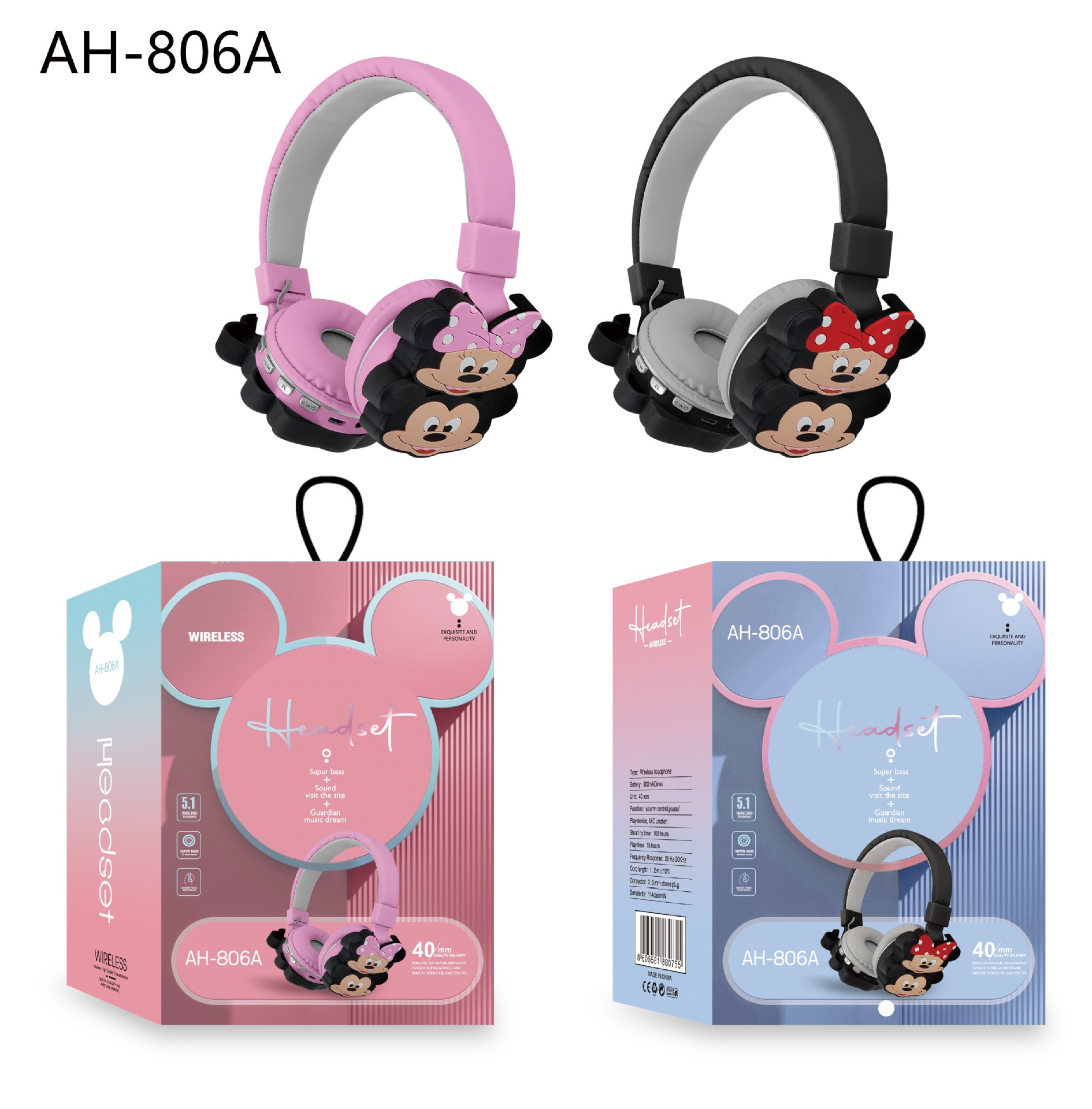 806 auriculares inalámbricos bluetooth con capucha dibujos animados varios fabricantes de bajo estéreo plegable de comercio exterior venden directamente