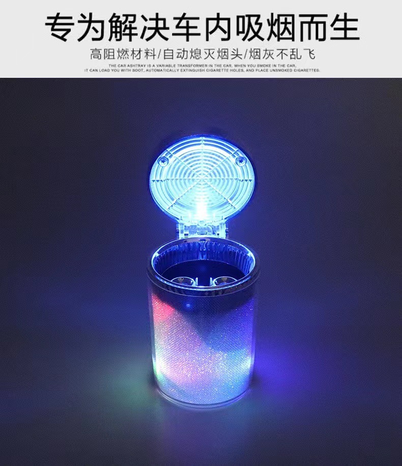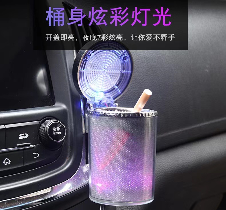 Cenicero para automóviles, cenicero deslumbrante para automóviles con luces led, salida de aire de gran capacidad colorida, artículos interiores para automóviles coloridos