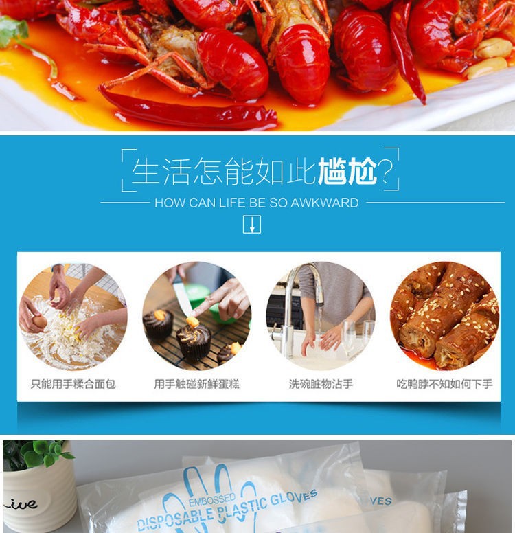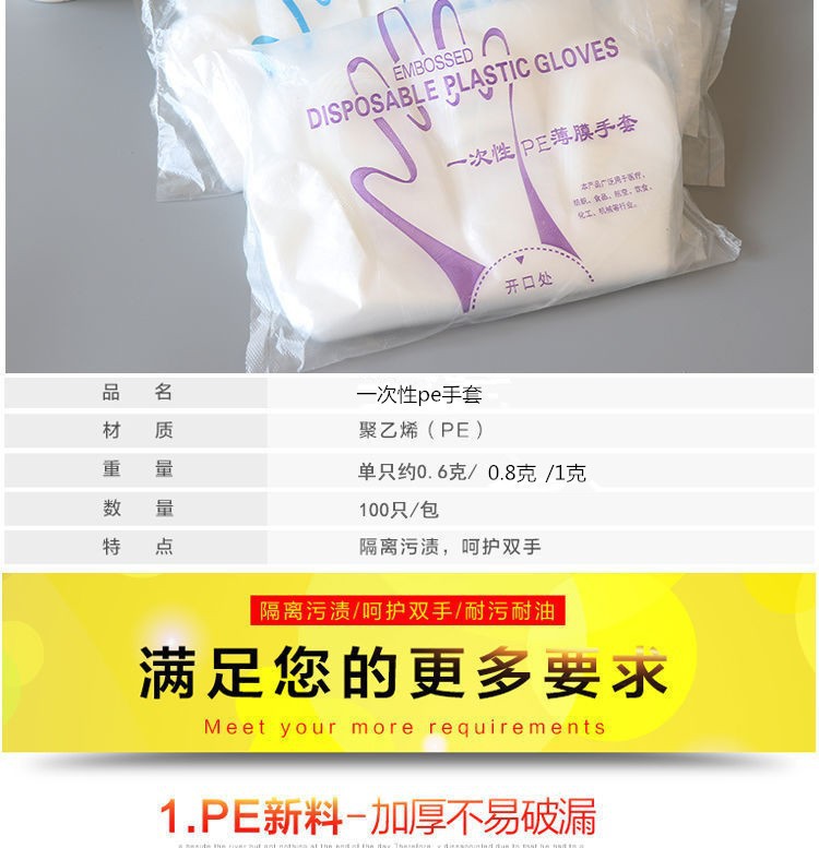 Guantes desechables, restauración transparente para llevar, peluquería comercial, barbacoa, panadería, cocina doméstica, película plástica PE