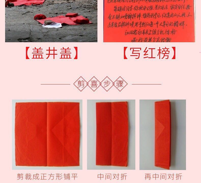 Artículos de bodas, un lado, papel rojo, papel rojo, Corte de papel rojo, papel de bodas, tapa de huevo teñida de rojo, tapa de pozo, papel rojo al por mayor